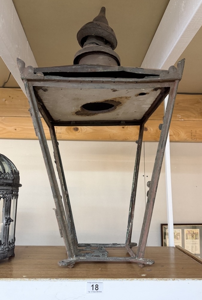 A Victorian copper 4 sided street lamp