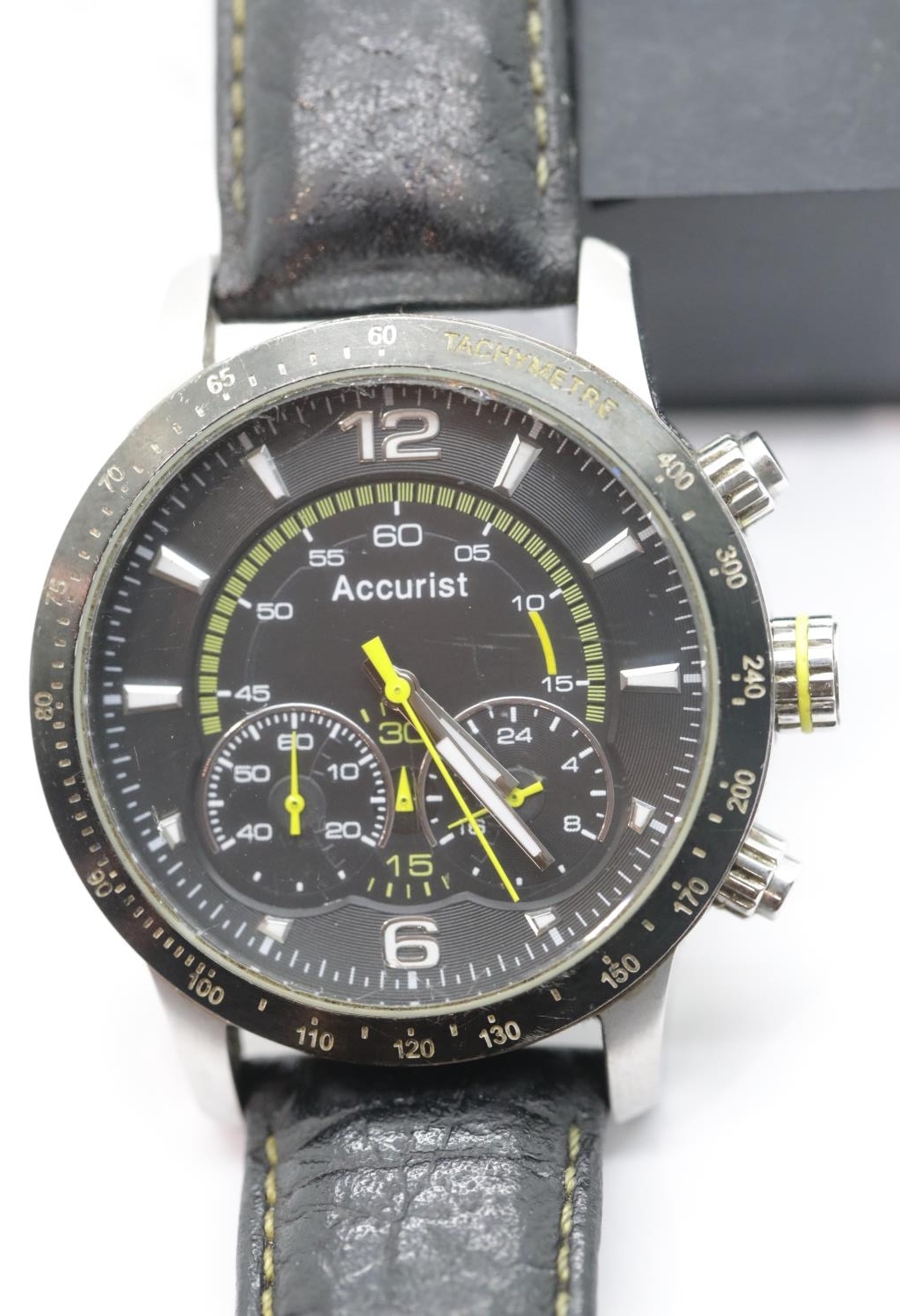 Gents Accurist Tachymeter MS848B 100m water resistant wristwatch. P&P Group 1 (£14+VAT for the first lot and £1+VAT for subsequent lots)