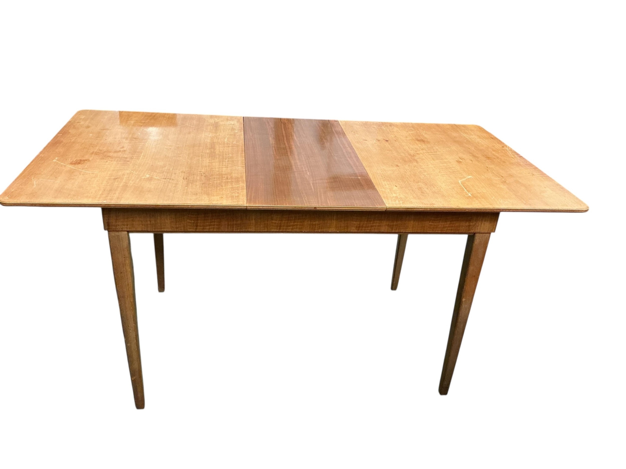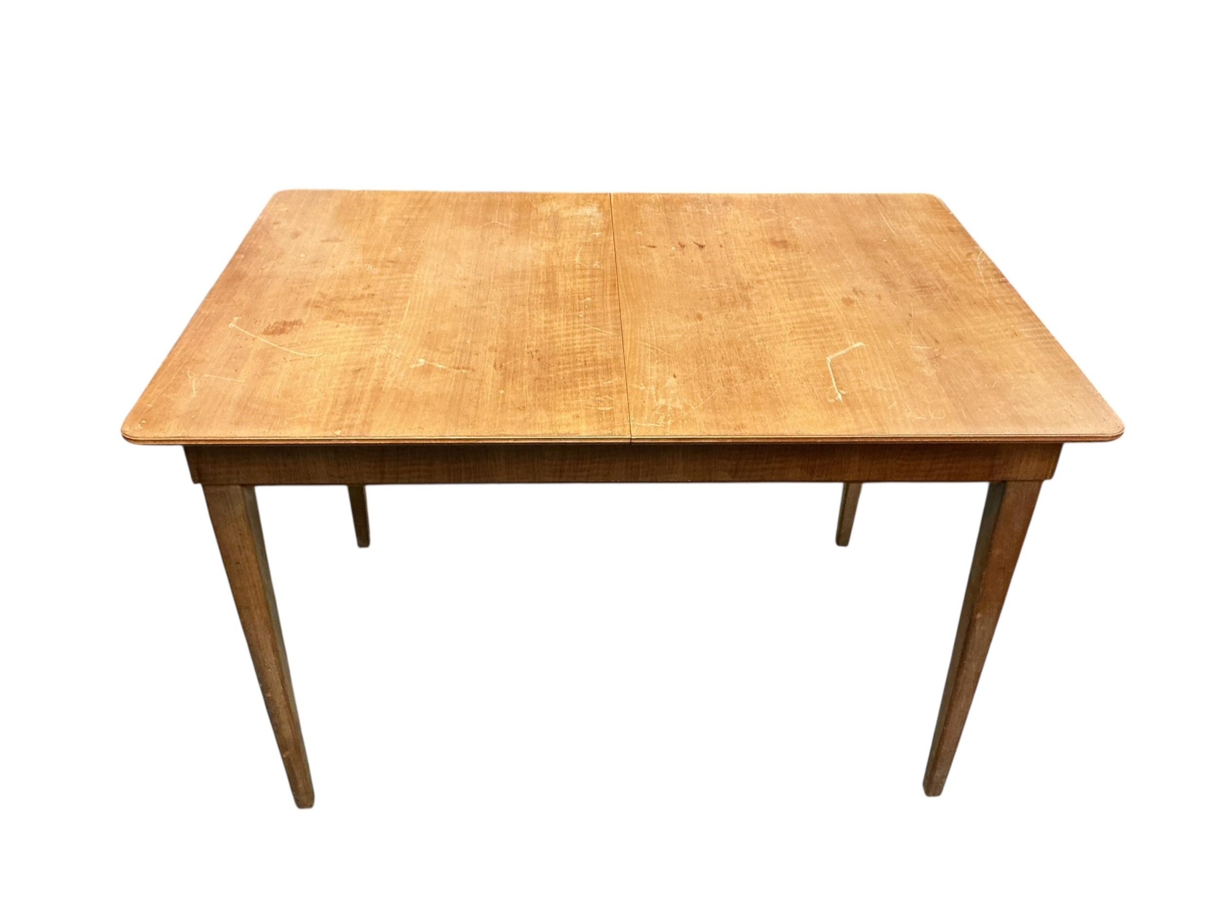 A Gordon Russell extending dining table, 135cm extended, width 78cm height 76cm and four chairs