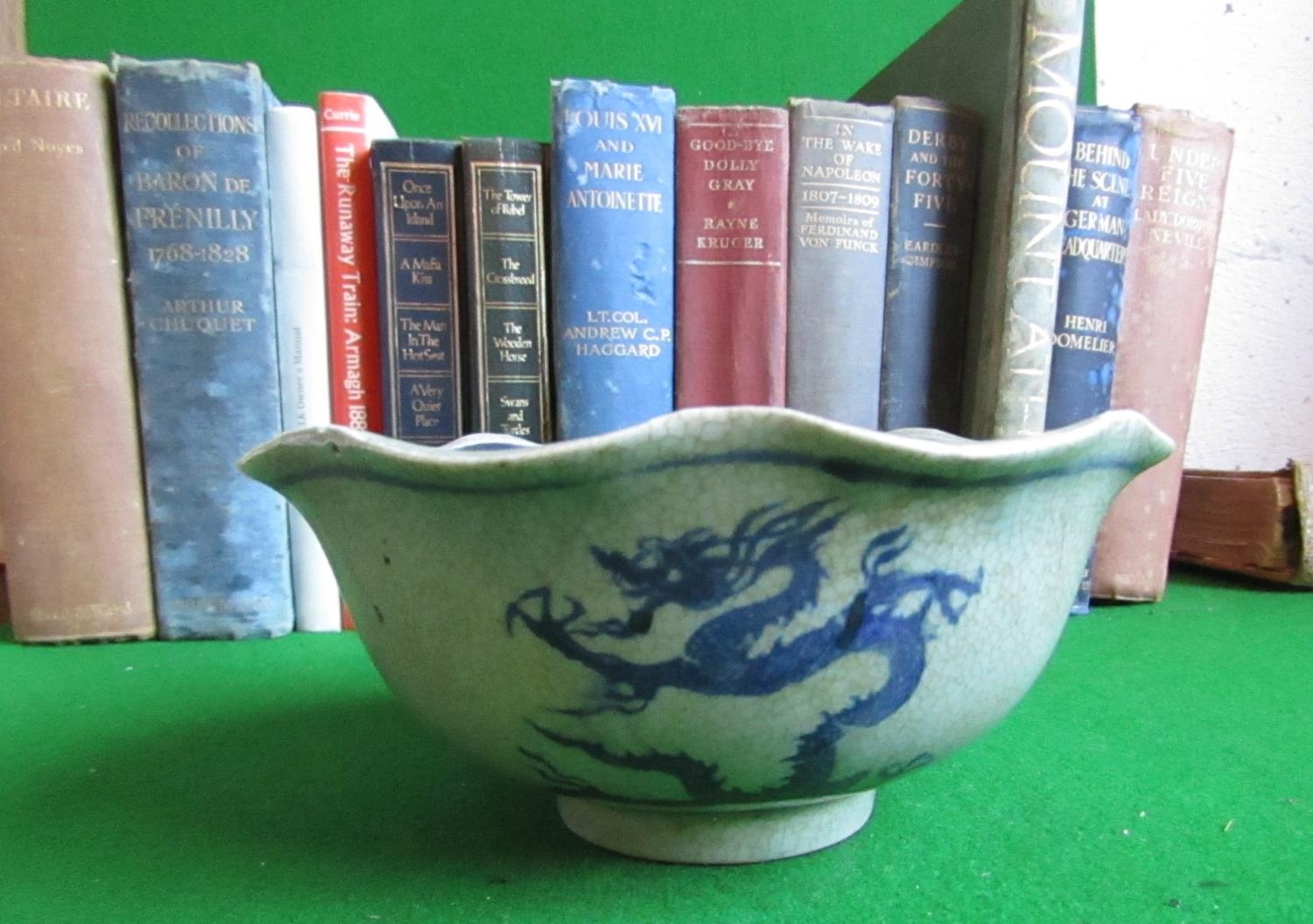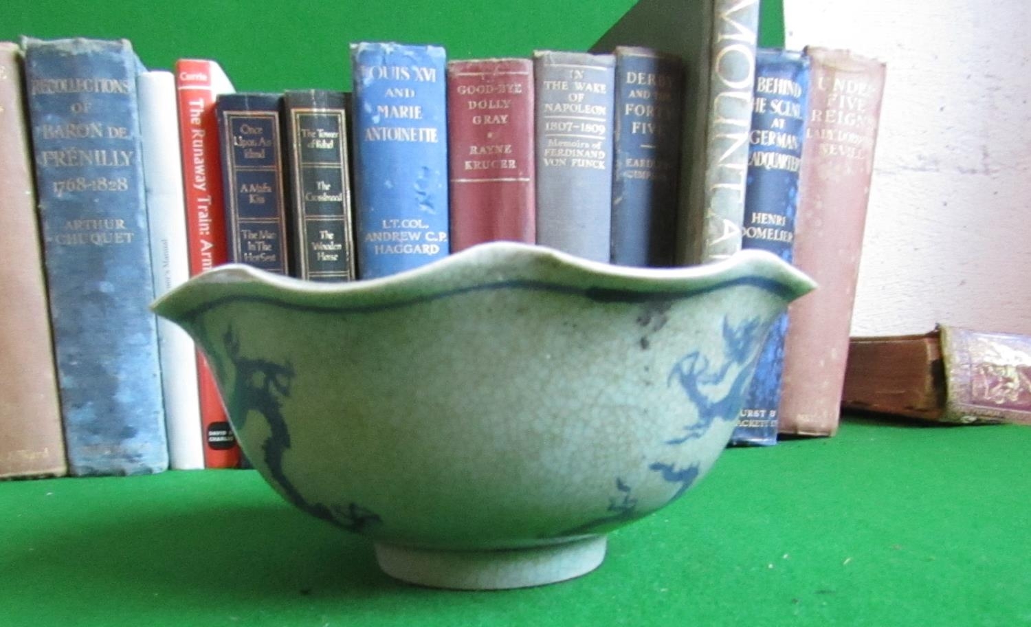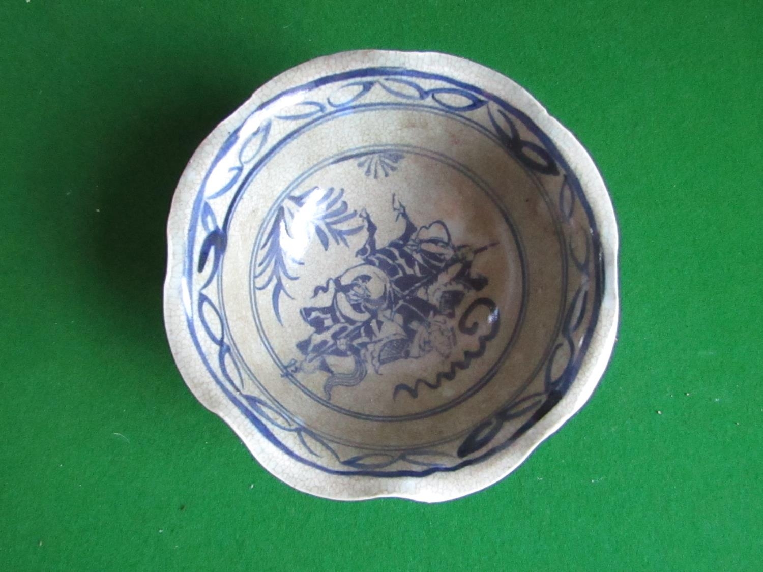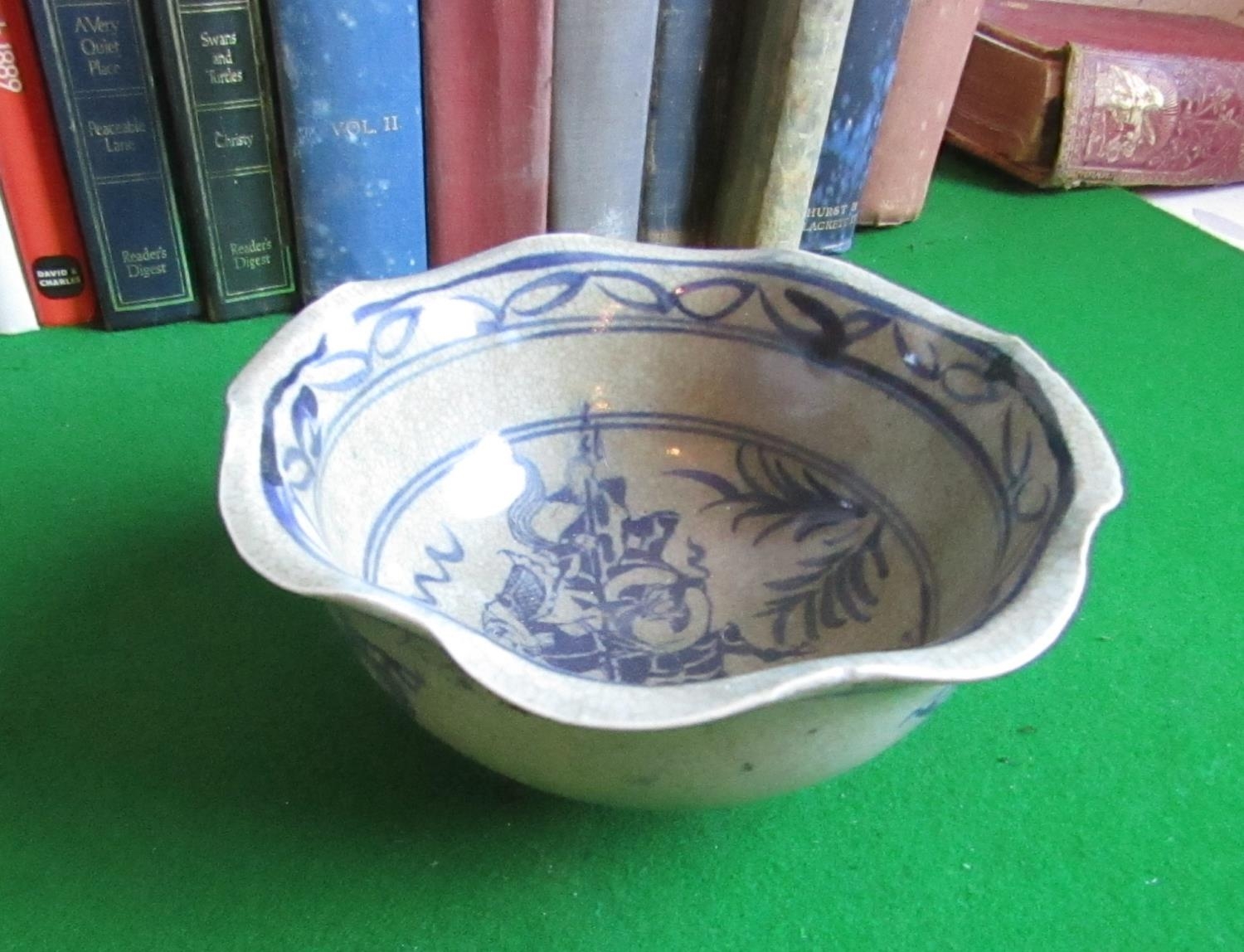 Unusual Blue and White Bowl Shaped Form Approximately 6 Inches Diameter