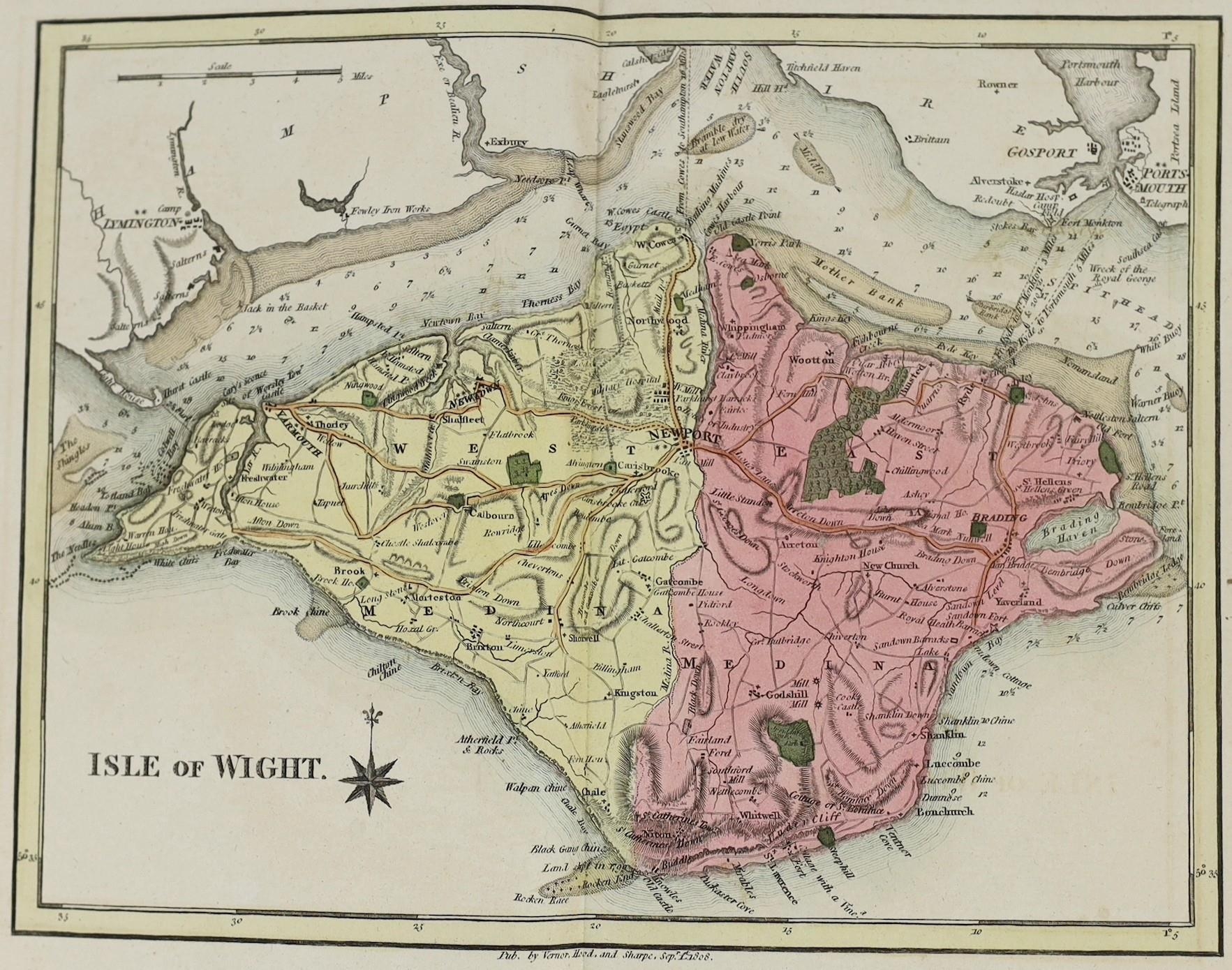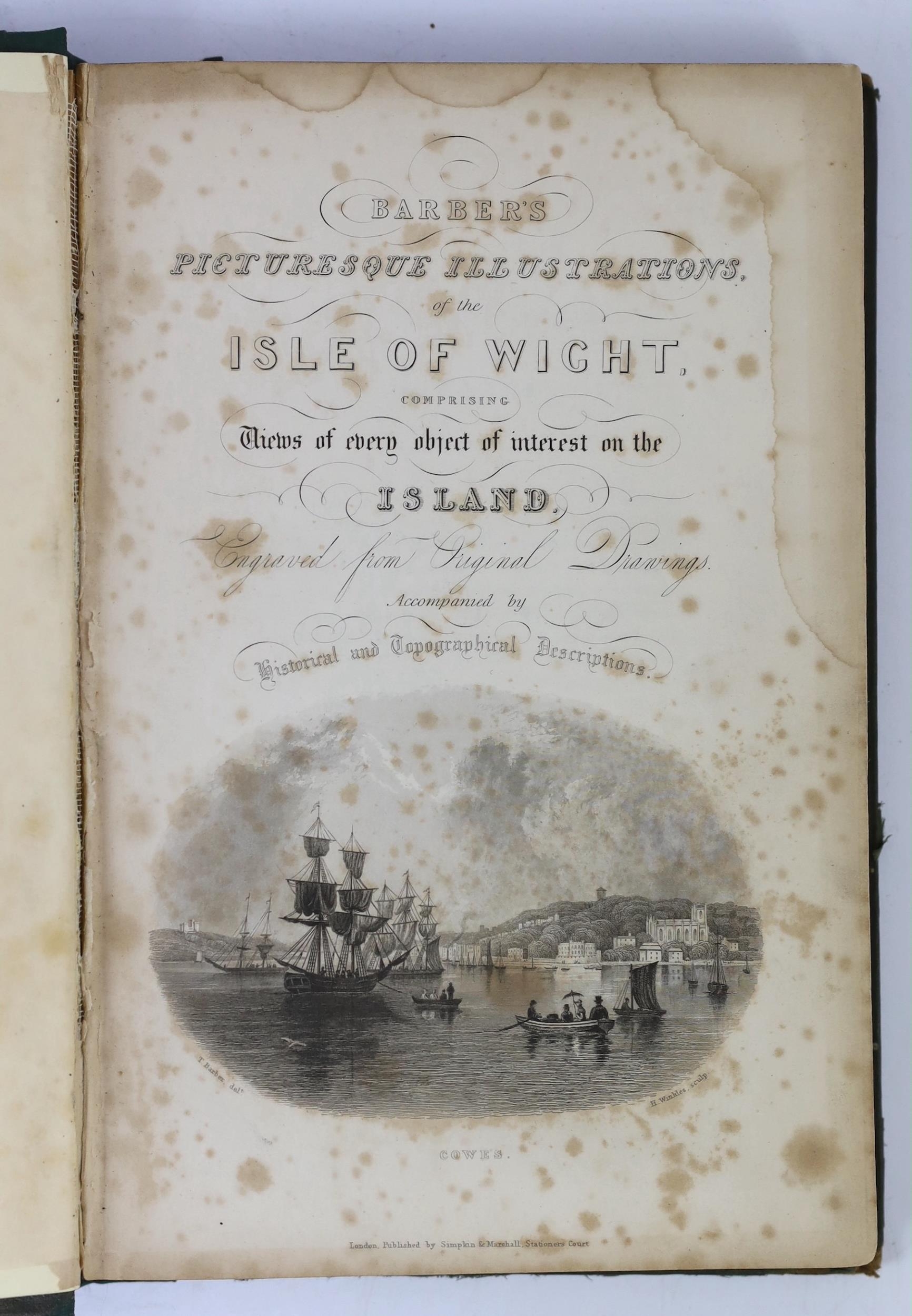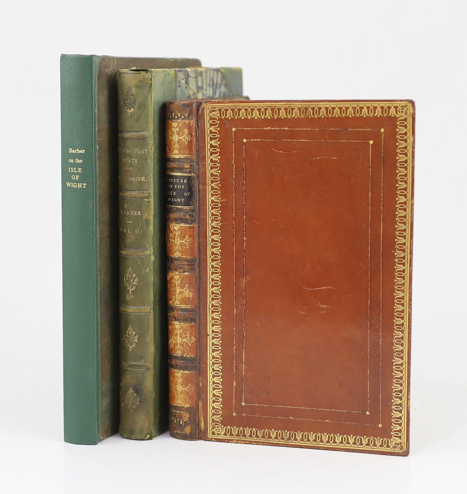 ° ° ISLE OF WIGHT: Cooke, William - A New Picture of the Isle of Wight ... an introductory account of the Island and a voyage round its coast. 2nd edition, with improvements. d-page coloured map and 36 plates; contemp. gilt and blind decorated calf (rebacked, preserving panelled spine), marbelled edges and e/ps. Southampton, 1813; Barber's Picturesque Illustrations of the Isle of Wight ... pictorial engraved title, d-page map and 40 plates, original blind decorated cloth (newly rebacked), 4to. (?1845) (2)