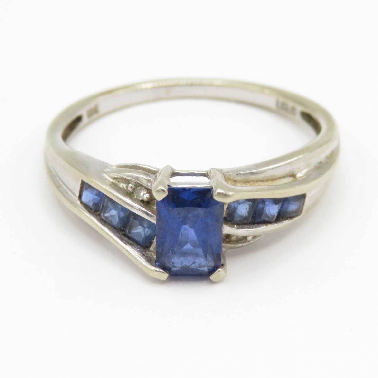 10ct white gold sapphire and white gemstone ring (1.9g) Size N