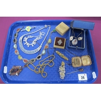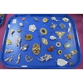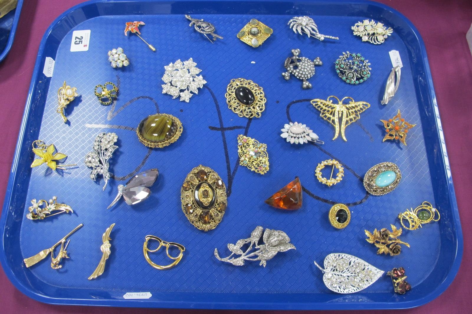 A Variety of Costume Brooches, including diamanté, floral straps, hardstone inset etc :- One Tray