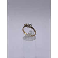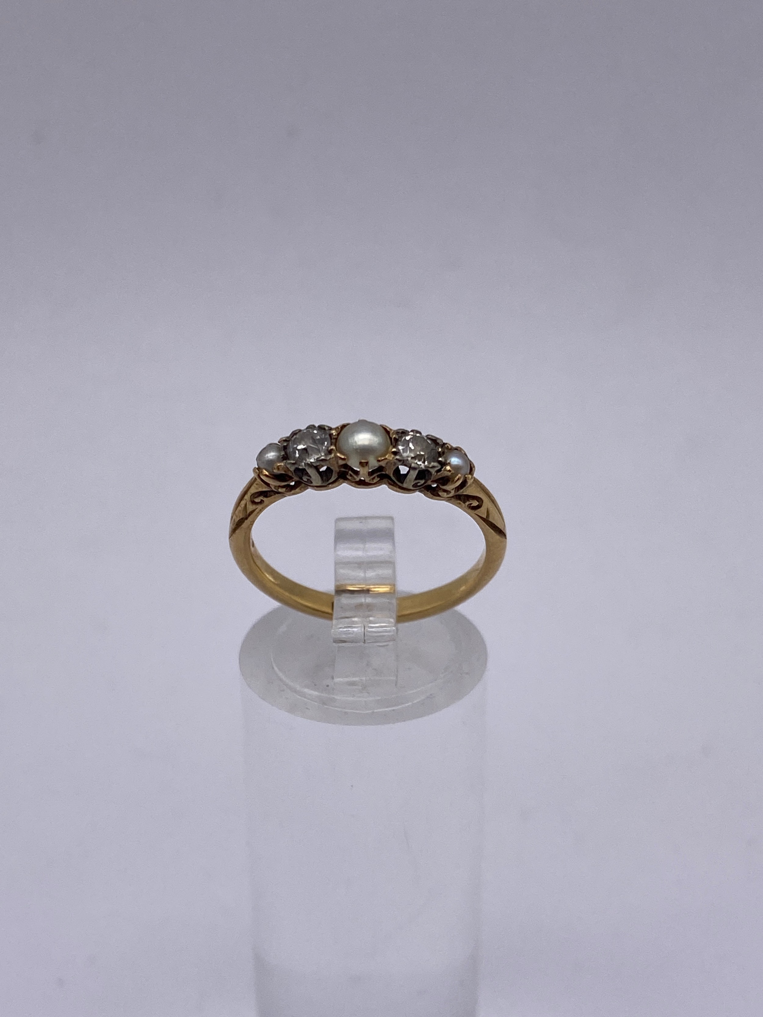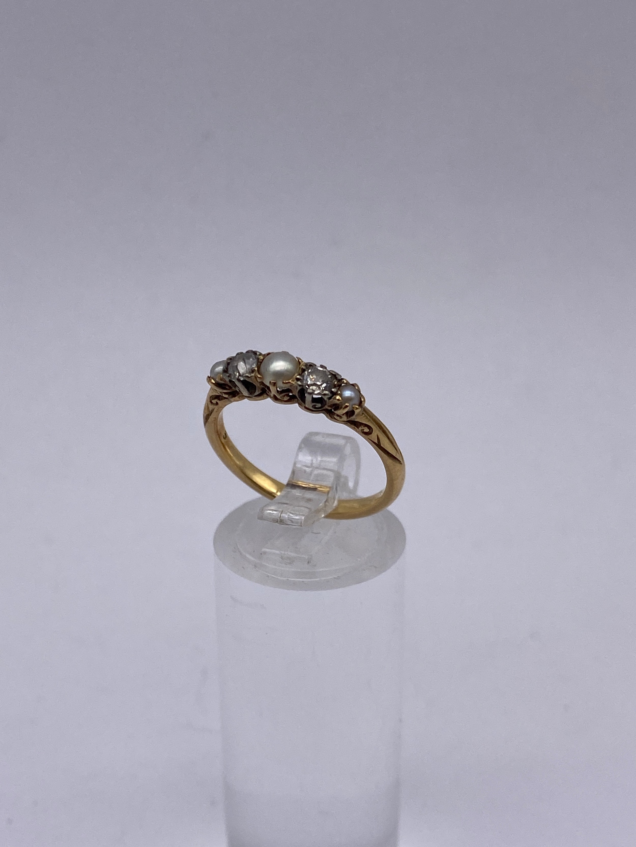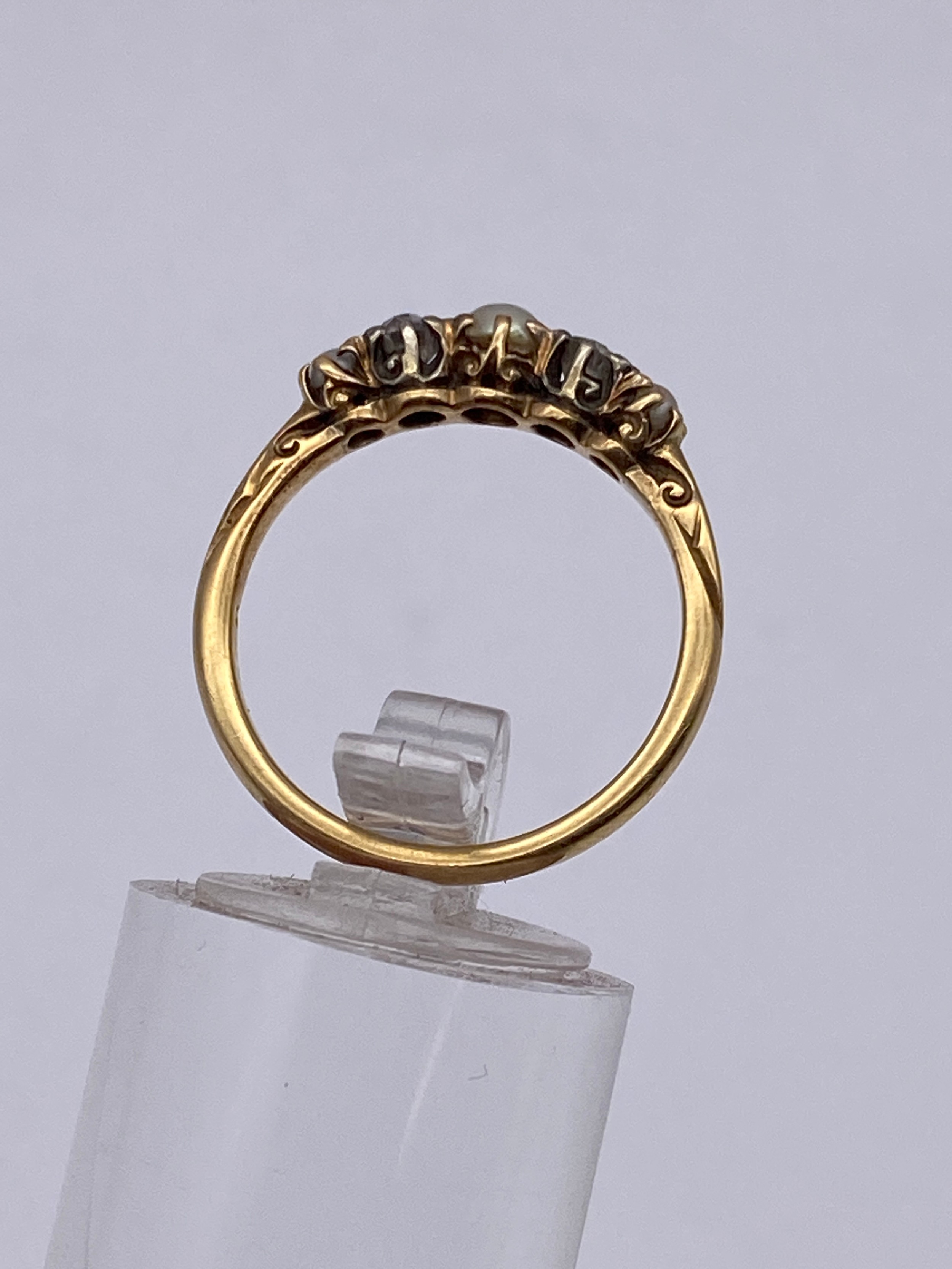 18CT GOLD DIAMOND AND PEARL CHANNEL SET RING 2.9G APPROX
