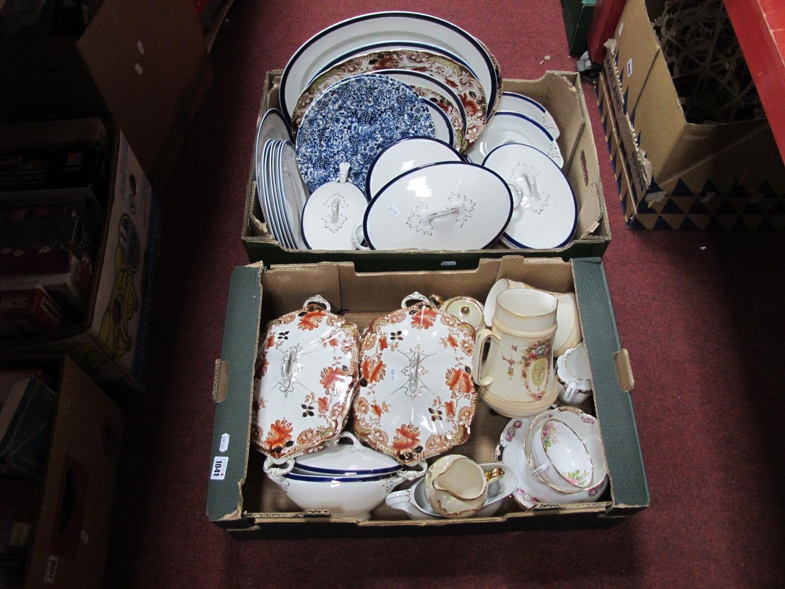 A 'Bleu De Roi' Part Dinner Service, comprising lidded tureens, serving plates etc, with 'Togo' tureens and serving plates, Court China ware and two Crown Devon jugs:- Two Boxes.
