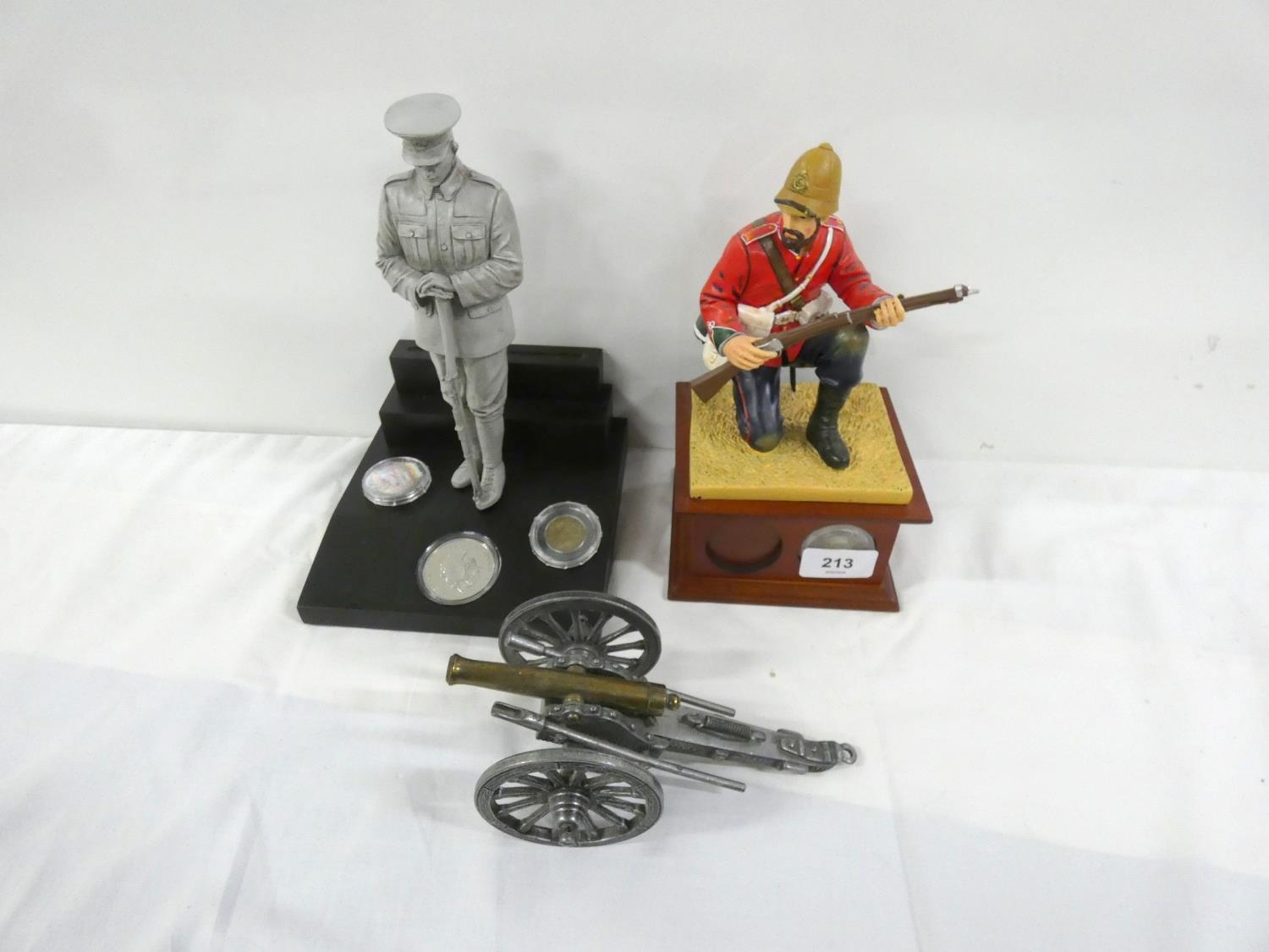 Two soldier figures and diecast cannon.