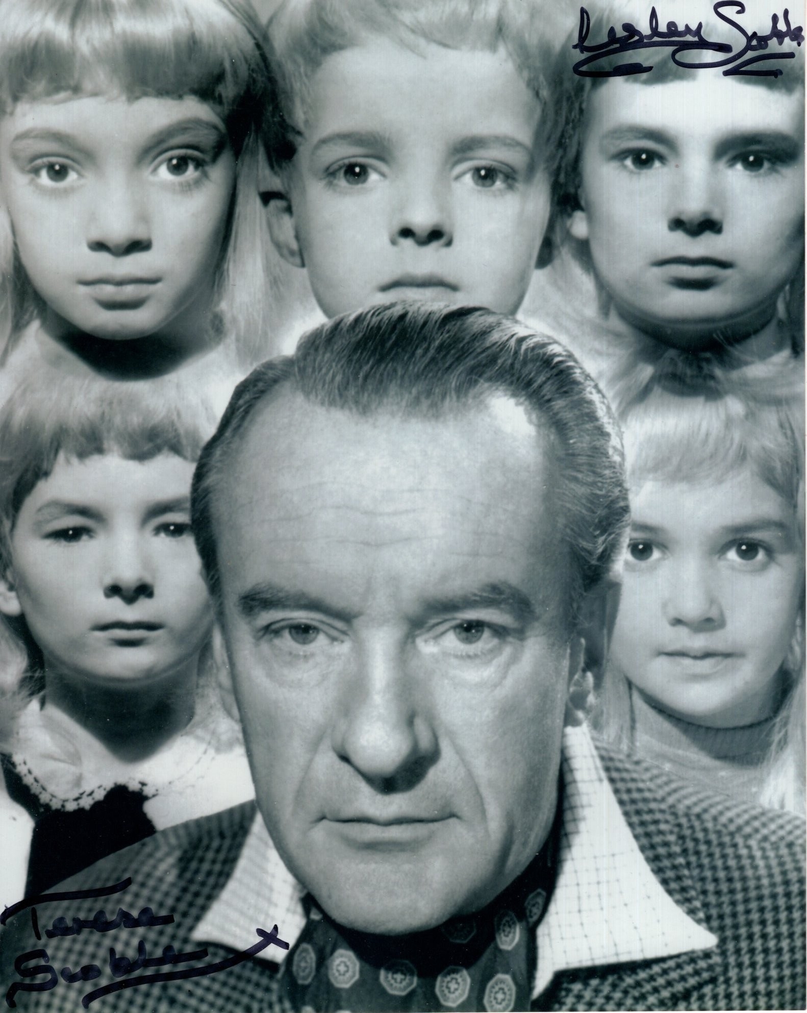 Village of the Damned 8x10 B&W horror movie photo signed by twins Teri and Lesley Scoble