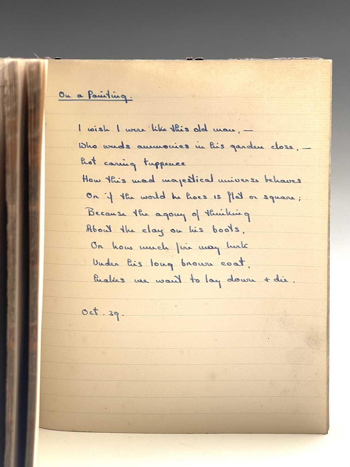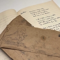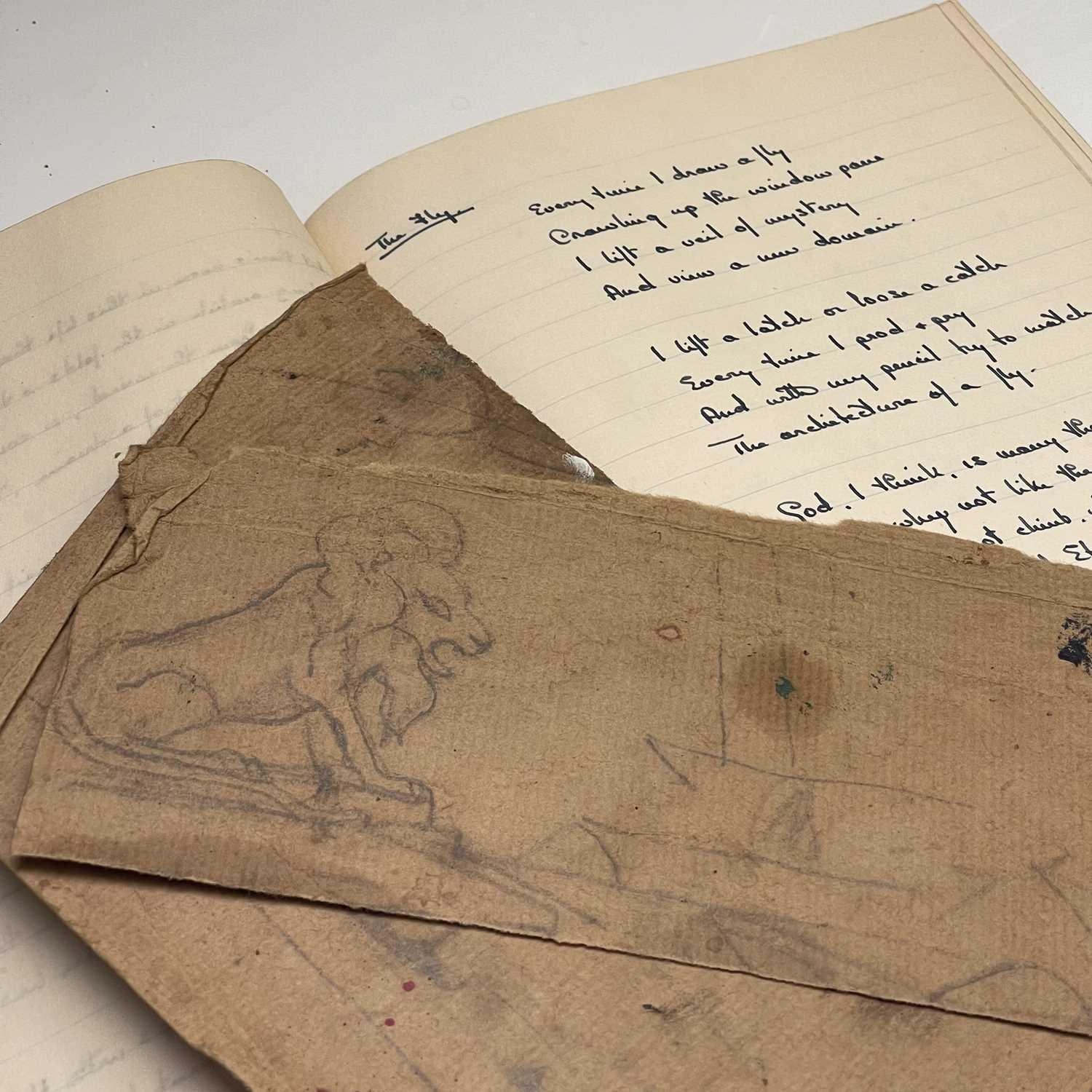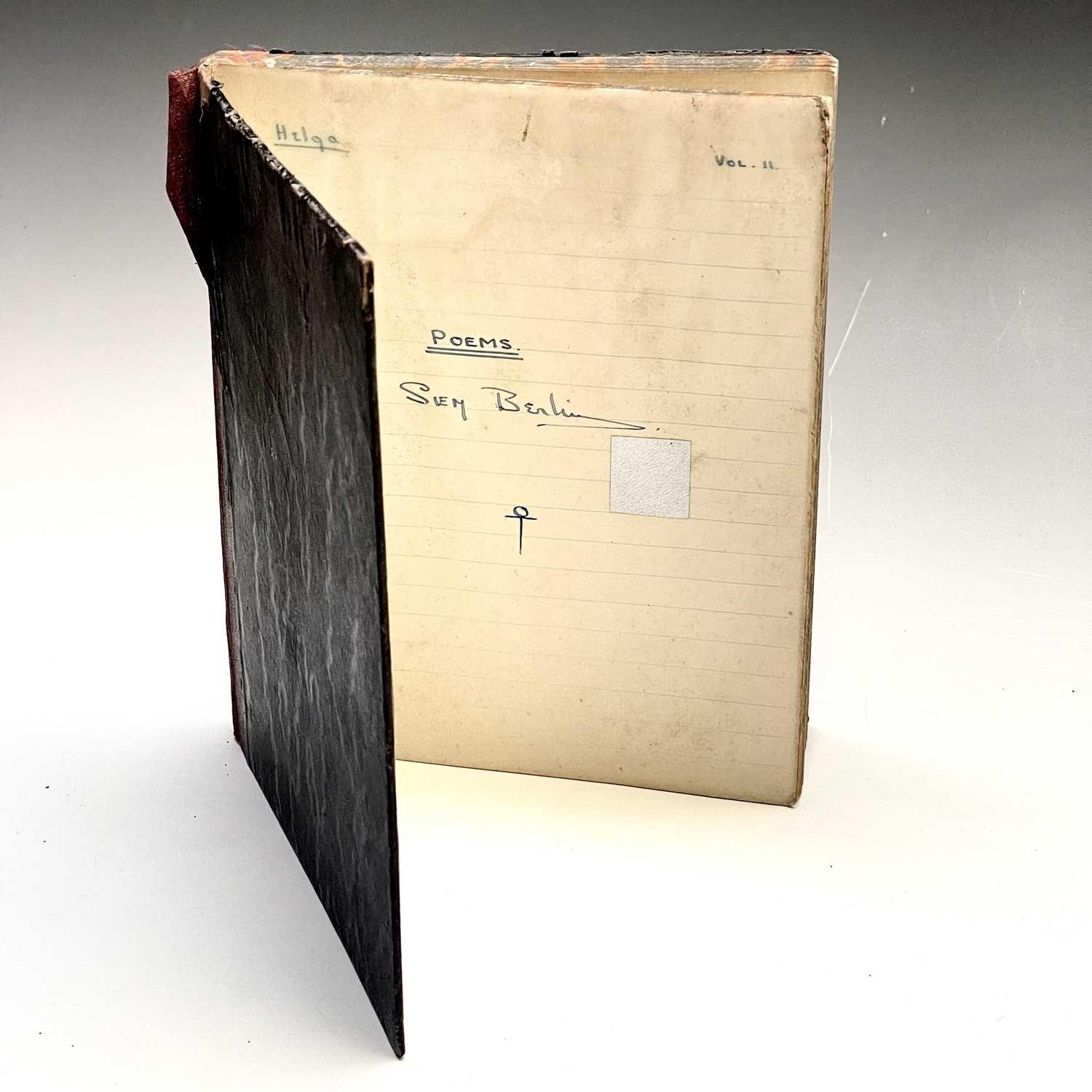Sven BERLIN (1911-1999) A handwritten book of poetry and other musings Signed and inscribed 'Helga Vol II' With dates from Jan '39 to Sept '40 Together with two early scrap paper drawings, one depicting a lion the other shipping 20 x 16.5cm