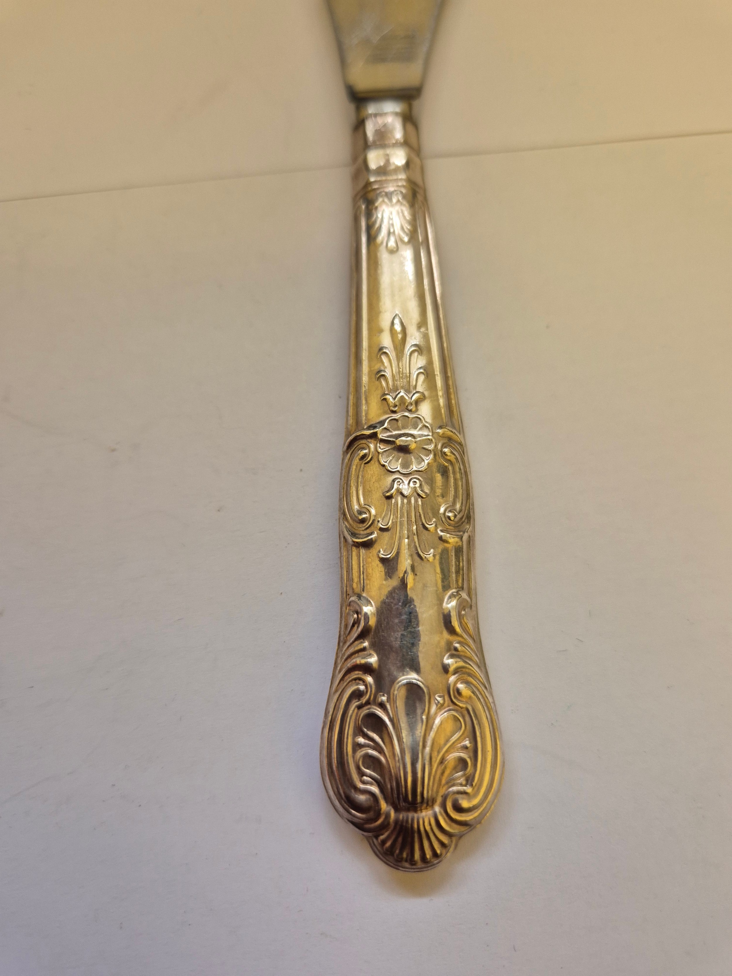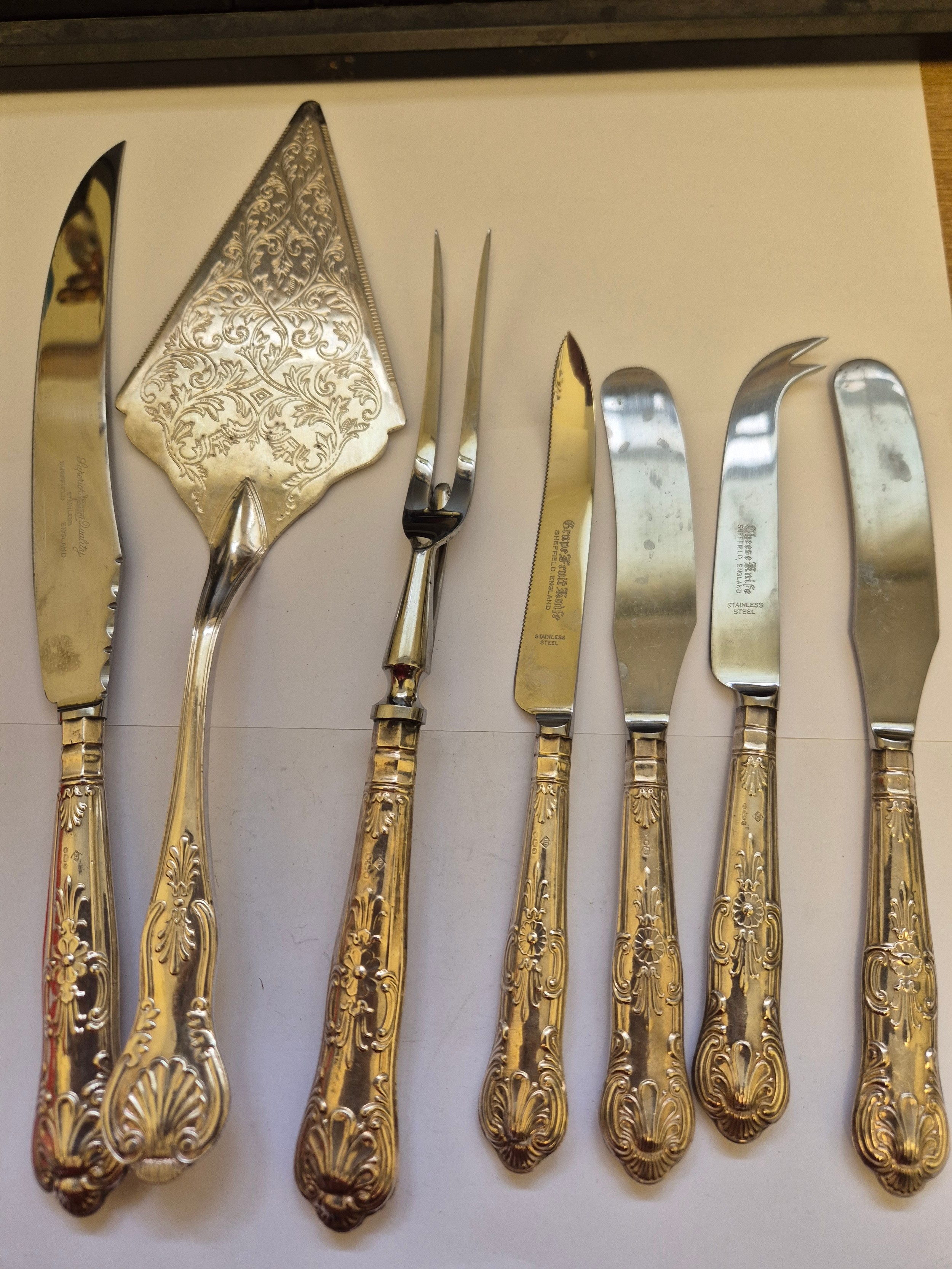 Sterling Silver King's Pattern cutlery including carving knife & fork, cheese knife etc (all hallmarked handles) and also a Viners silver plated cake slice
