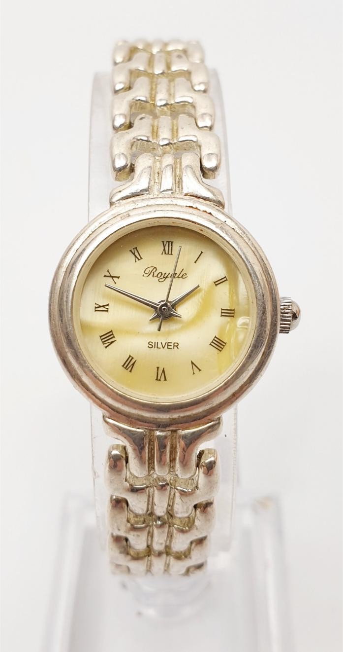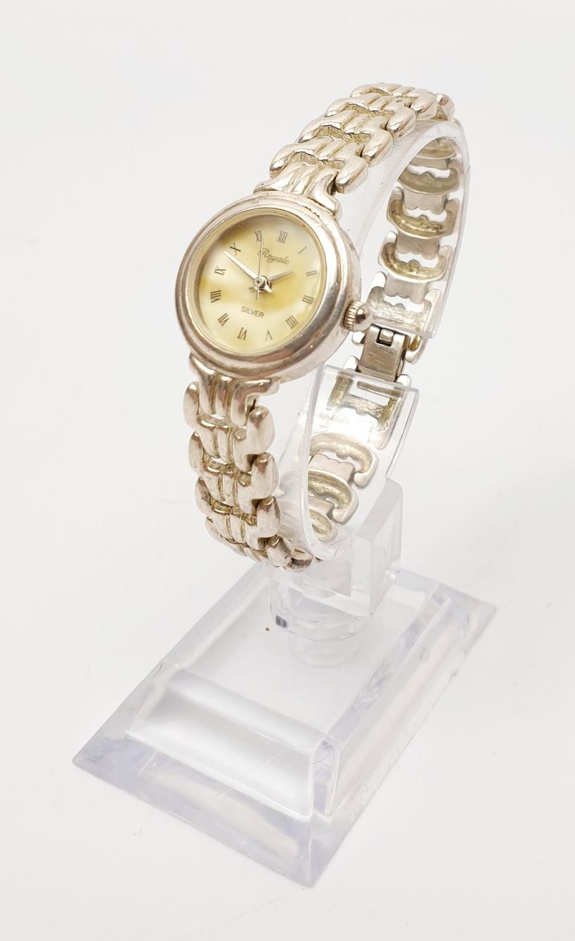 A ladies Royale quartz wrist watch in a hallmarked silver case and bracelet, gross weight 35g. No international shipping.