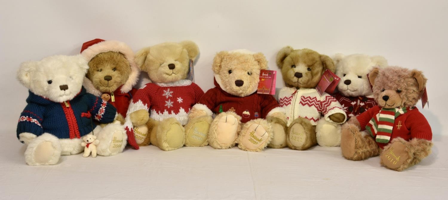 Seven Harrods Teddy Bears, comprising of 2006; 2007; 2008; 2009; 2010; 2011; 2012. (7)