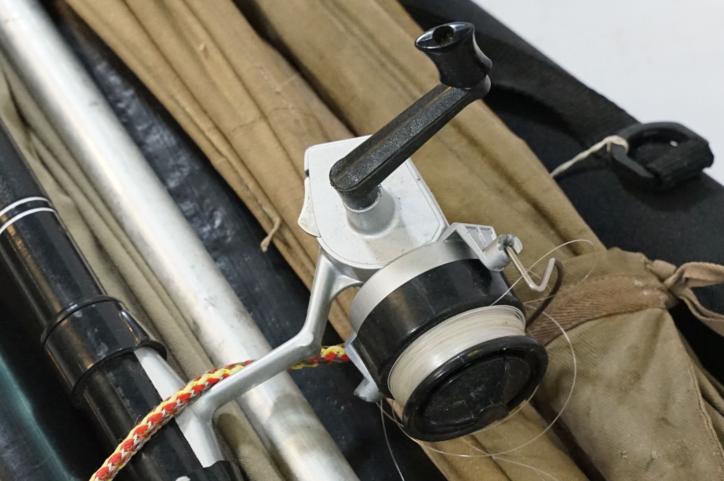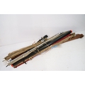 Collection of fishing rods, to comprise Bruce & Walker example, contained within cloth bags, approximately 12 examples