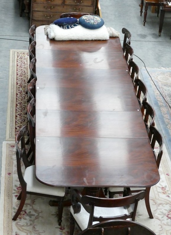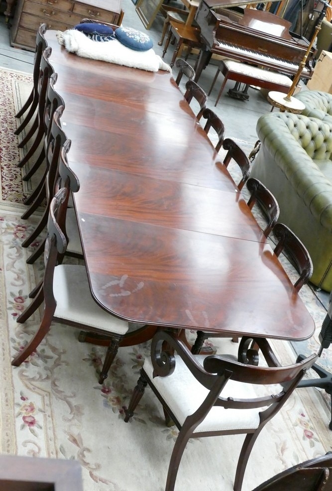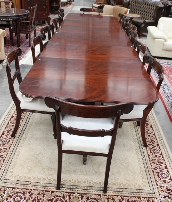 Mahogany Triple Pedestal Dining Table With Two Additional Leaves , Approx 400cm Long With 14 William IV Dining Chairs. ( Including Two Carvers )