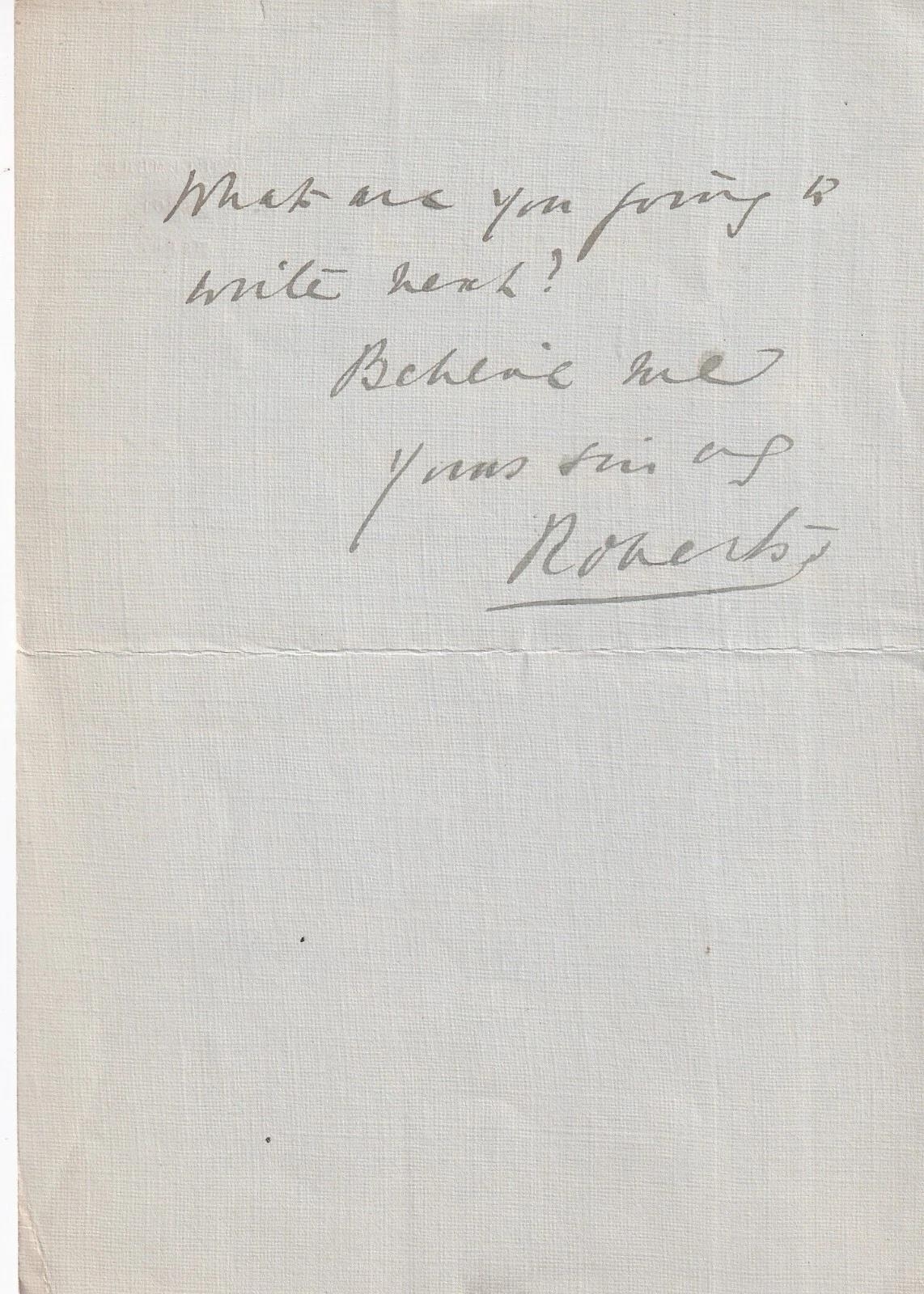 Letter Signed by Lt Frederick Roberts VC Victoria Cross Holder 1858 Oudh. 2 Page Letter Address Englemere, Ascot Berks Dated 4 June 1906. Personally Signed by Lt Frederick Roberts VC Victoria Cross Holder 1858 Oudh. Indian Mutiny. Lt Frederick Roberts Entering the East India Company Army as a 2nd Lt with the Bengal Artillery on 12 December 1851. He became Aide - de- Camp to his father in 1852, transferred to the Bengal Horse Artillery in 1854 and was promoted to Lieutenant on 31 May 1857. fought in the Indian Rebellion in 1857 , seeing action during the Siege and Capture of Delhi He was then present at the relief of Lucknow where, as Deputy Assistant Quartermaster-General, he was attached to the staff of Sir Colin Campbell, Commander-in - Chief India He was awarded the Victoria Cross for actions on 2 January 1858 at Khudagunge. The citation reads: Account of Deed, On following the retreating enemy on 2 January 1858, at Khodagunge, he saw in the distance two Sepoys going away with a standard. Lieutenant Roberts put spurs to his horse and overtook them just as they were about to enter a village. They immediately turned round, and presented their muskets at him, and one of the men pulled the trigger, but fortunately the caps snapped, and the standard-bearer was cut down by this gallant young officer, and the standard taken possession of by him. He also, on the same day, cut down another Sepoy who was standing at bay, with musket and bayonet, keeping off a Sowar. Lieutenant Roberts rode to the assistance of the horseman, and, rushing at the Sepoy, with one blow of his sword cut him across the face, killing him on the spot. Details of the Letter enclosed. Good condition. All autographs come with a Certificate of Authenticity. We combine postage on multiple winning lots and can ship worldwide. UK postage from £5.99, EU from £7.99, Rest of World from £9.99