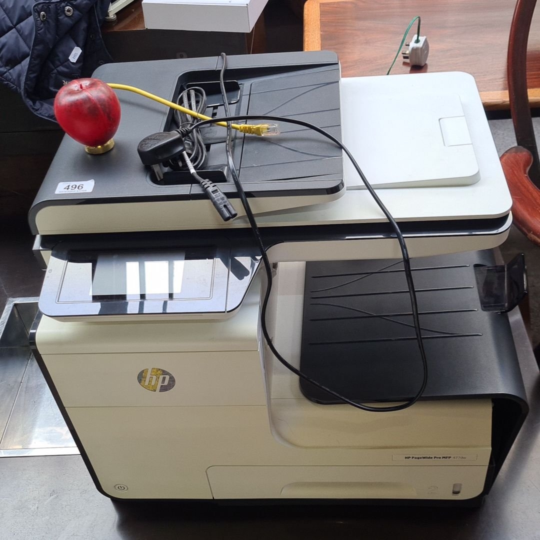 HP PageWide Pro MFP 477dw, multifunction printer with touchscreen interface and network connectivity.