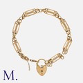 A bracelet with heart padlock clasp, Hallmarked for 9 carat gold. Size: 22cm, Weight: 13.62g.