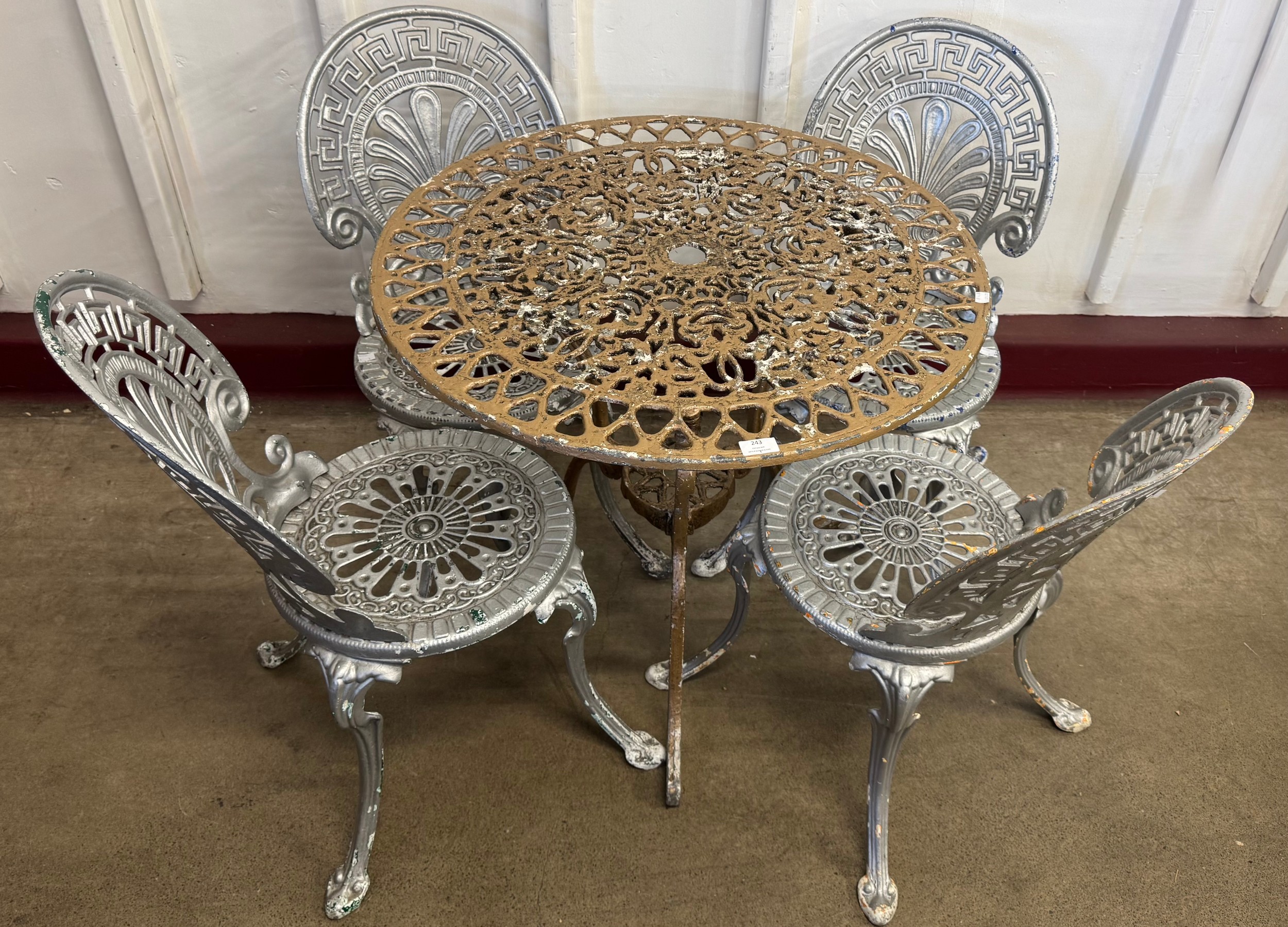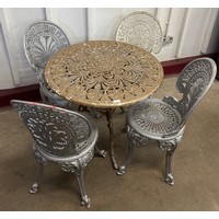 A Victorian style cast alloy garden table and four chairs