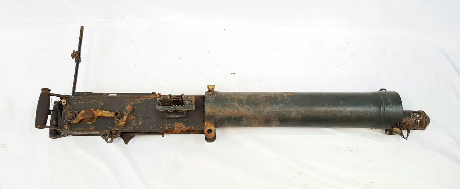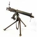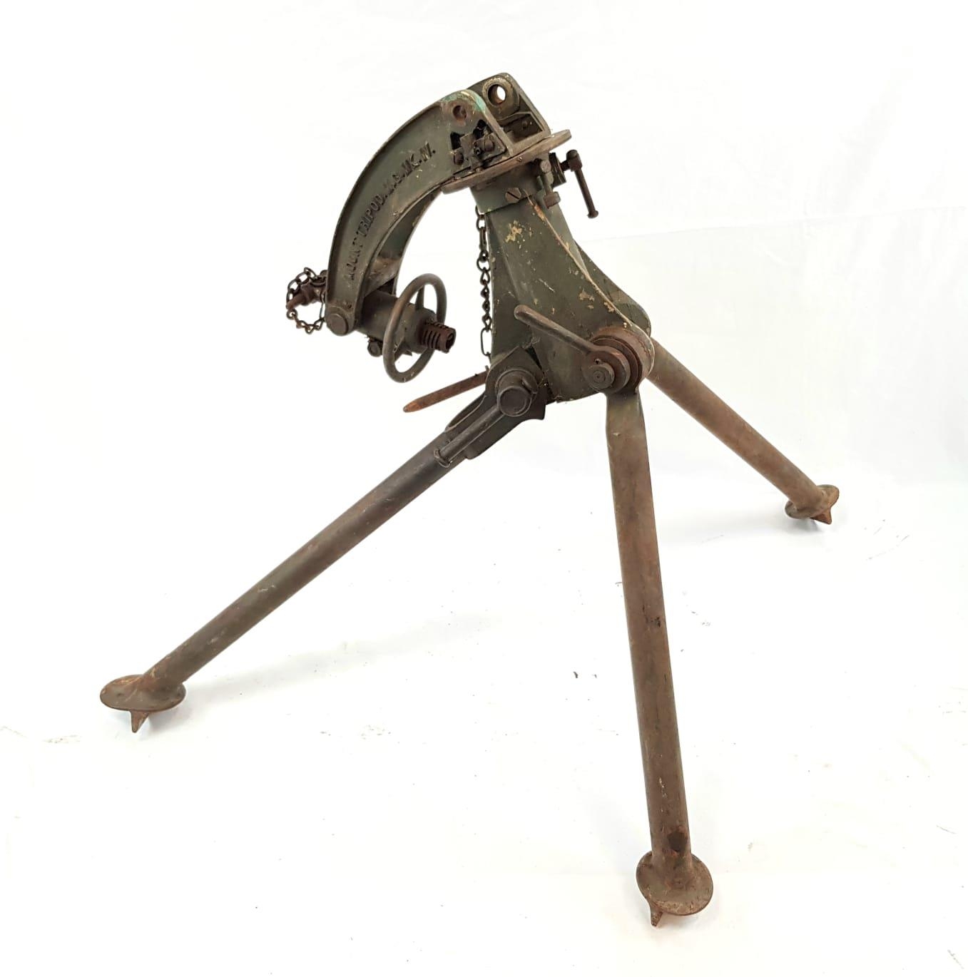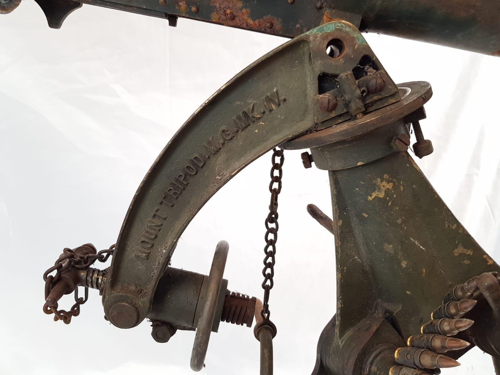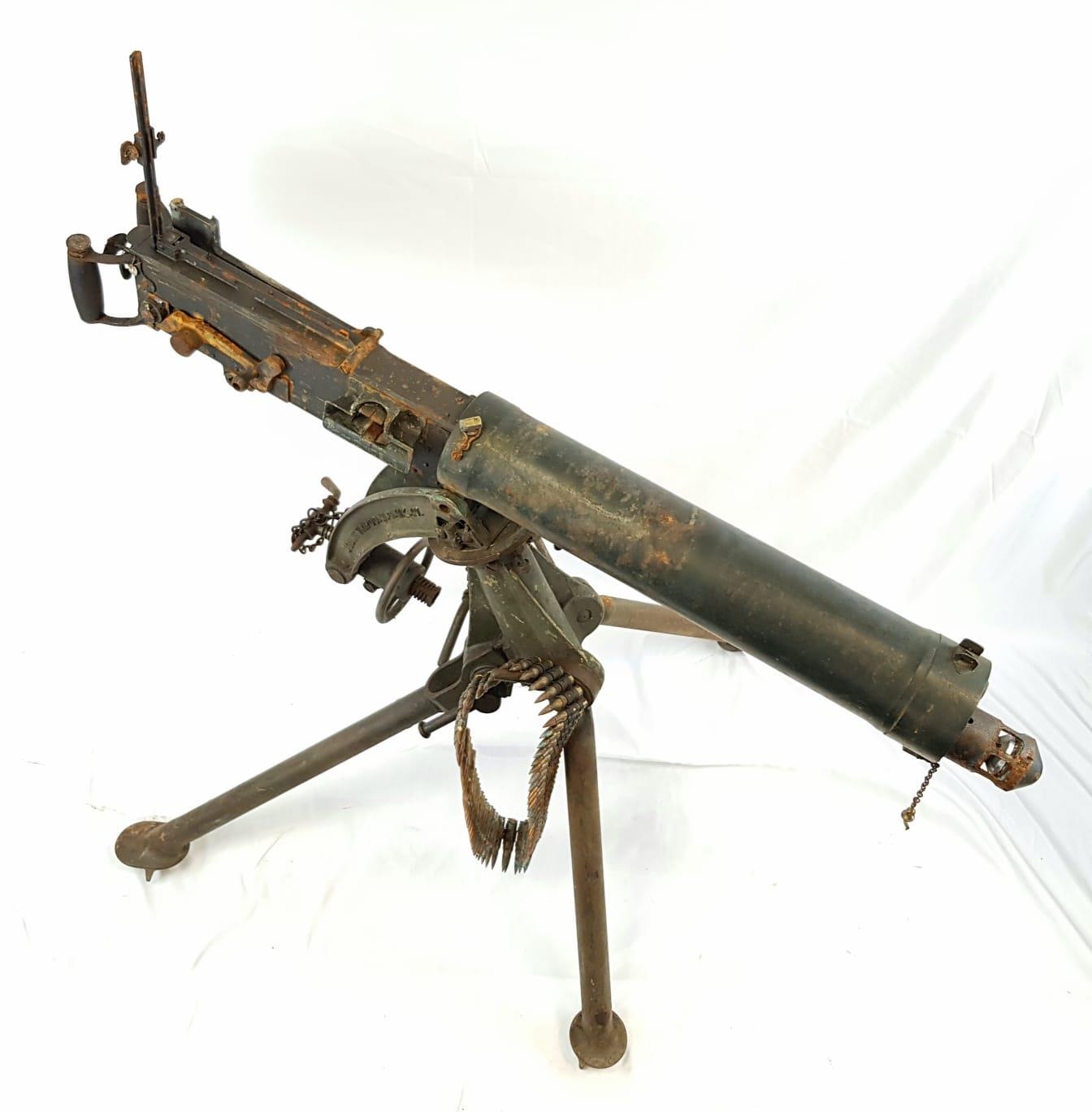 A WW2 Era Deactivated British Vickers Machine Gun and Tripod. This gun has seen action on three continents. Awkward to set up but once this water-cooled killing machine got going the fire-rate was 500 - .303 rounds per minute. In need of some love and attention so a perfect restoration piece for the serious militaria collector. Lovely stuff!
