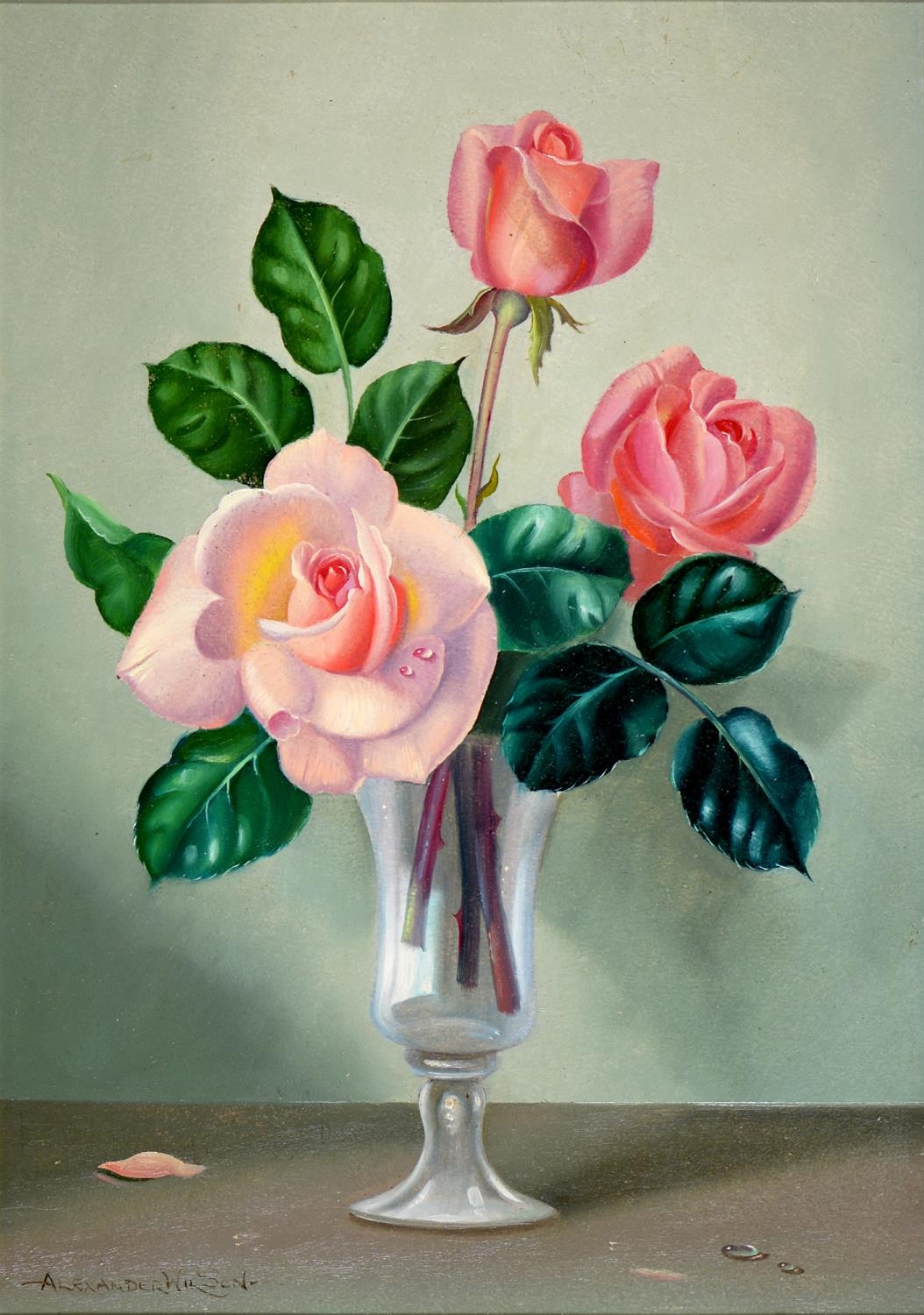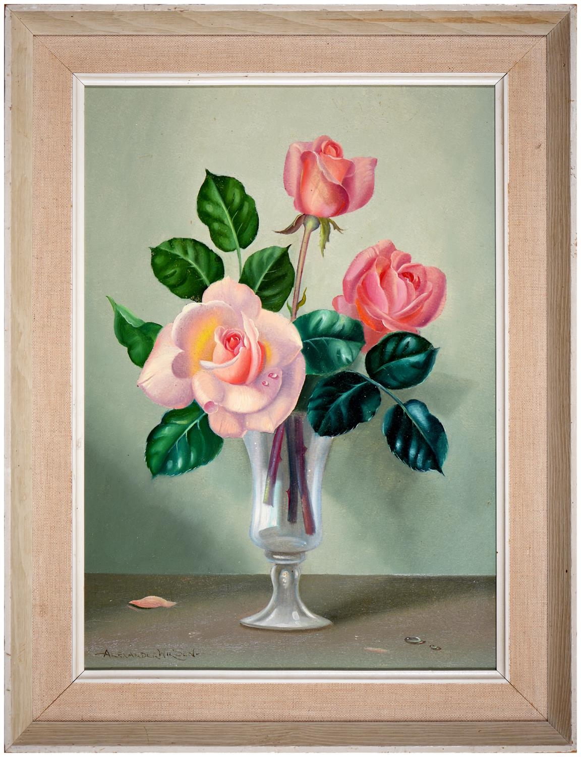 Alexander Wilson (fl mid 20th century) - Roses in a Glass Vase, signed, oil on board, 34 x 24cm