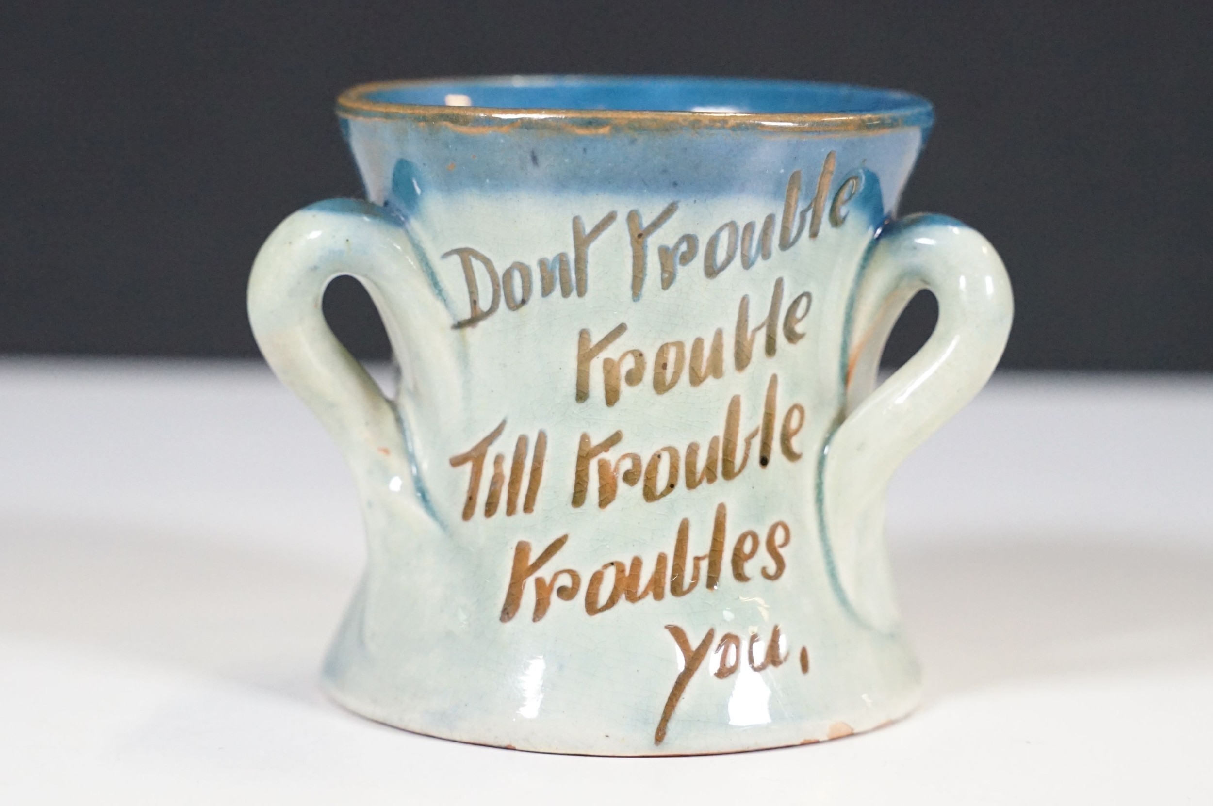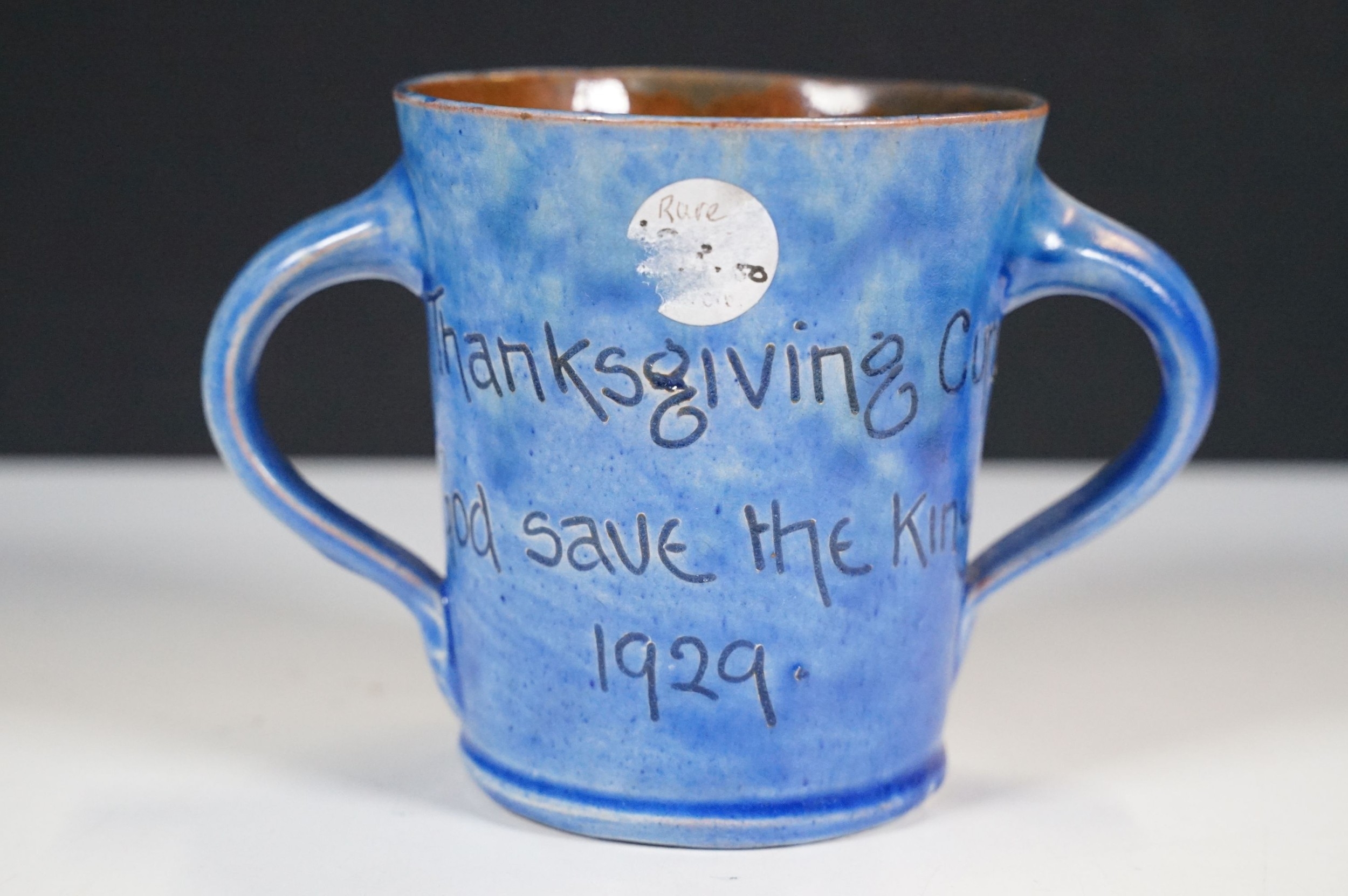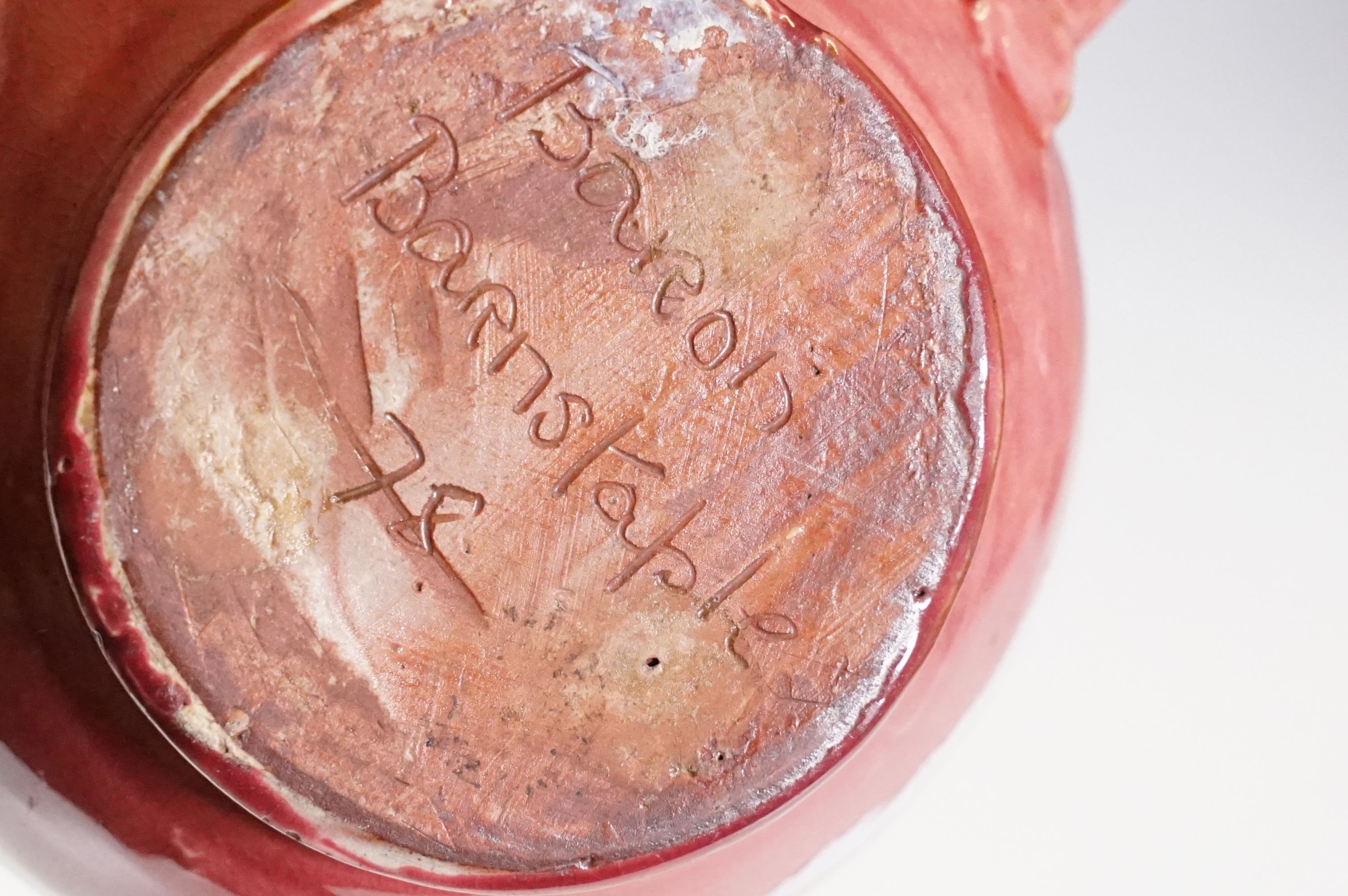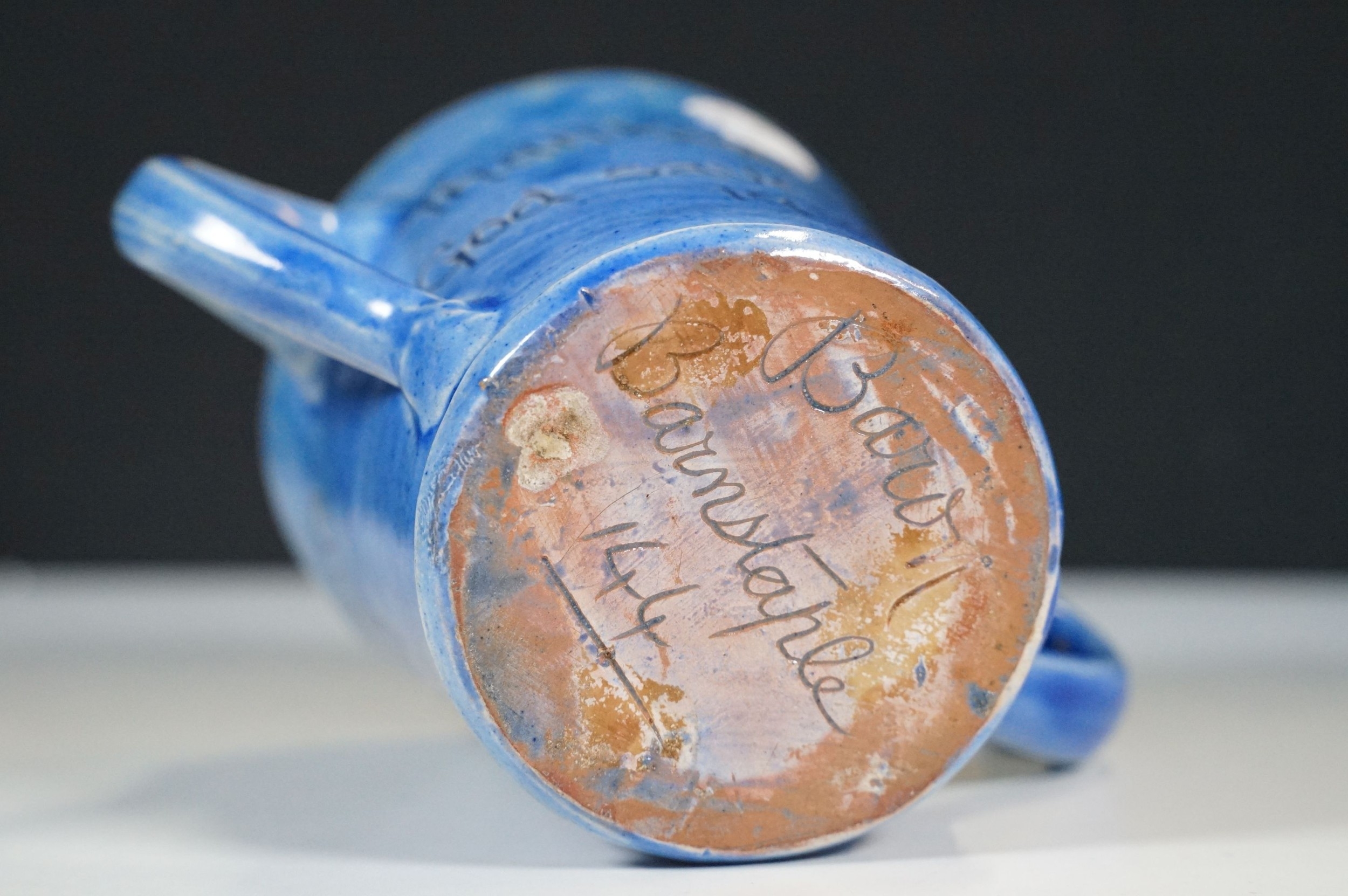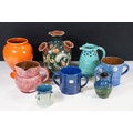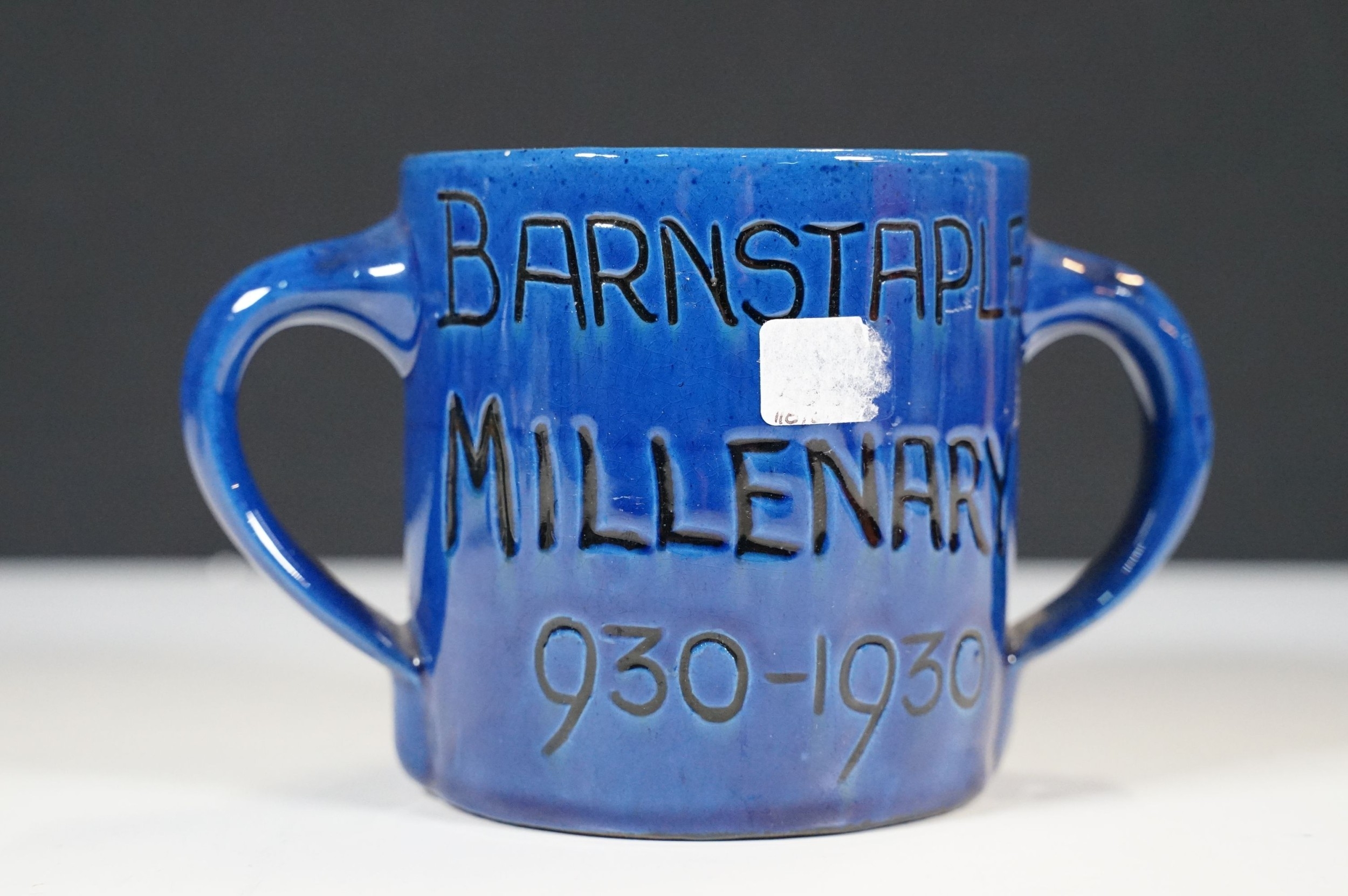 Selection of ceramics to include Barnstaple millenary 1930 mug, Baron Thanksgiving cup 1929, Victorian Branham Art Nouveau small vase, Exeter pot, etc, with impressed marks to bases (8)