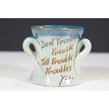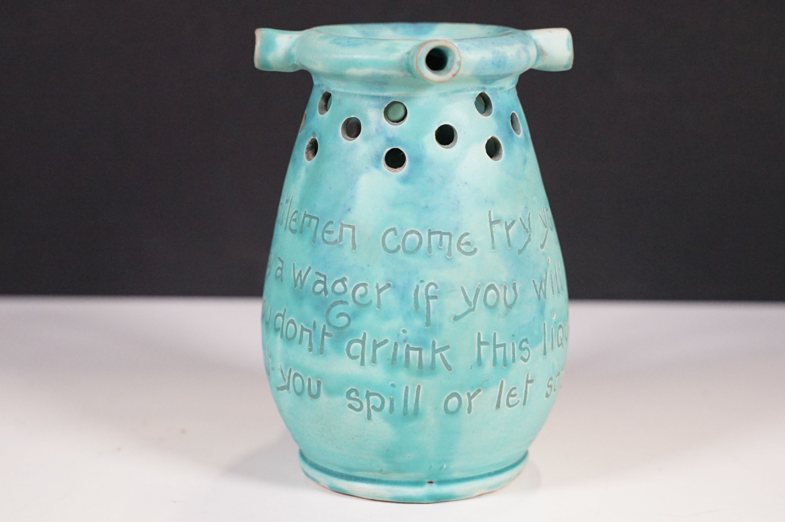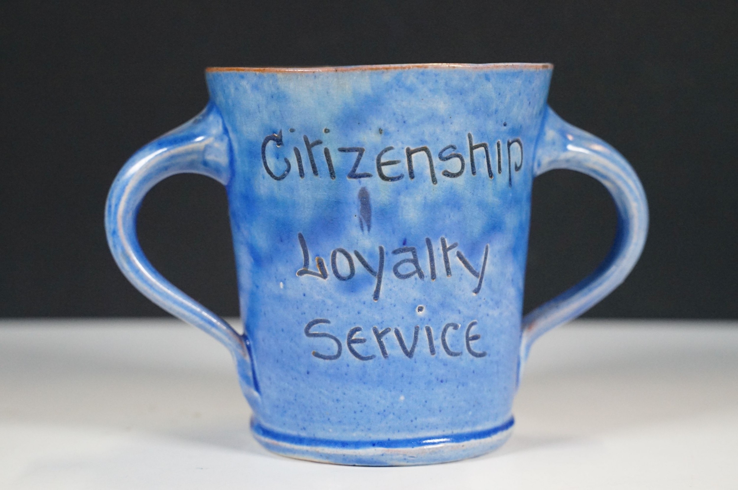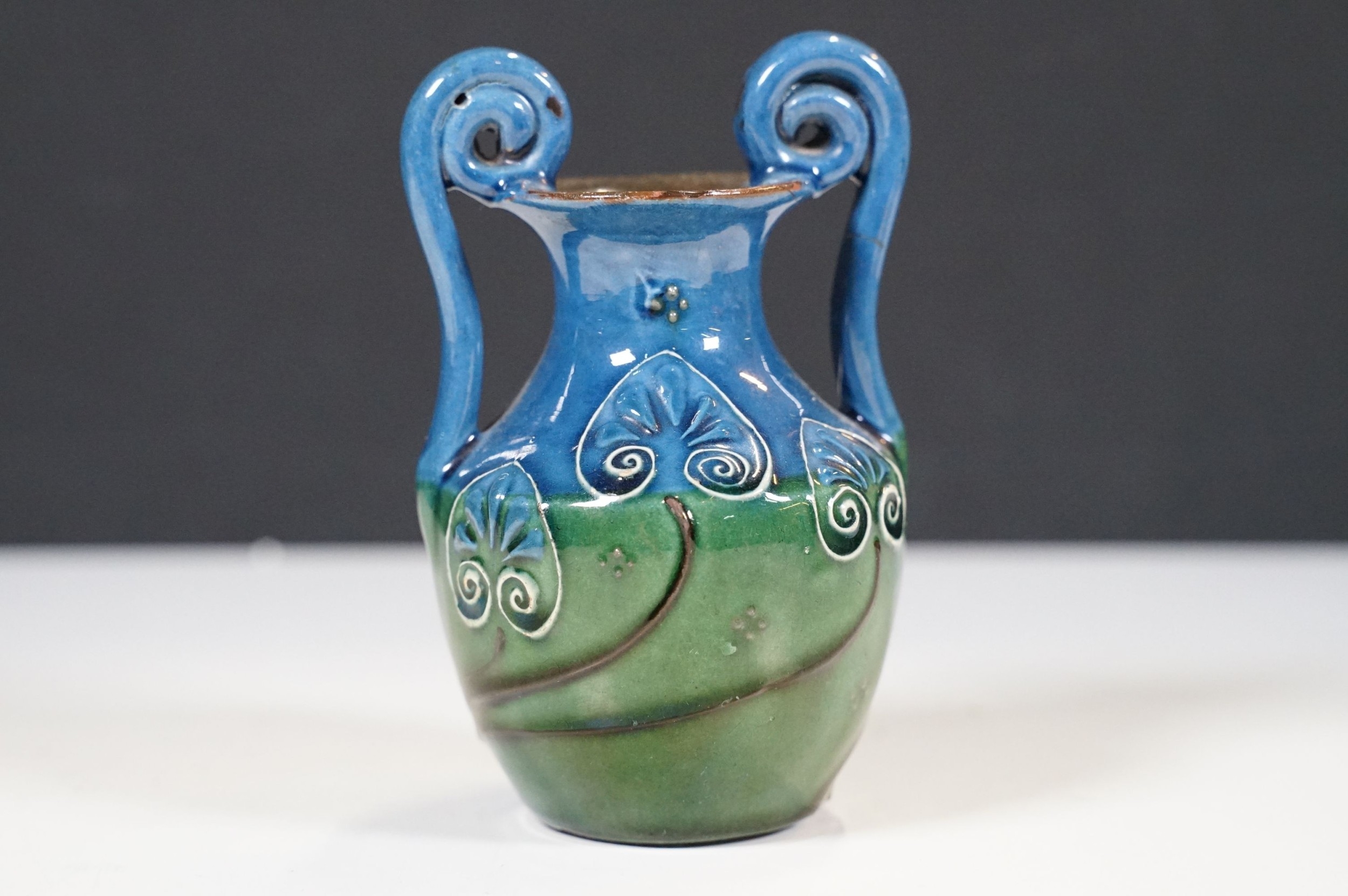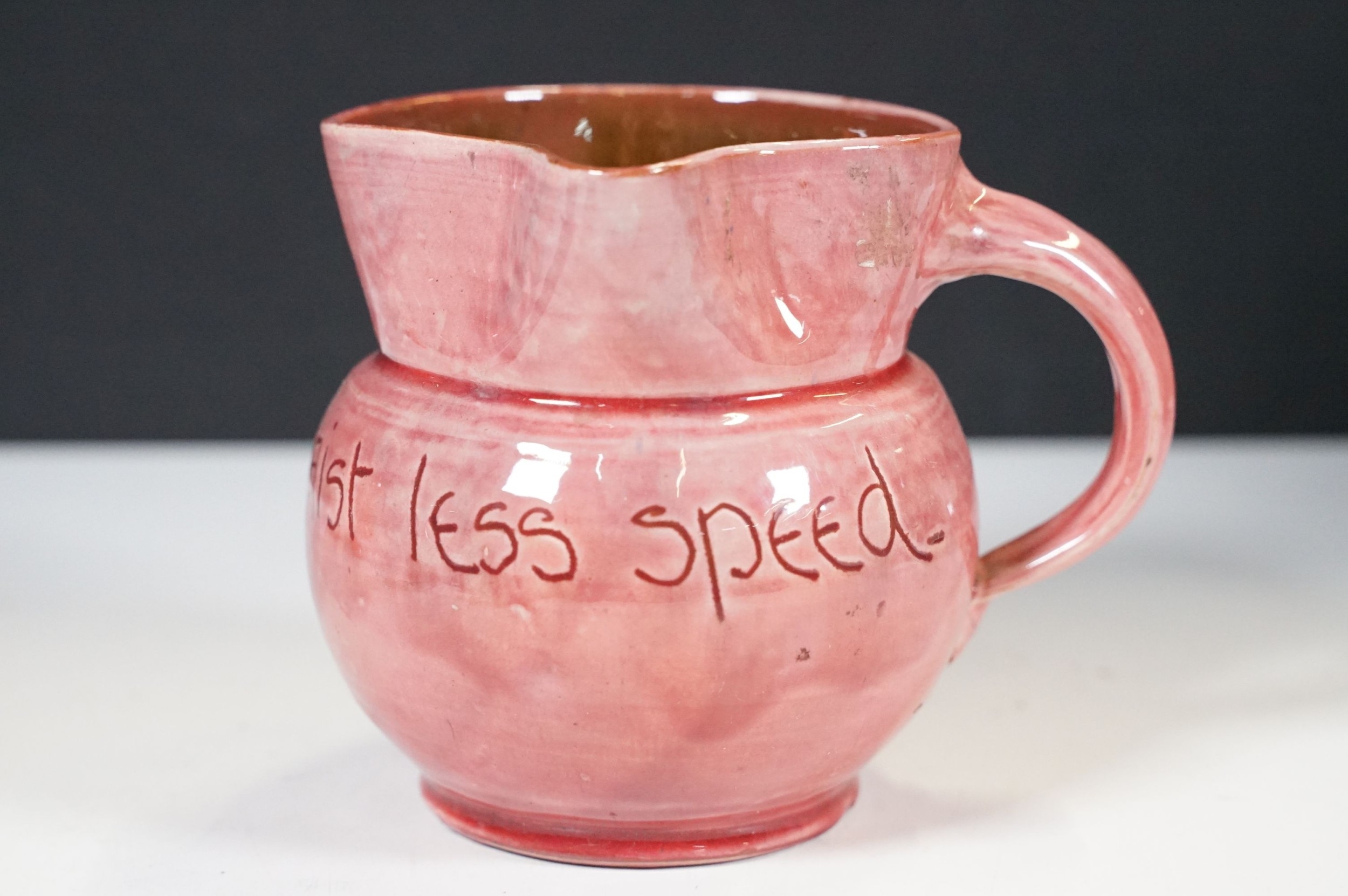 Selection of ceramics to include Barnstaple millenary 1930 mug, Baron Thanksgiving cup 1929, Victorian Branham Art Nouveau small vase, Exeter pot, etc, with impressed marks to bases (8)