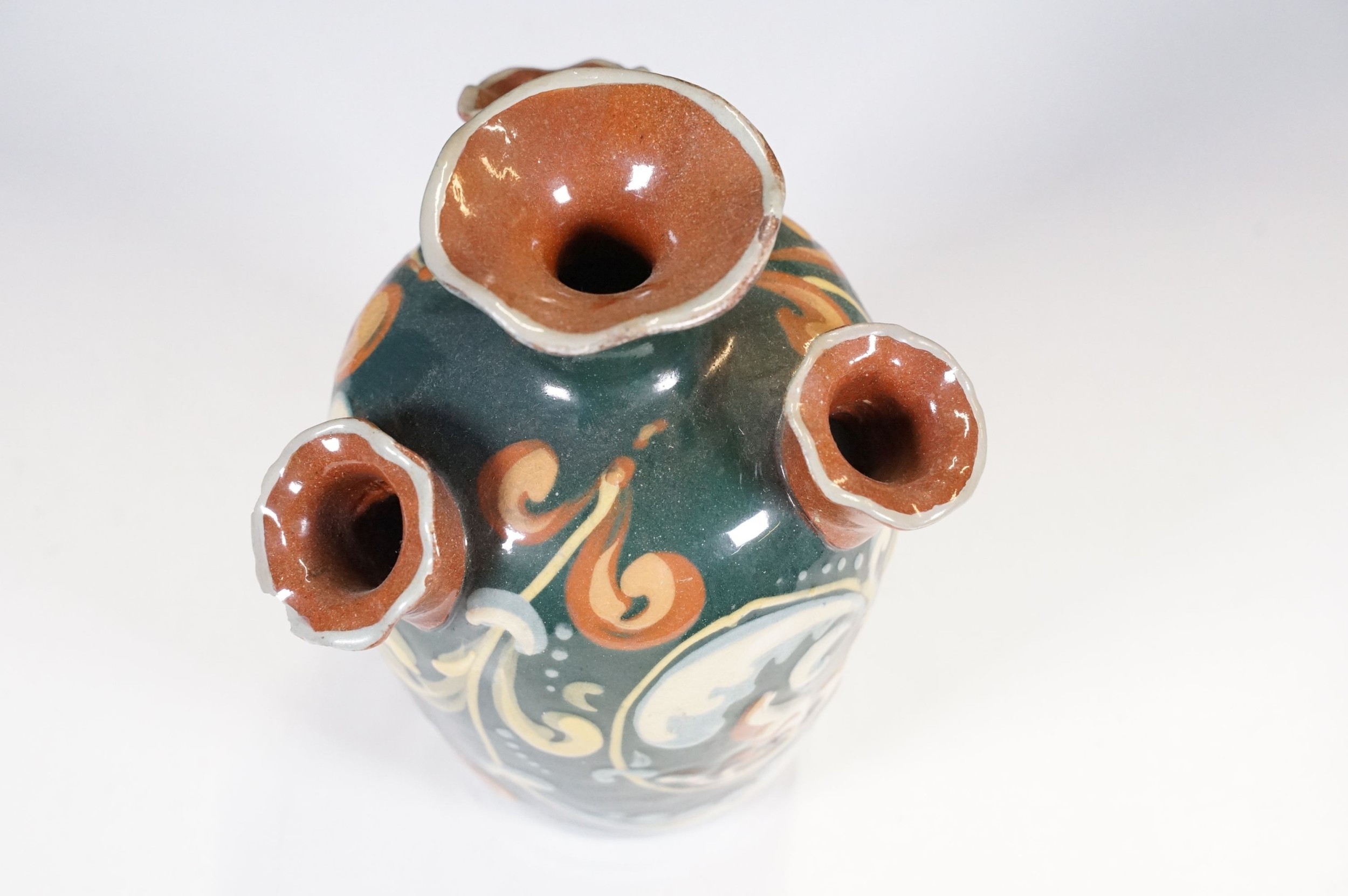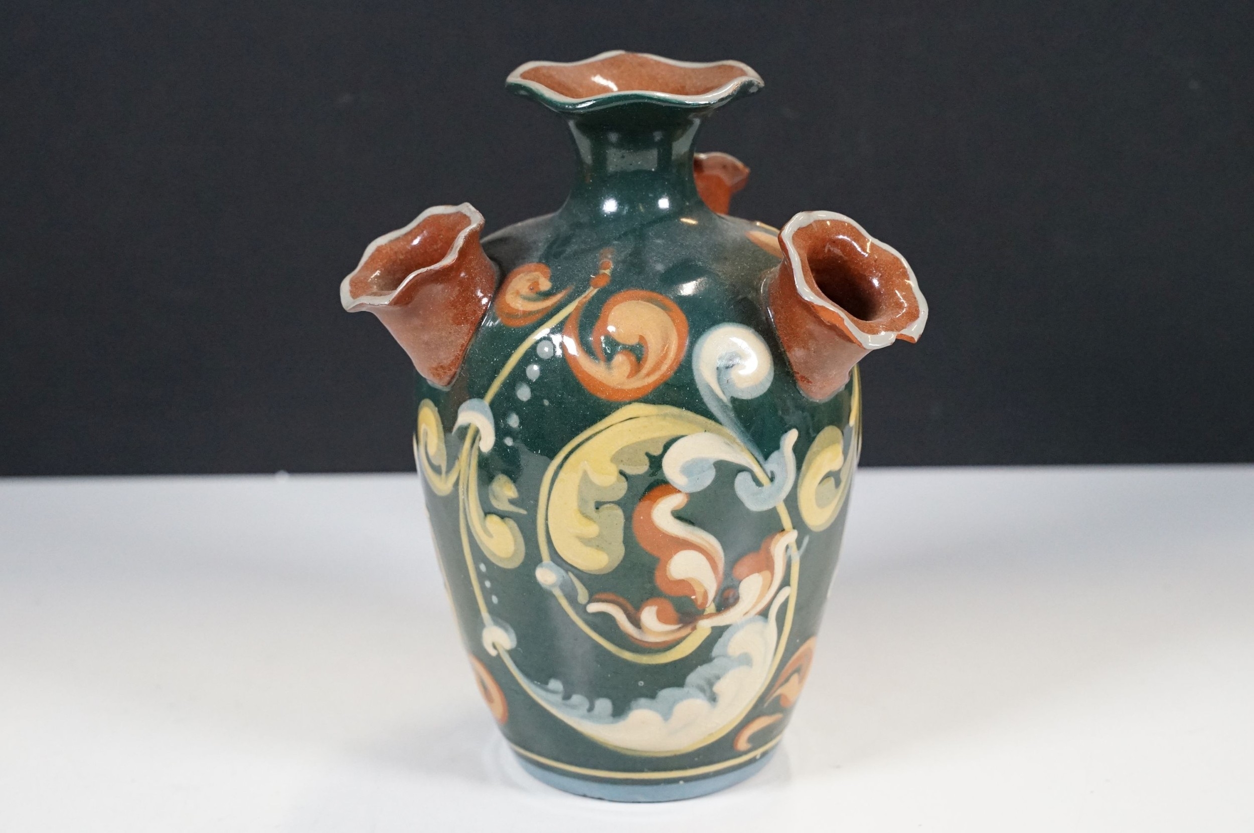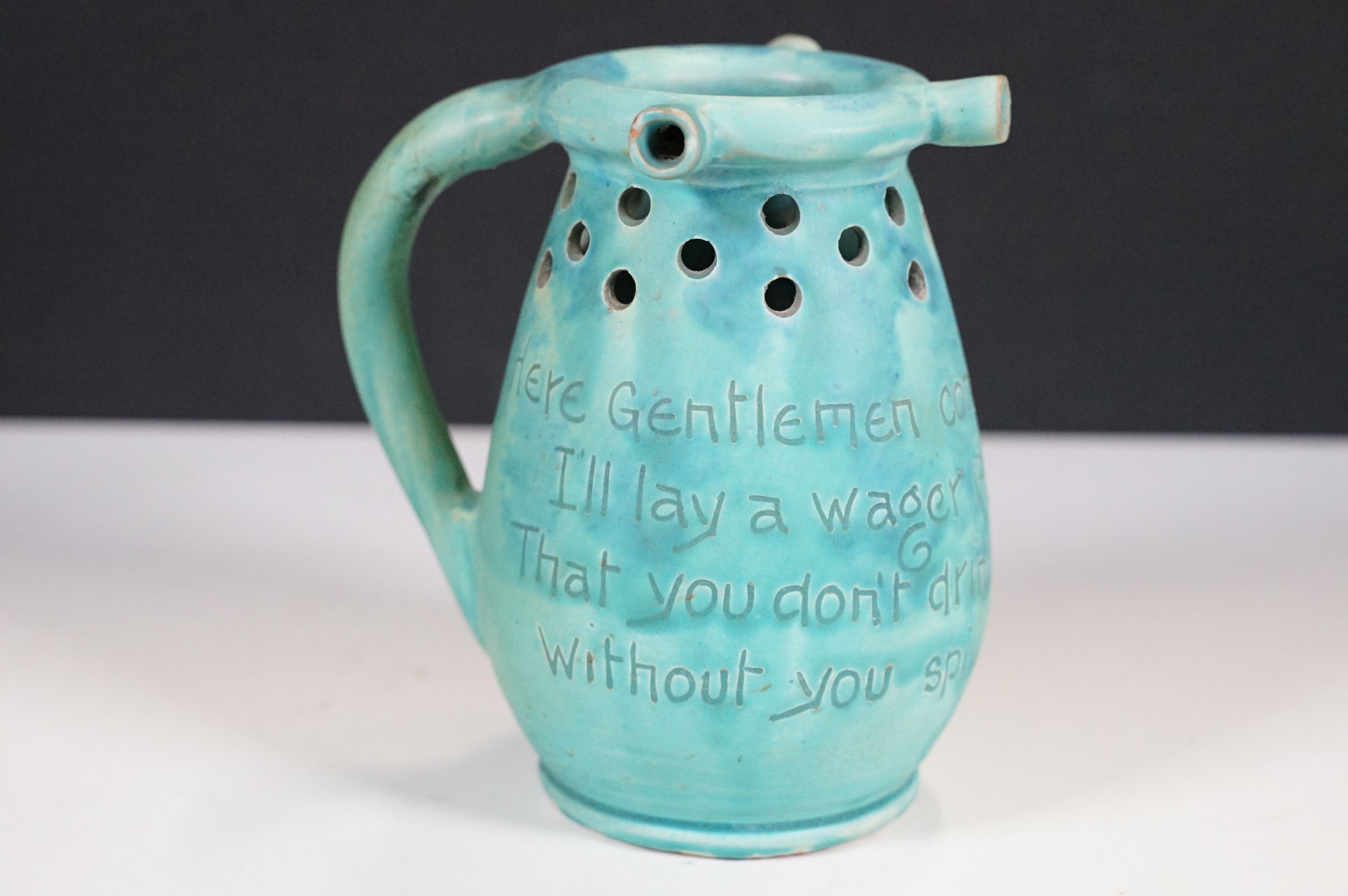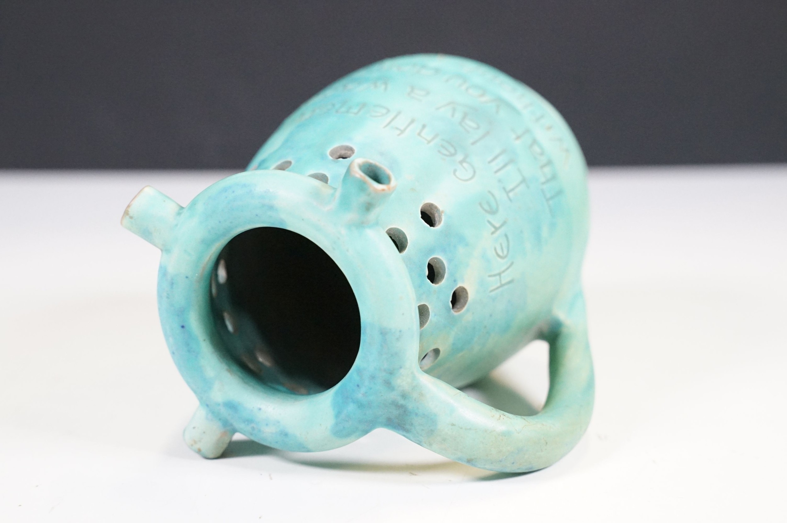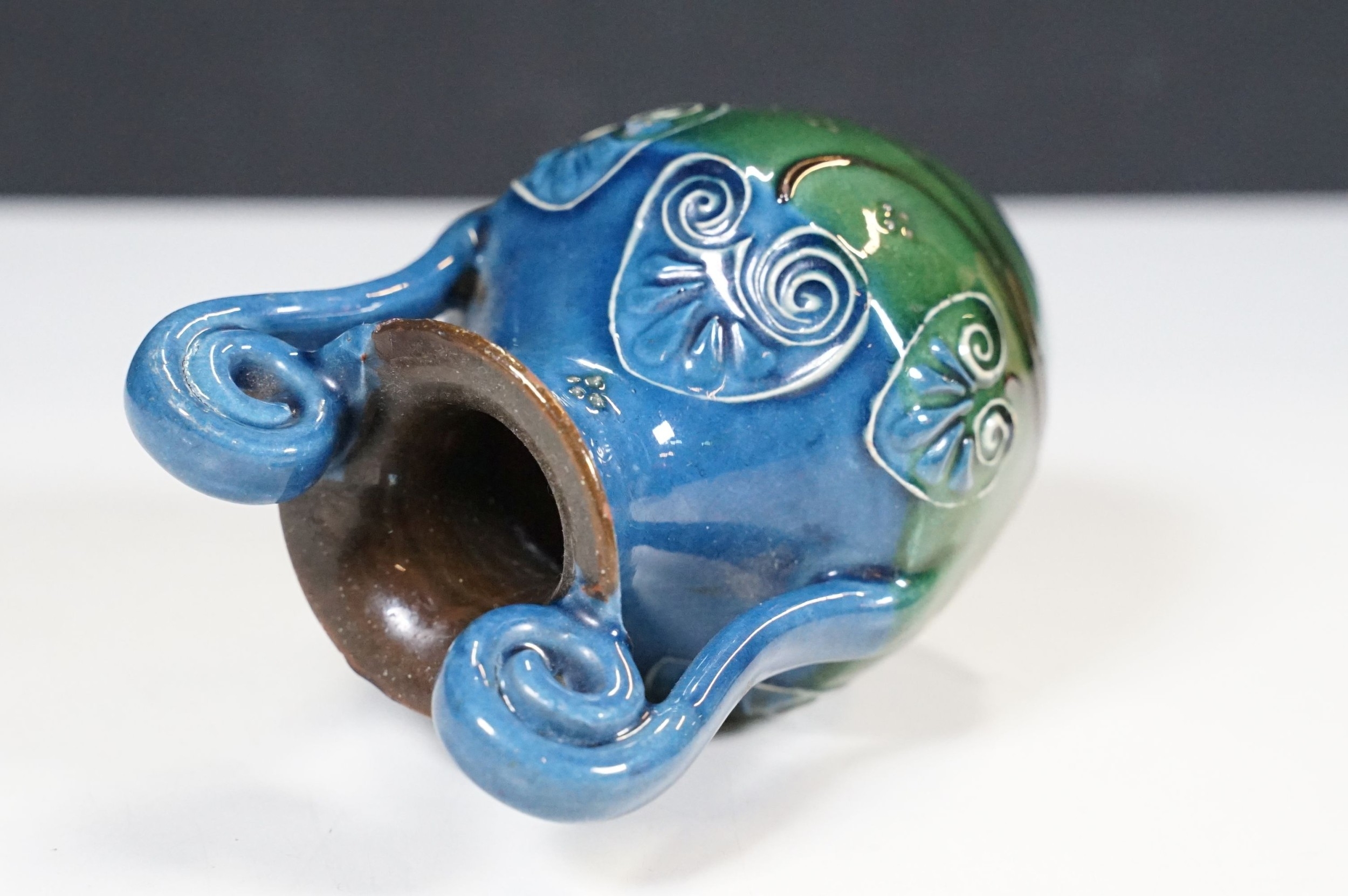 Selection of ceramics to include Barnstaple millenary 1930 mug, Baron Thanksgiving cup 1929, Victorian Branham Art Nouveau small vase, Exeter pot, etc, with impressed marks to bases (8)