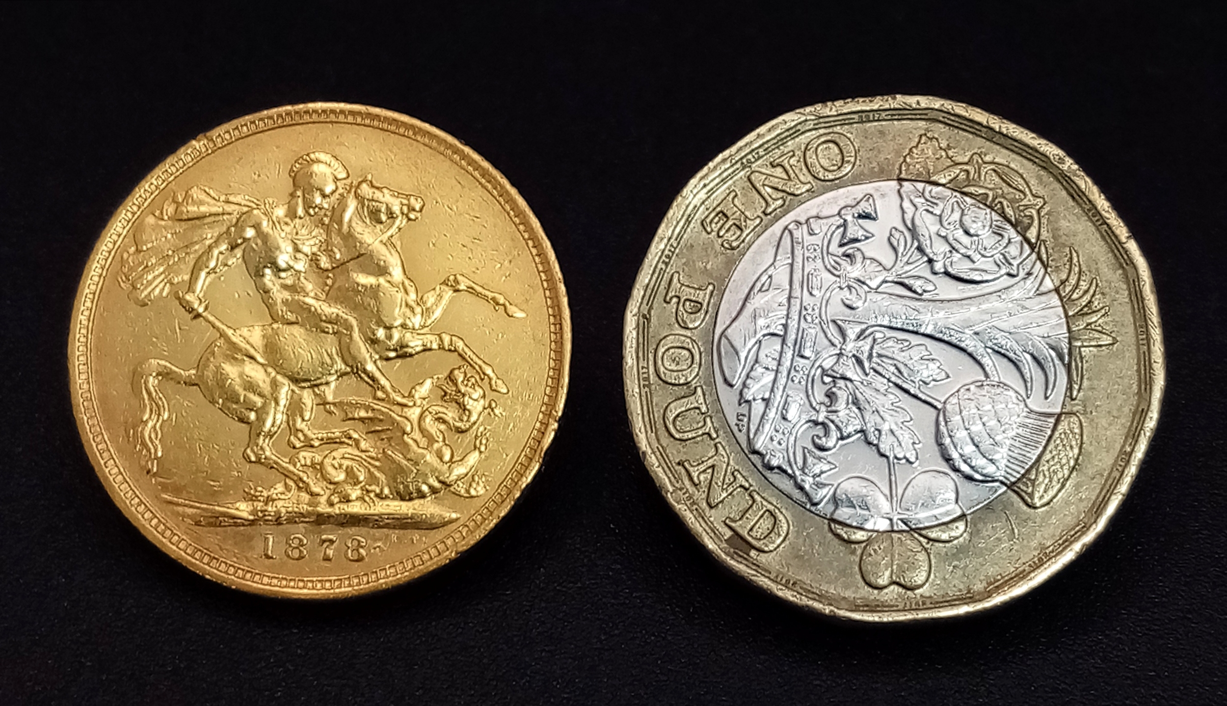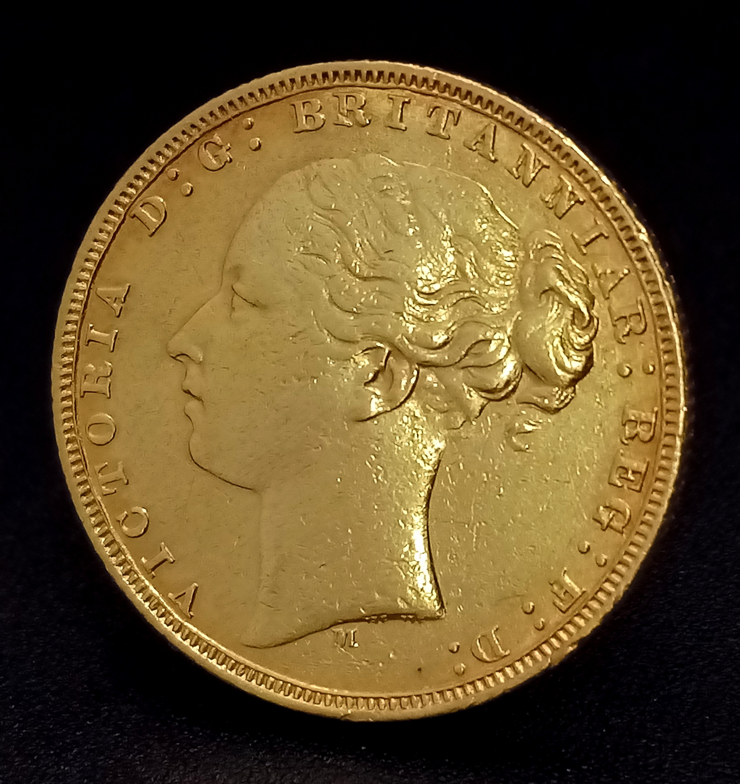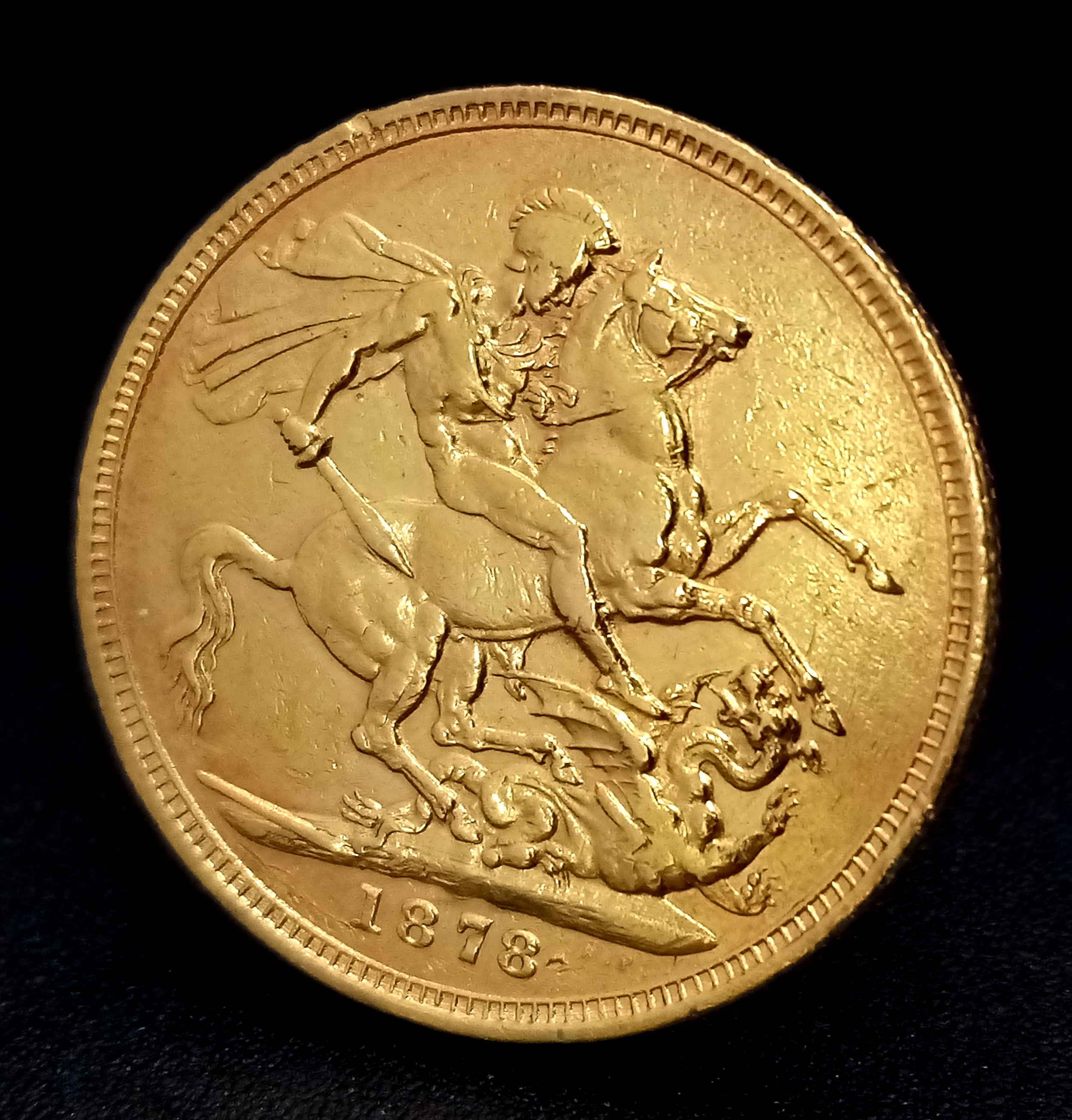 AN 1878 DATED FULL SOVEREIGN COIN WITH THE YOUNG VICTORIA HEAD .