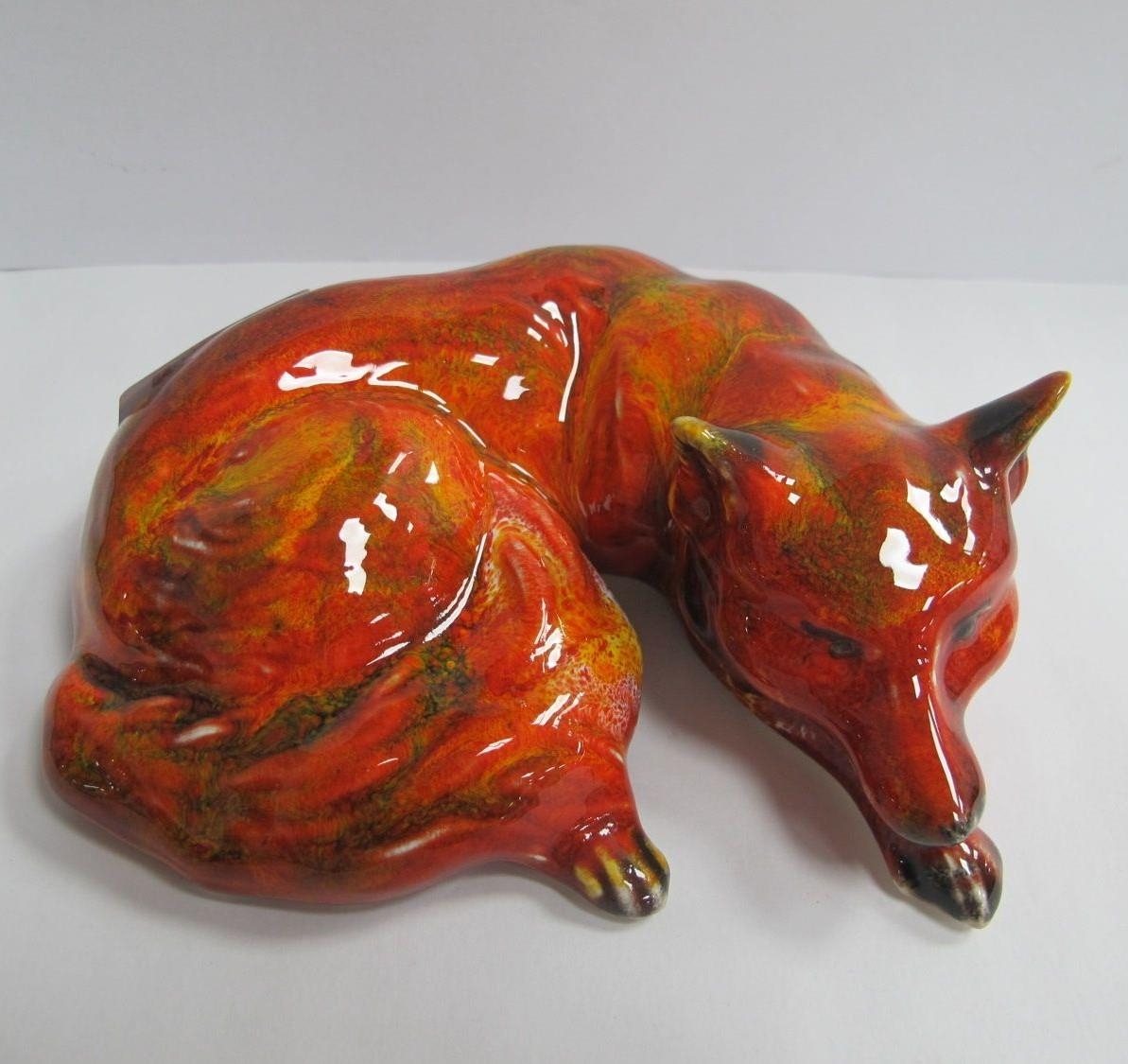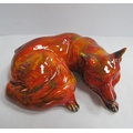 An Anita Harris Curled Fox Figure, gold signed, 13cm wide.