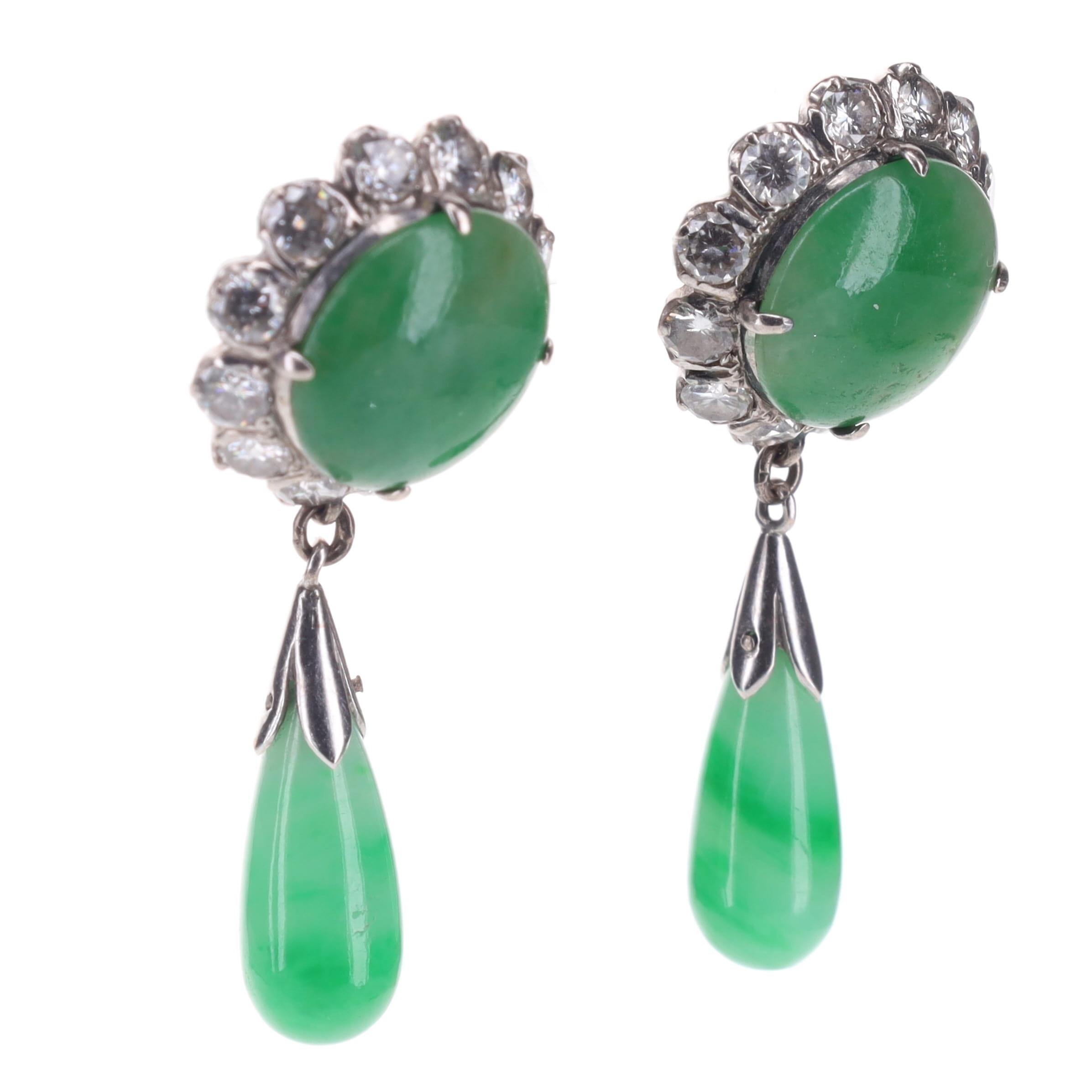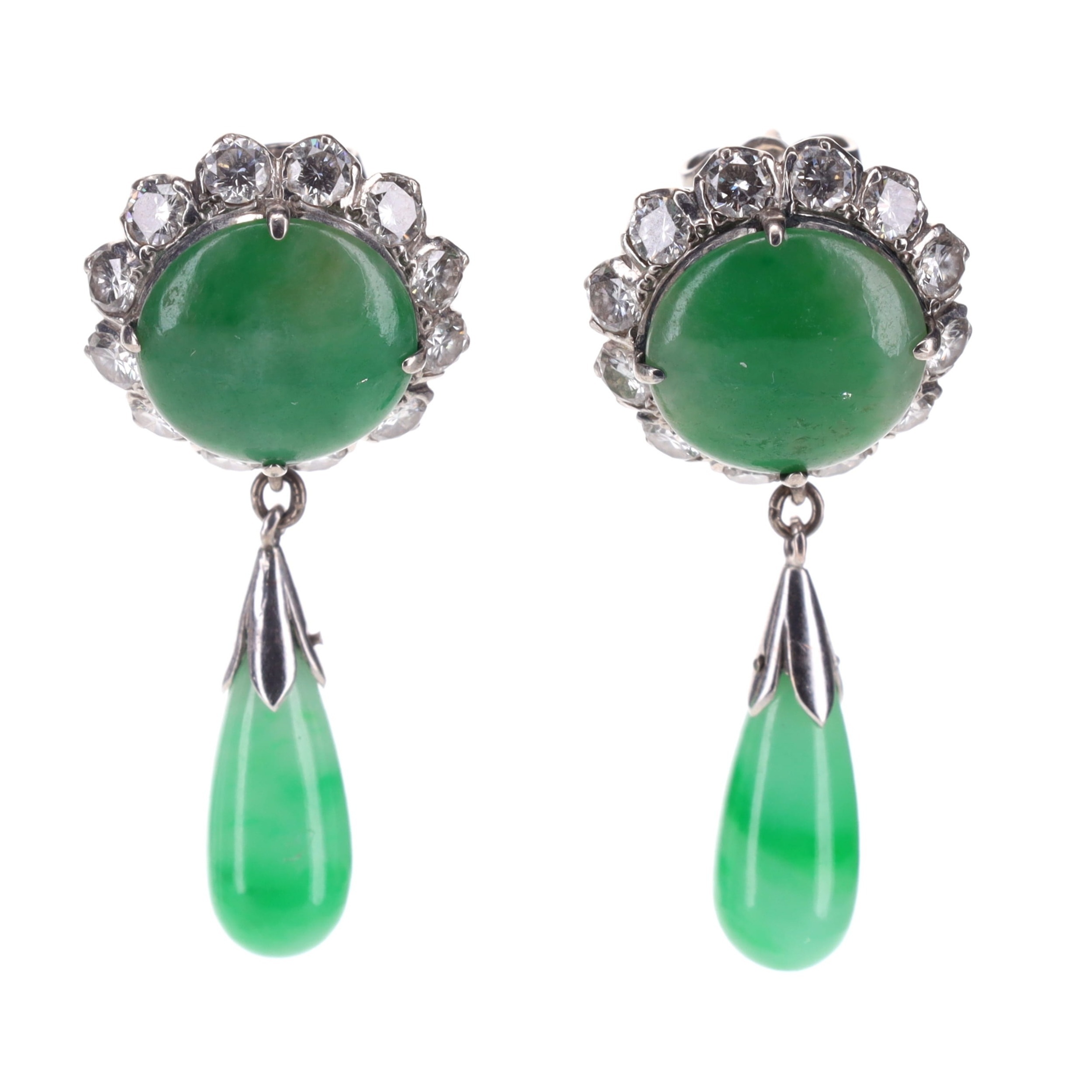 Jade Jadeite and Diamond Gold Drop Earrings