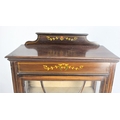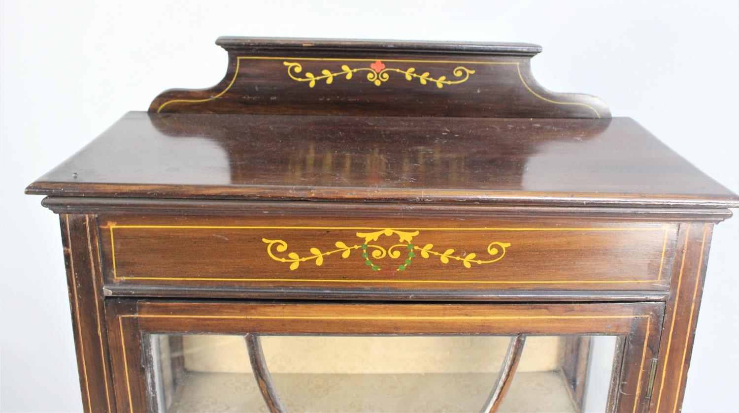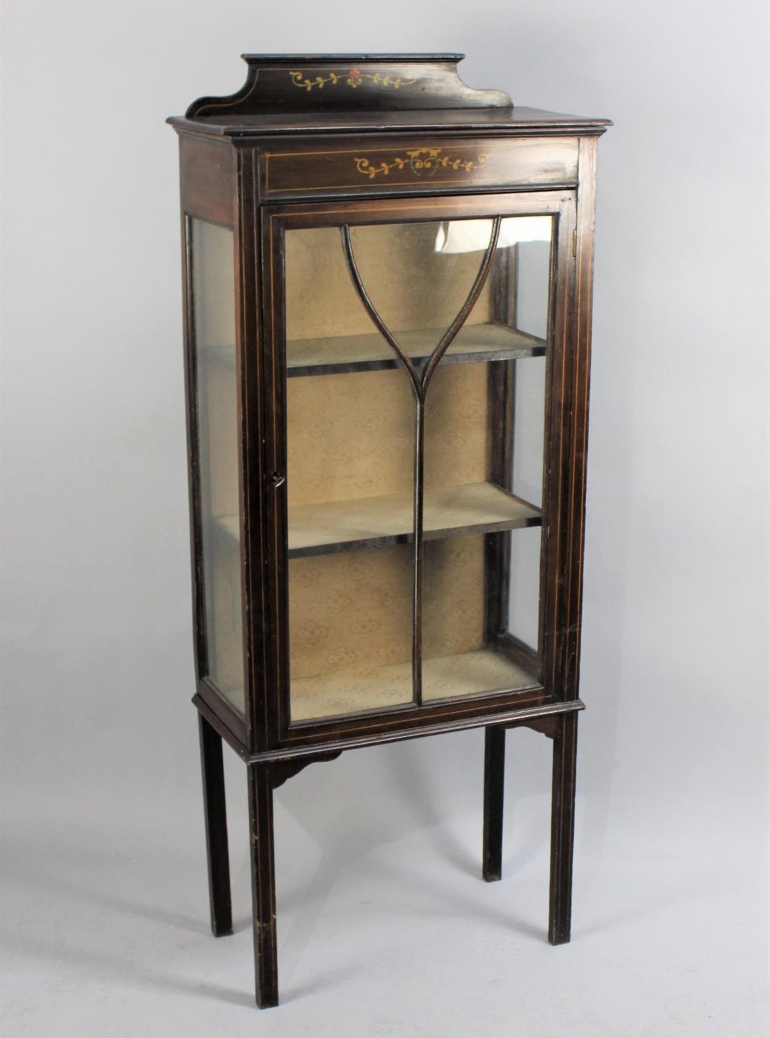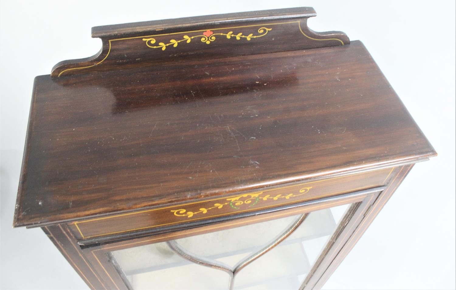 An Edwardian Glazed Display Cabinet with Two Inner Shelves, Painted Stringing and Floral Swag, 60cms Wide