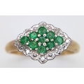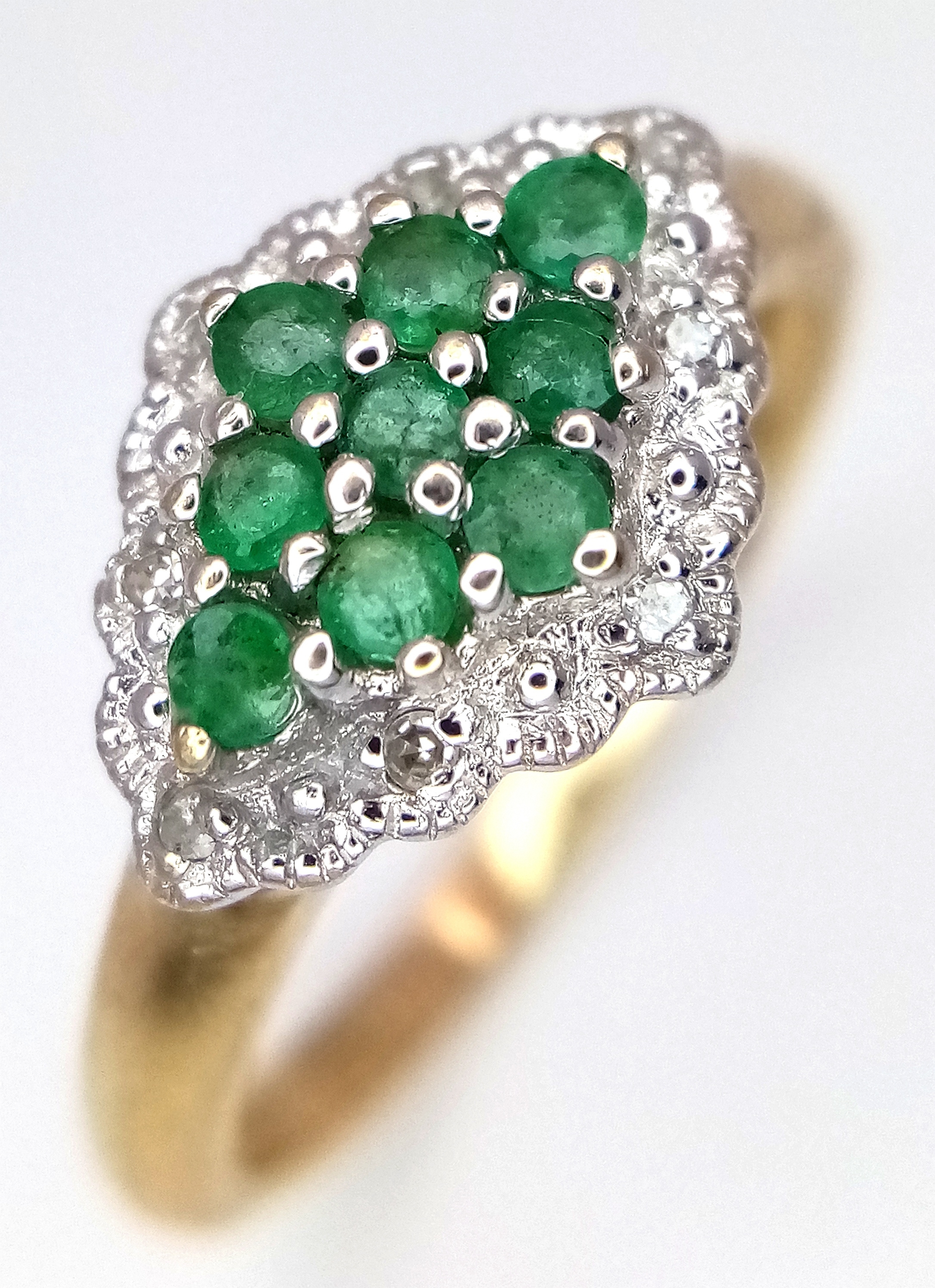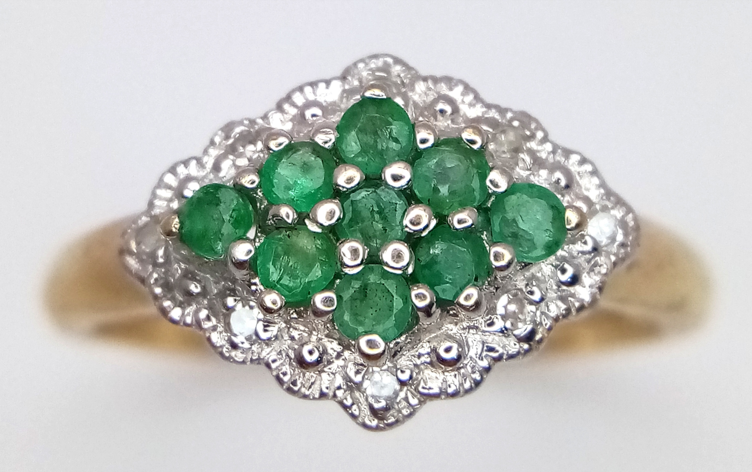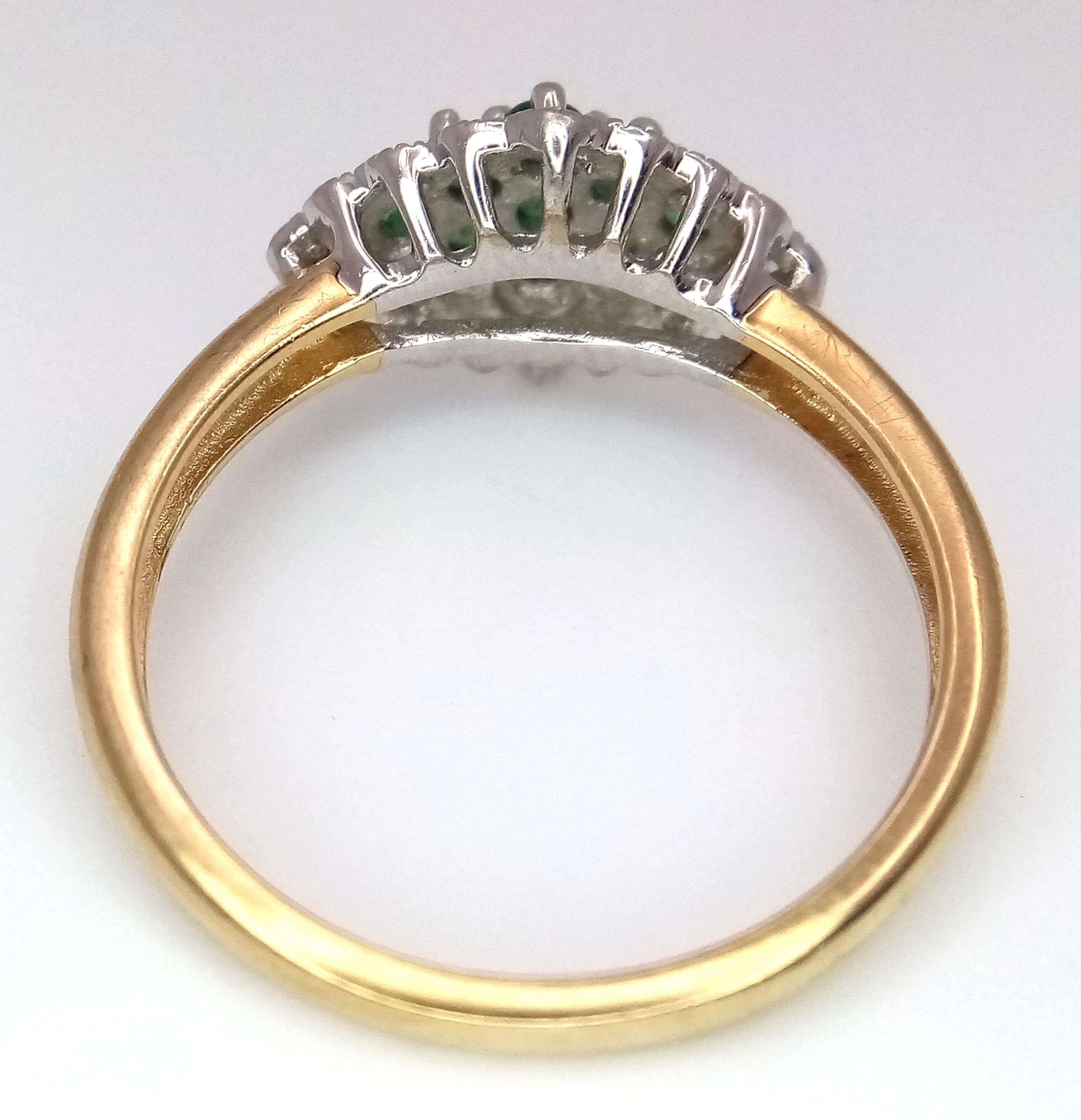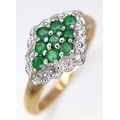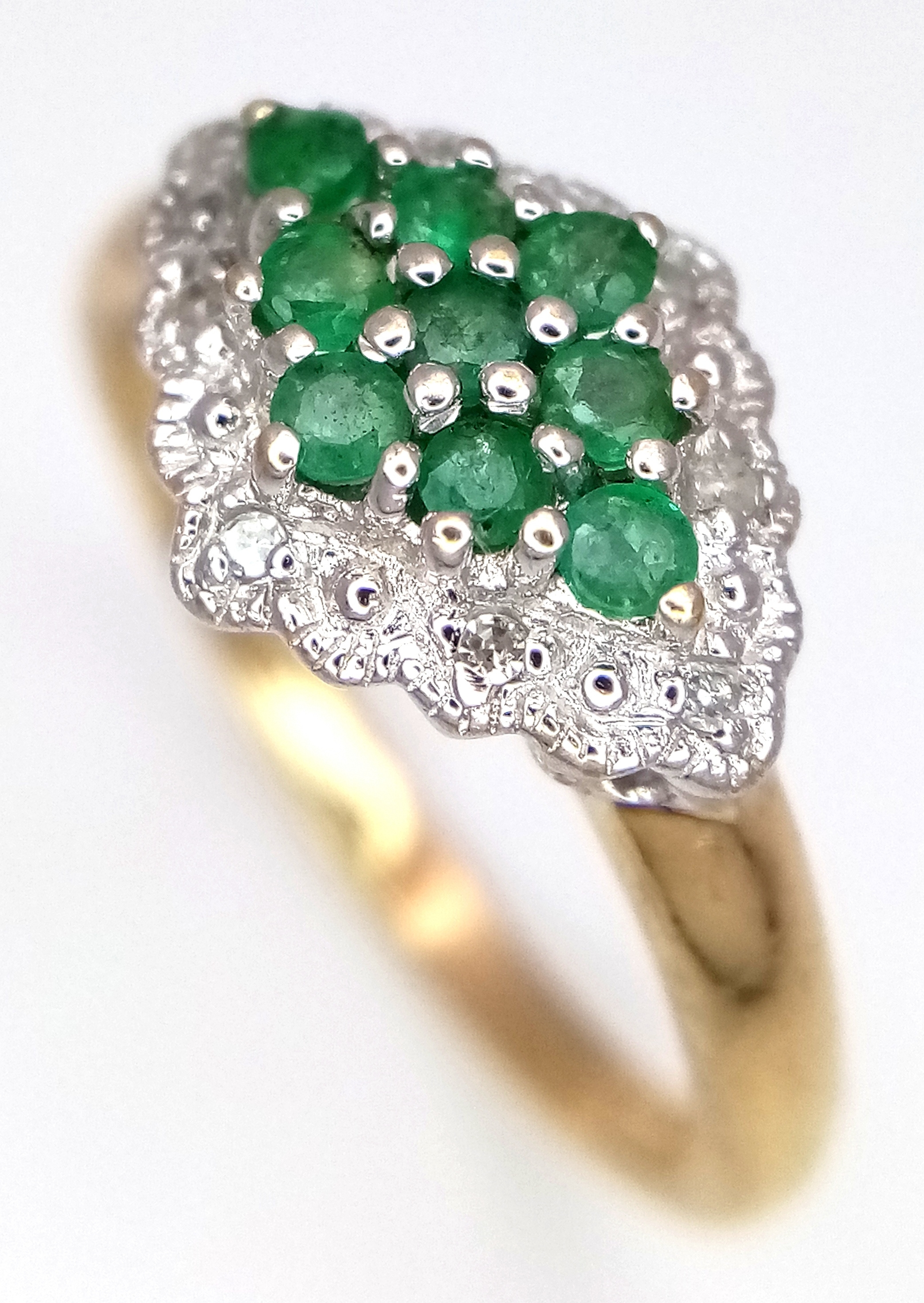 A 9K YELLOW GOLD DIAMOND AND EMERALD RING. TOTAL WEIGHT 2.7G. SIZE P. SC 9084