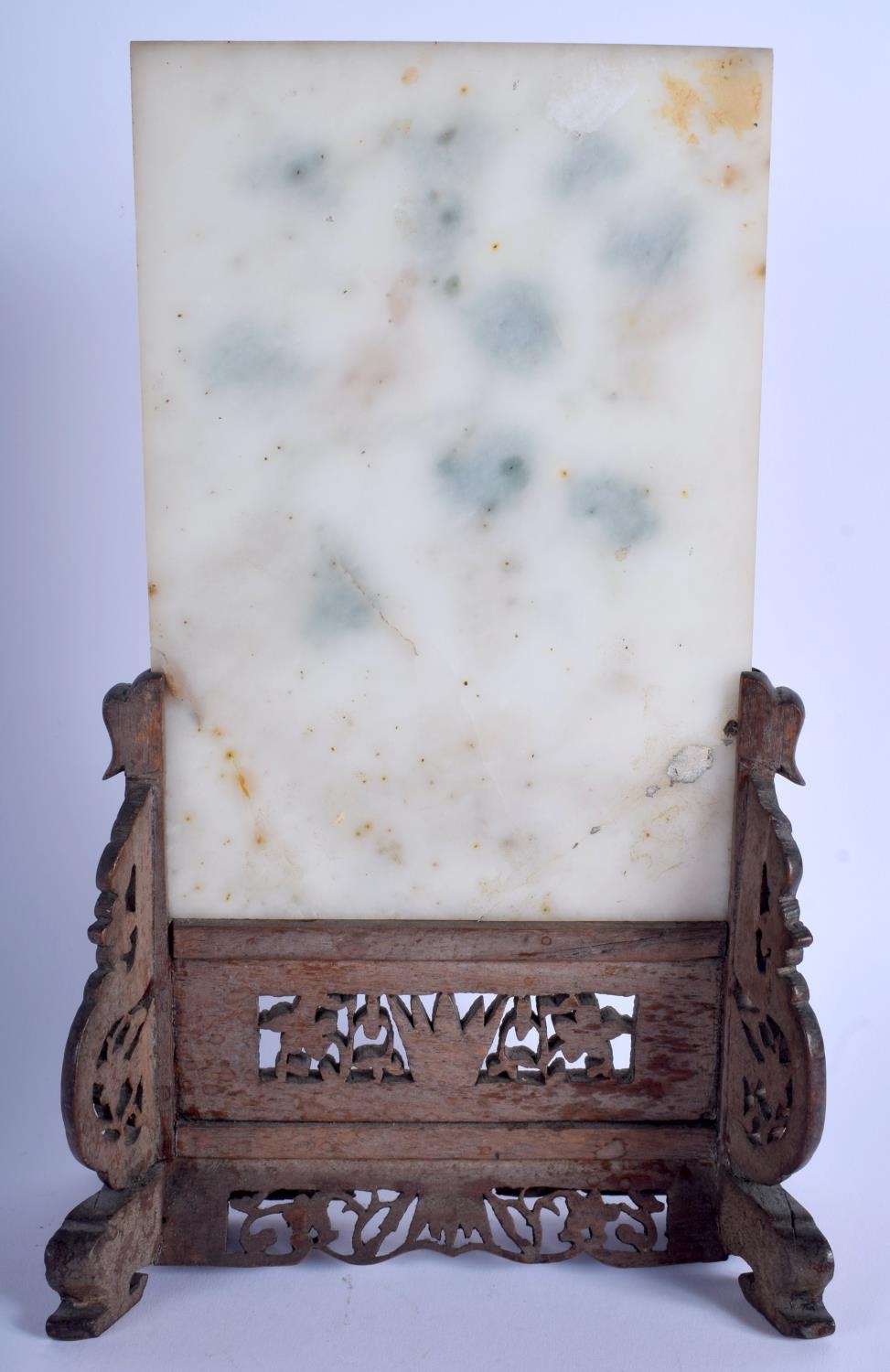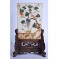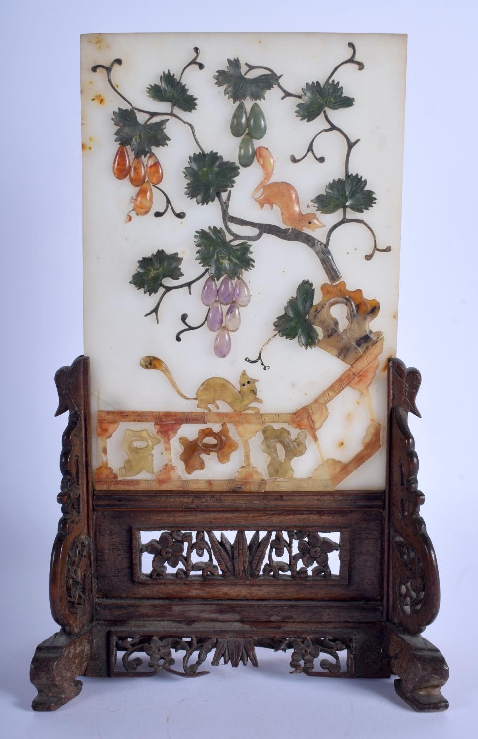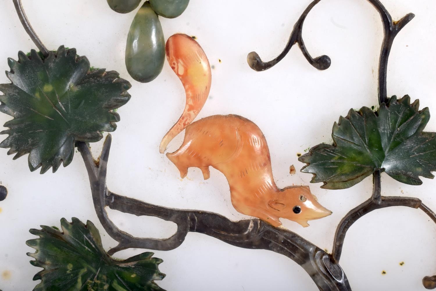 A 19TH CENTURY CHINESE CARVED JADE MIXED HARDSTONE SCHOLARS STAND Qing, depicting a roaming squirrel. Jade 18 cm x 11 cm.