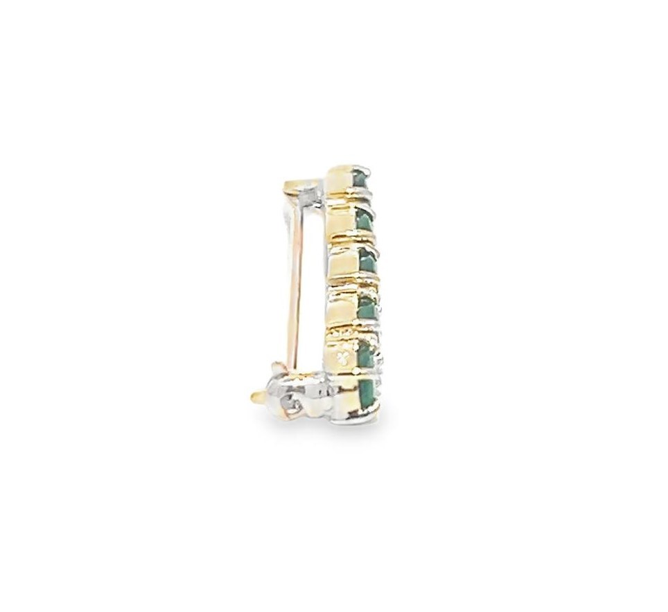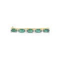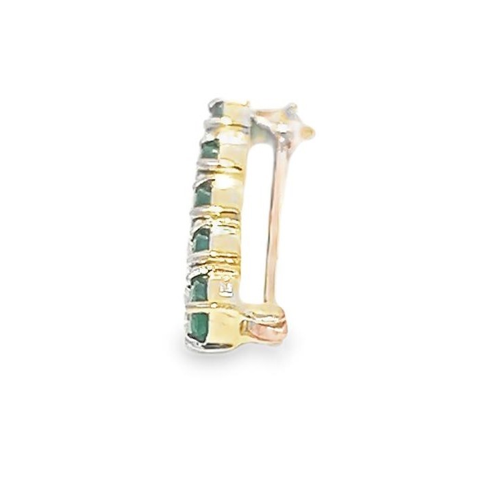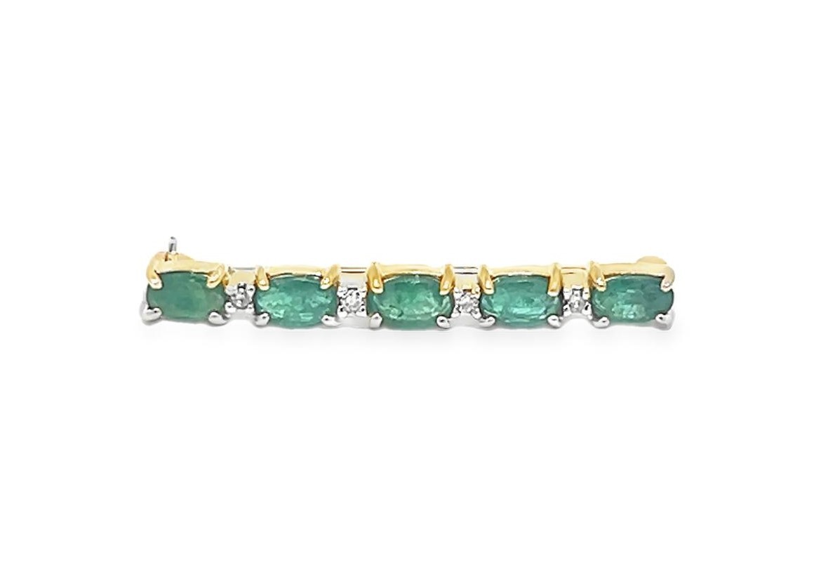An emerald and diamond bar brooch, stamped 14k. Length 32mm. 2.2g