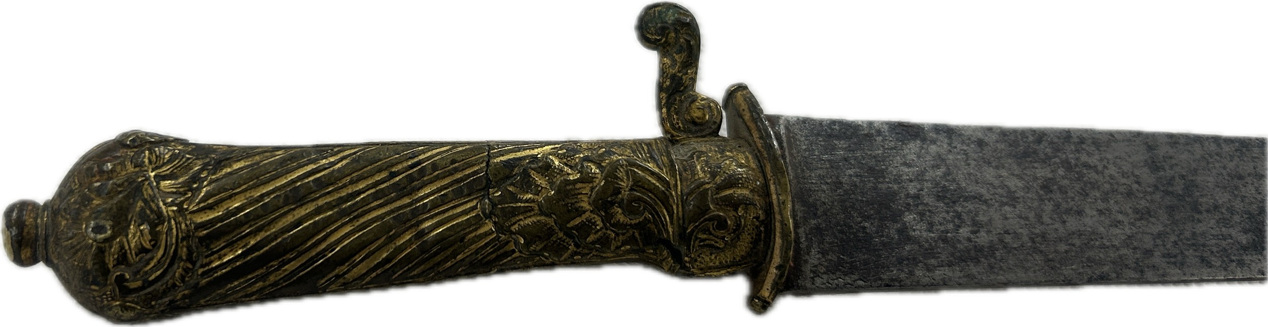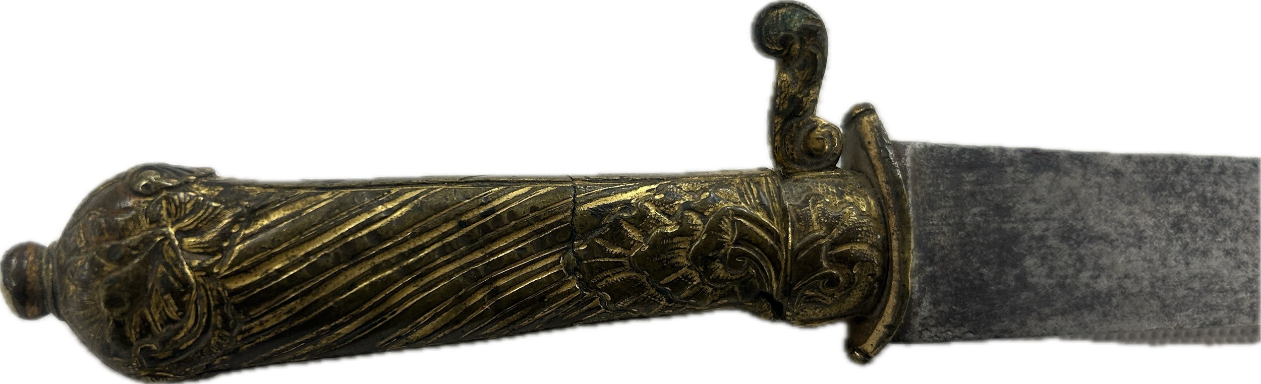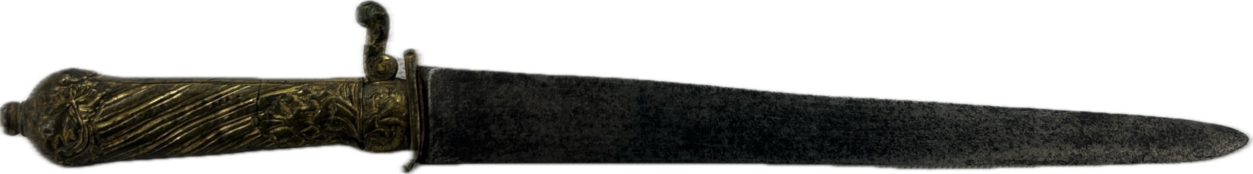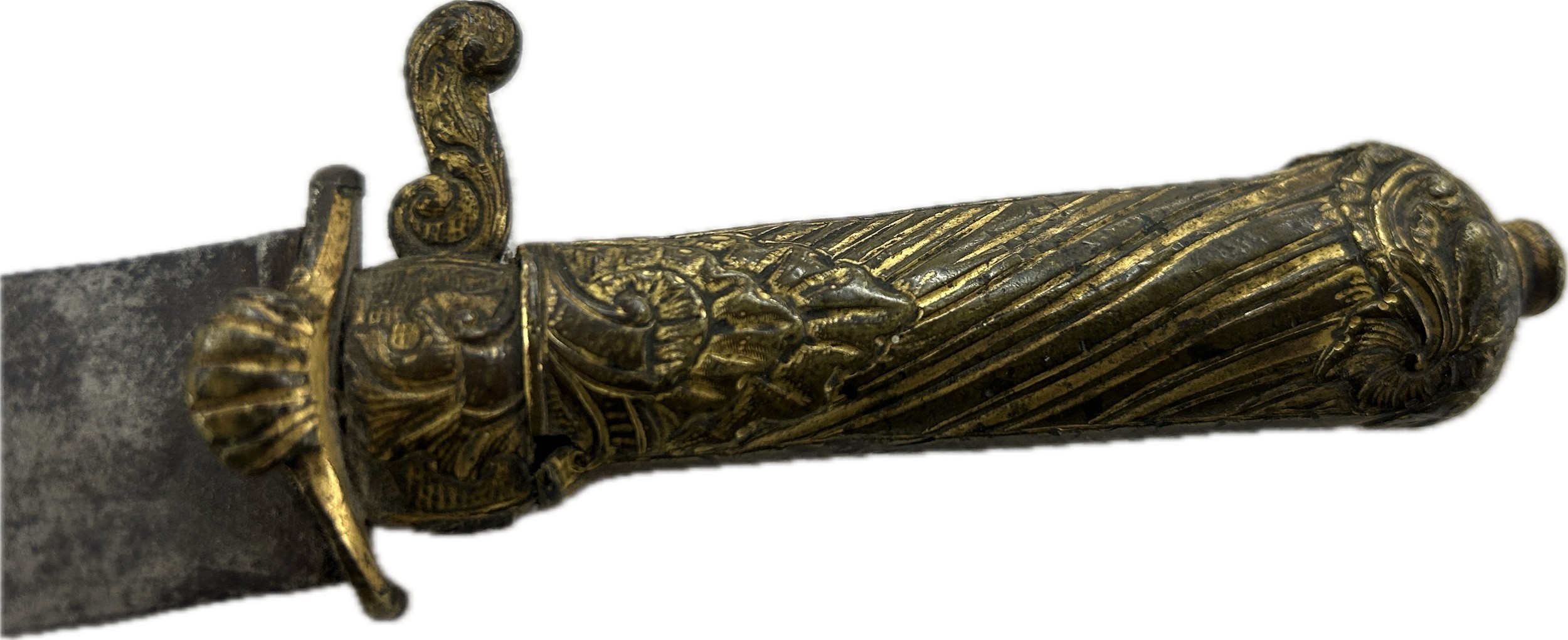 18th Century hunting knife, gilt brass hilt, overall length 37cm