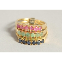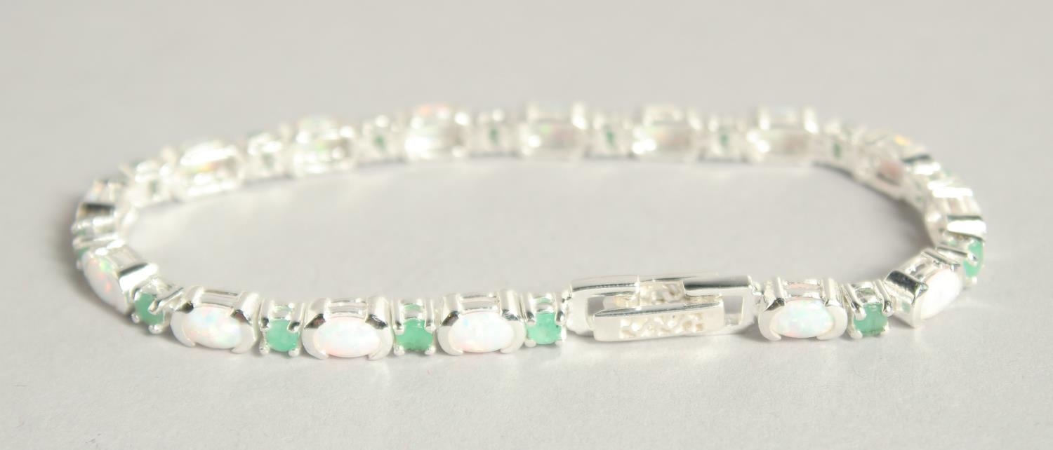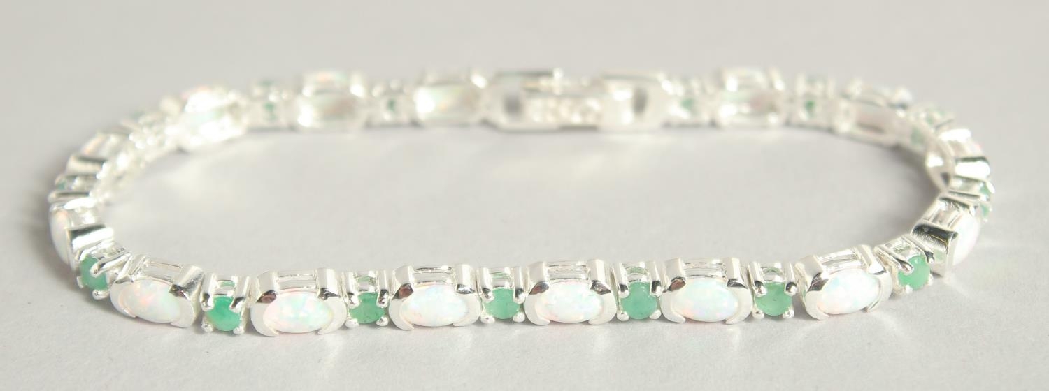 A SILVER OPAL AND EMERALD LINE BRACELET.