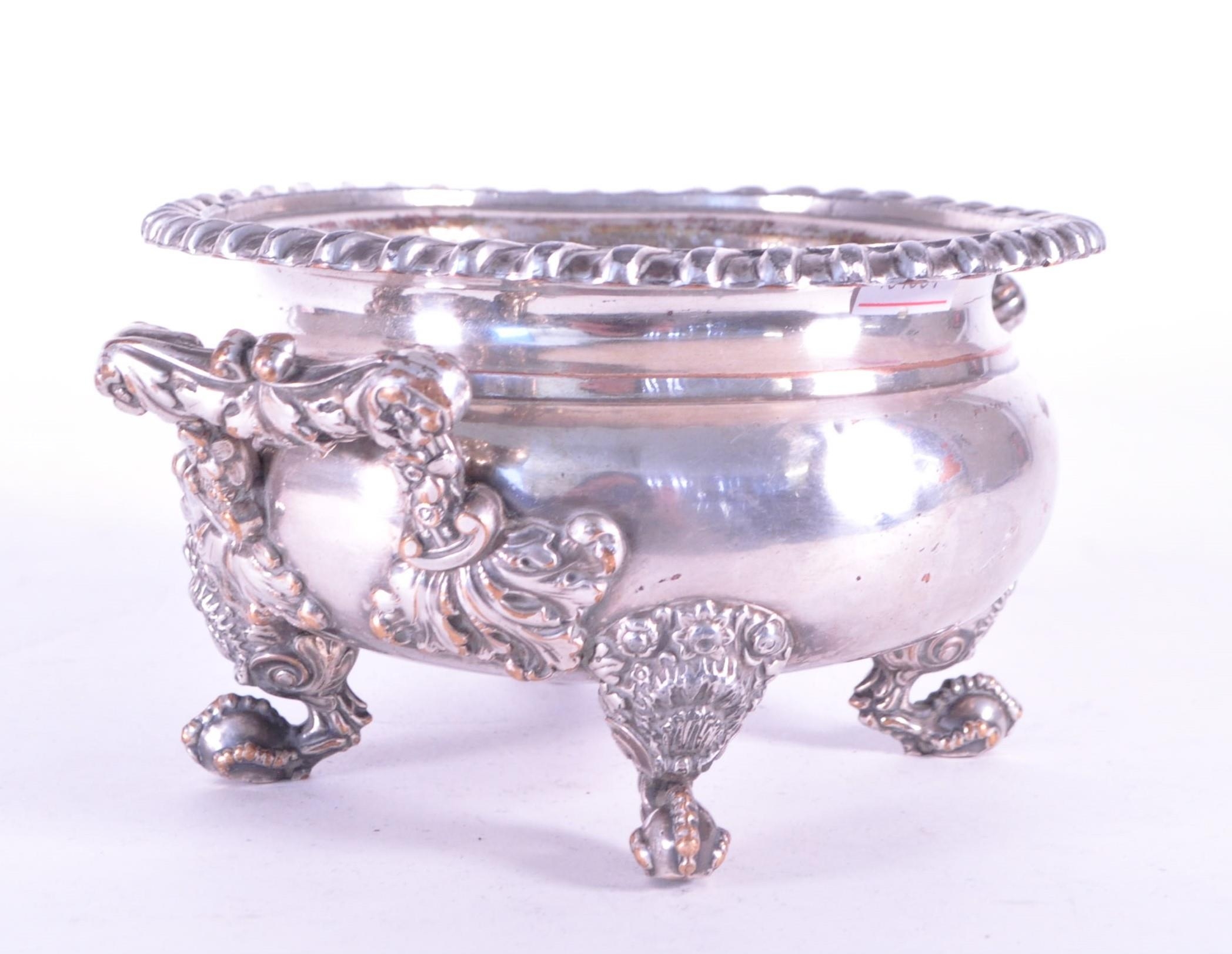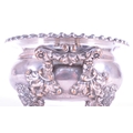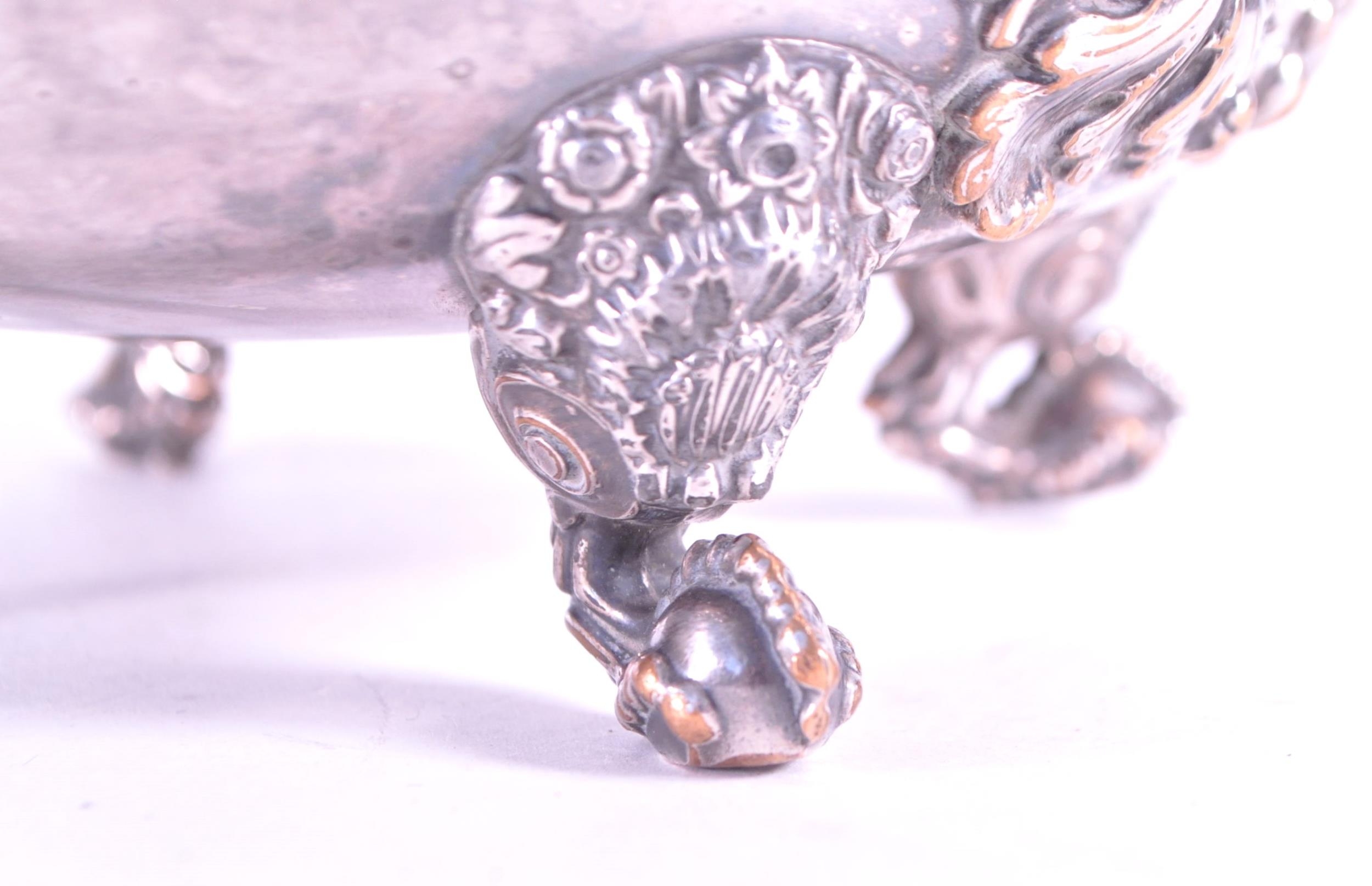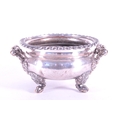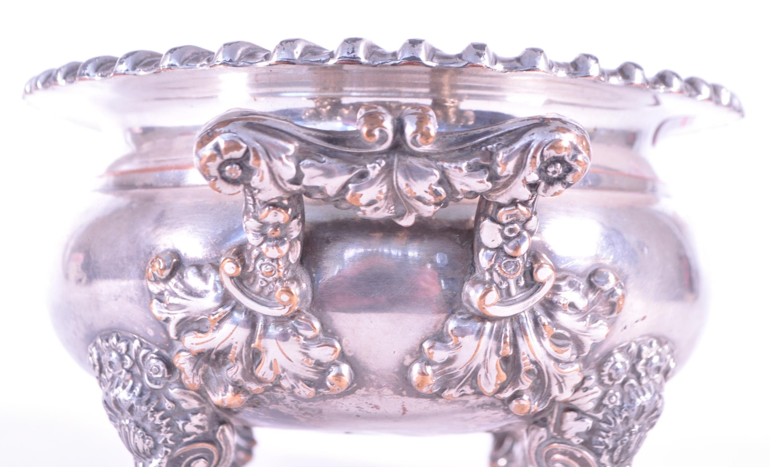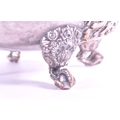 A vintage 20th century silver plate English censer bowl. Fanned rim with vine foliate Art Noveau style handles raised on ball and claw feet.