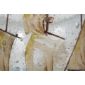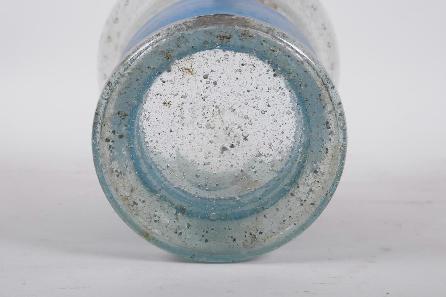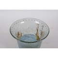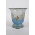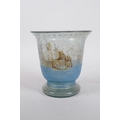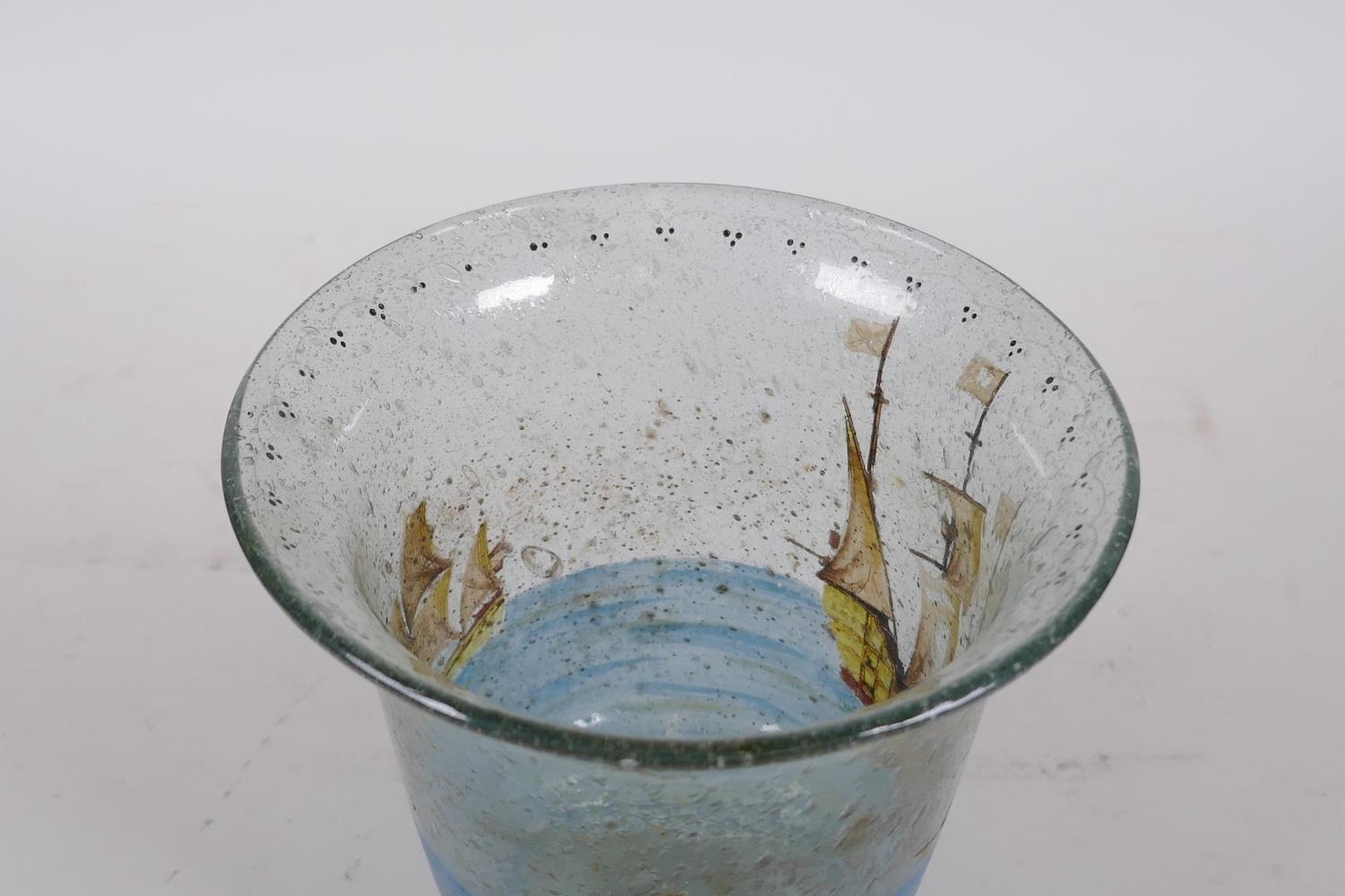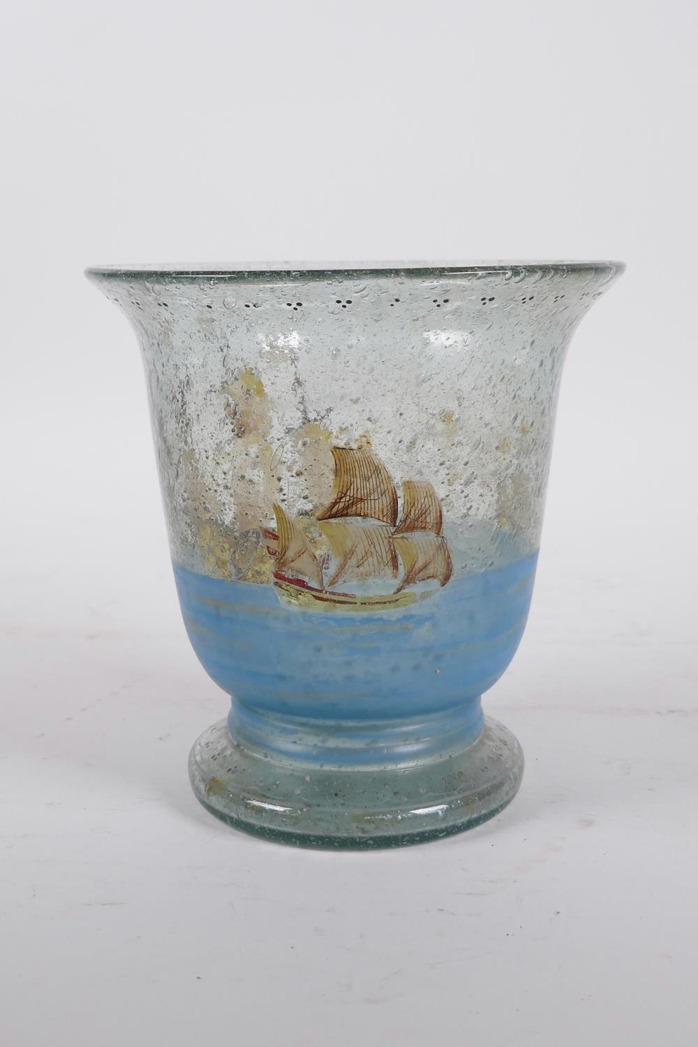 An early C20th American tavern glass vase decorated with the Santa Maria, Pinta and Nina, probably Pairpoint glass, 6" high