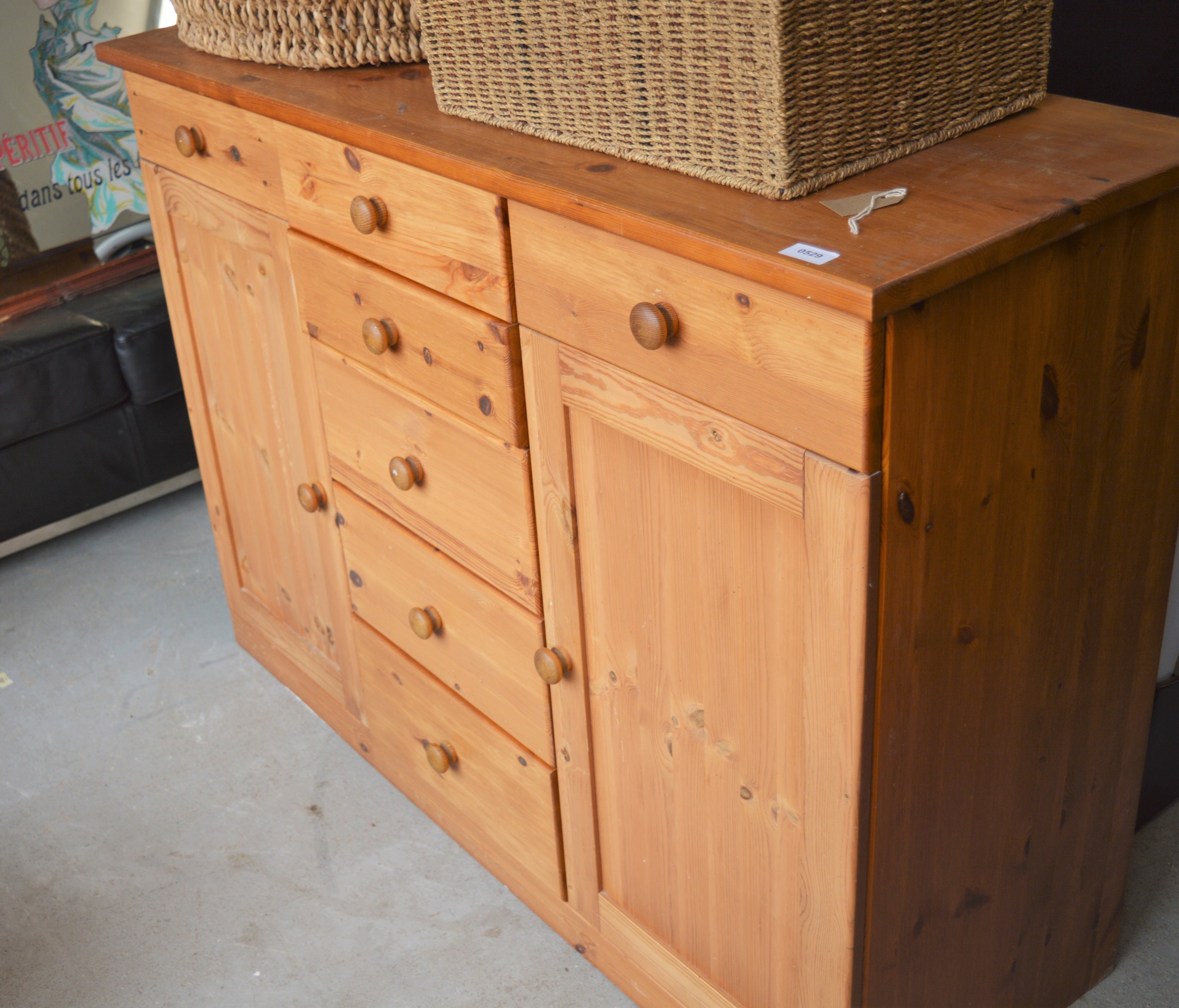 Pine Dresser having Five Central Drawers Flanked by a Drawer over a Cupboard on Each Side - 51" W x 17" D x 36" High