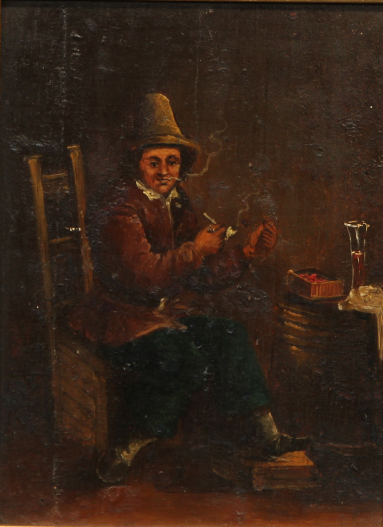 Dutch School (19th century)A Quiet Smokeoil on board, 15.5cm x 11.5cm