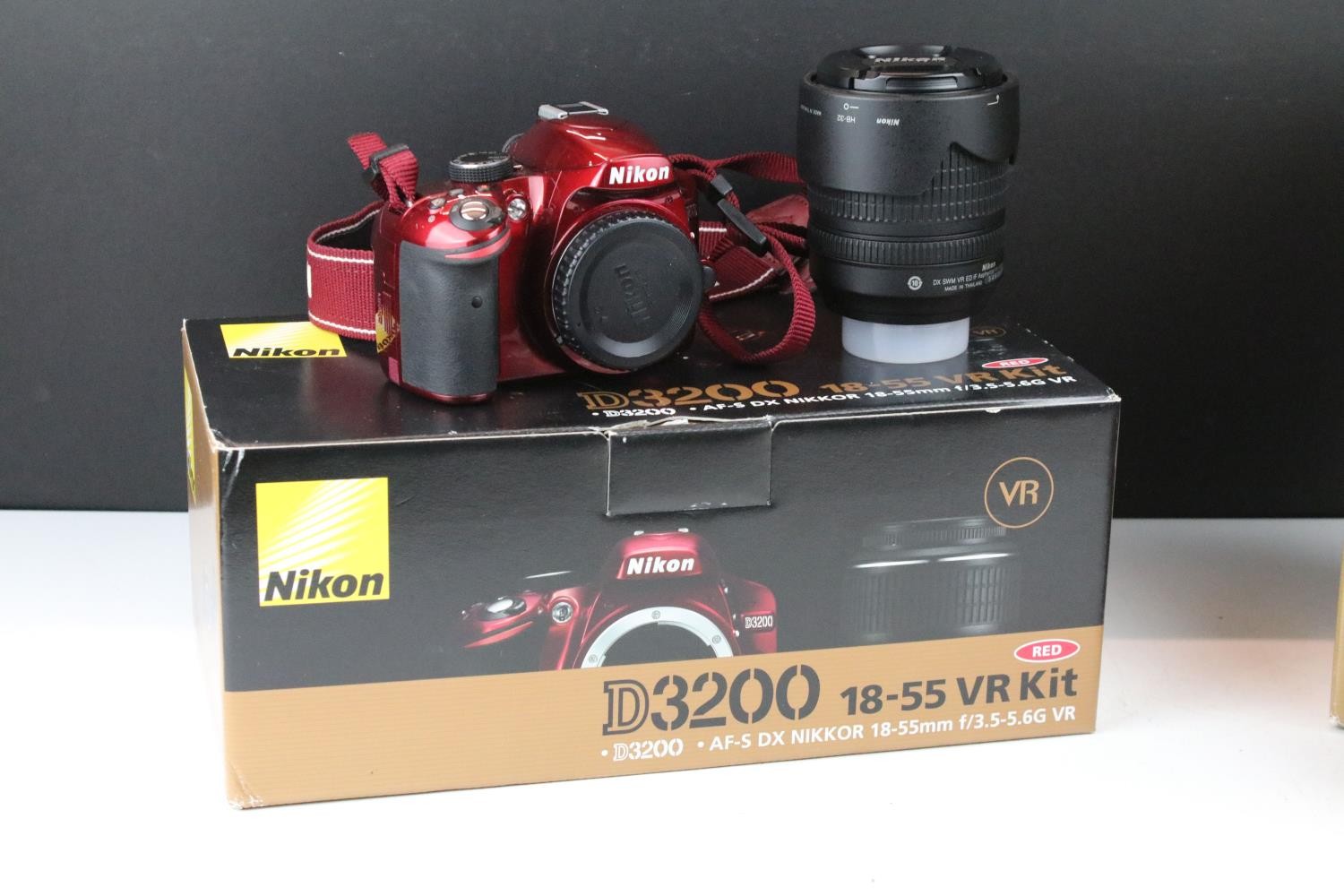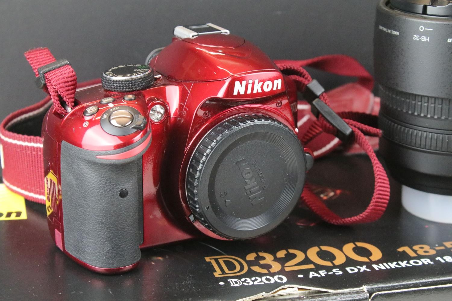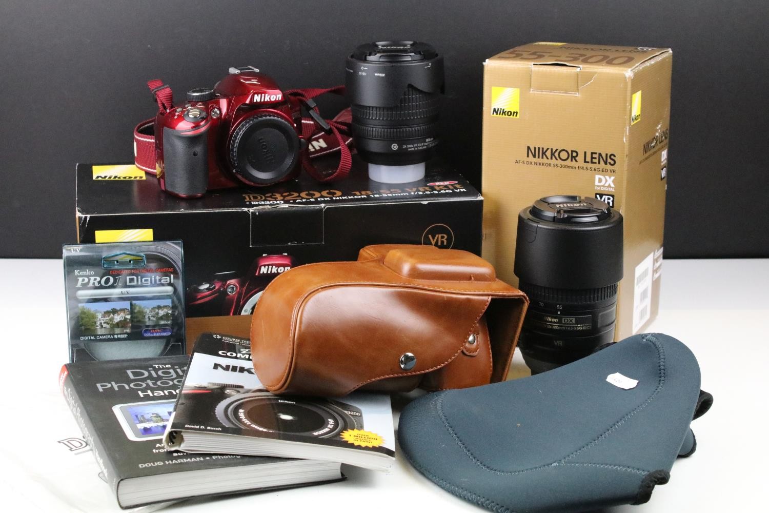 Nikon D3200 camera body together with a Nikon DX AF- S Nikkor 18-105mm lens, and a Nikon DX AF-S Nikkor 55-300mm lens, compelte with carry case, original box and accessories.