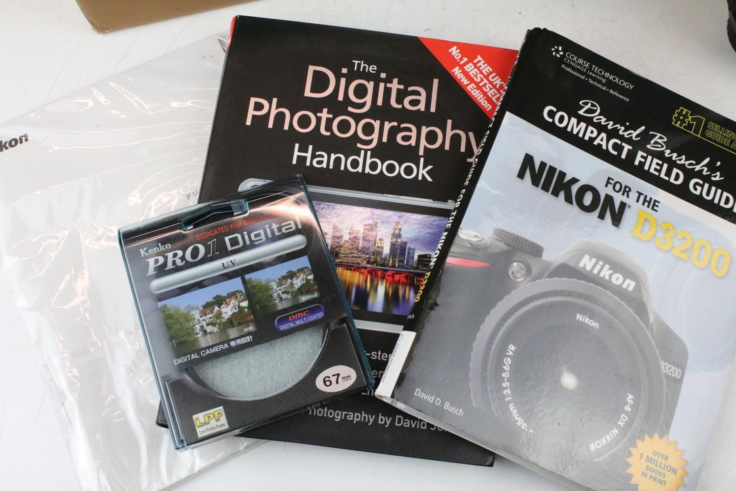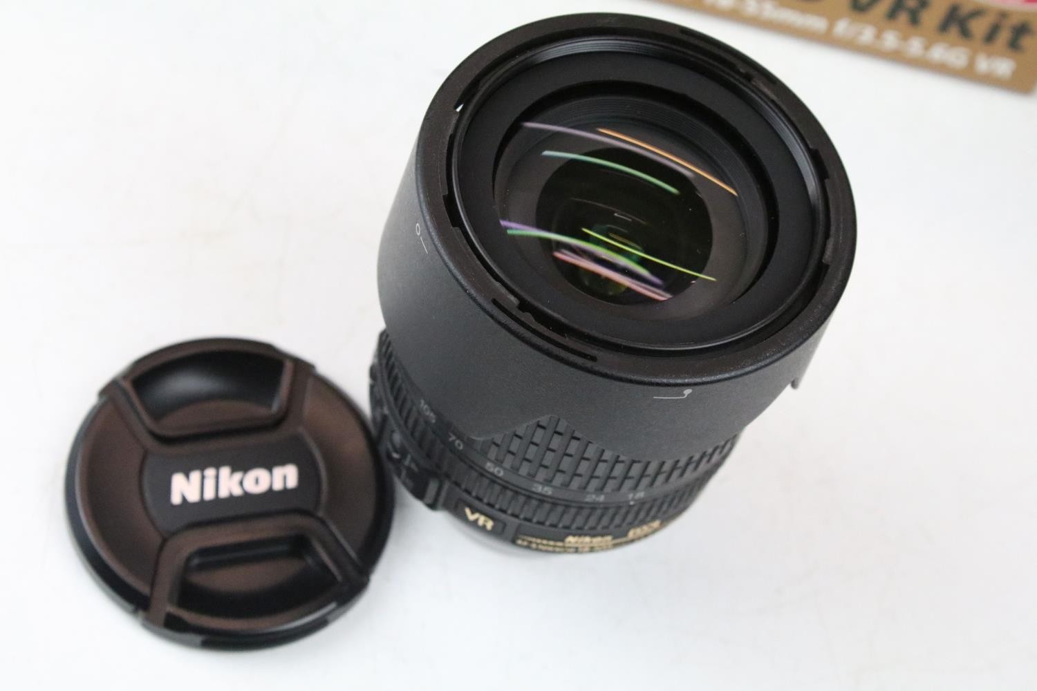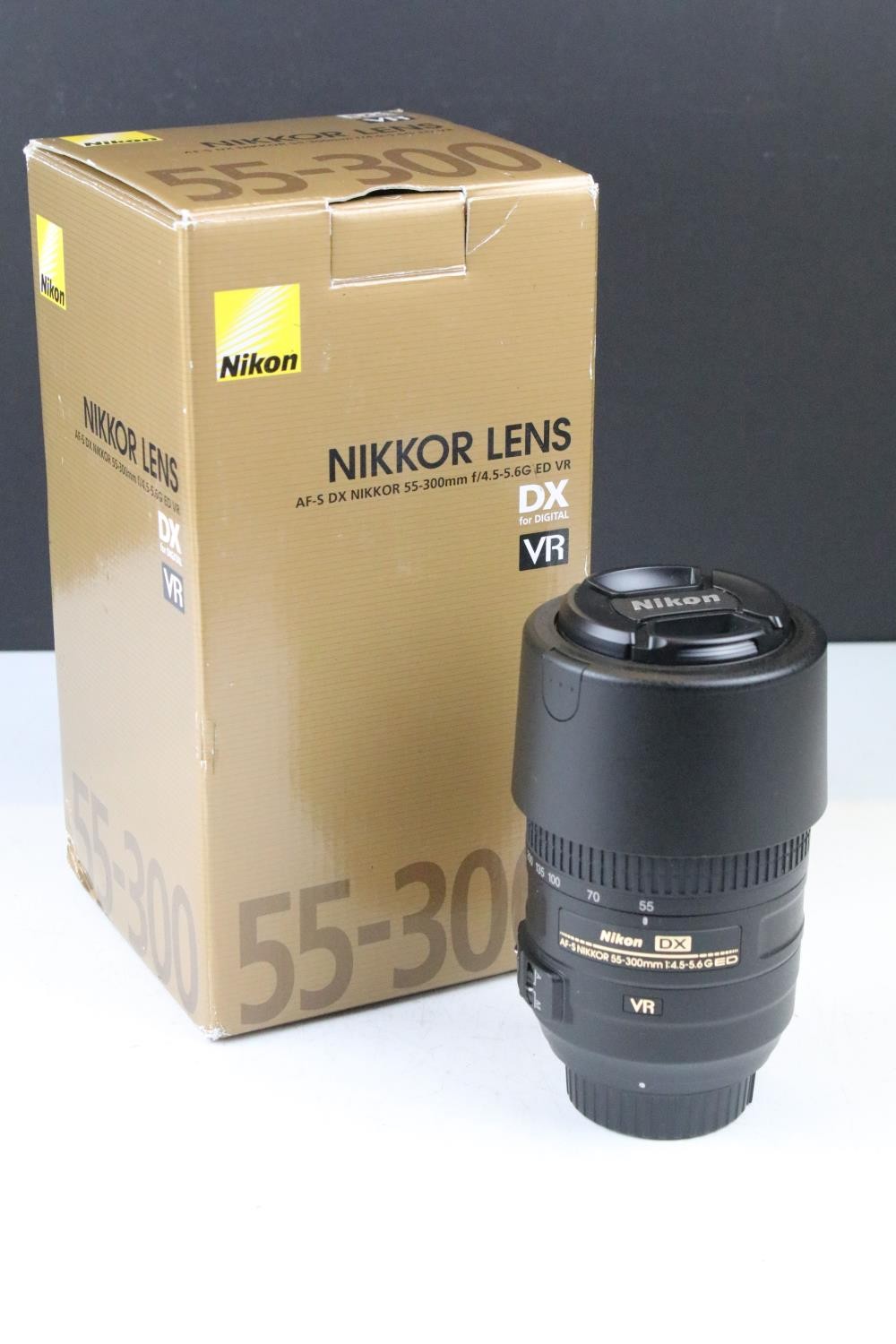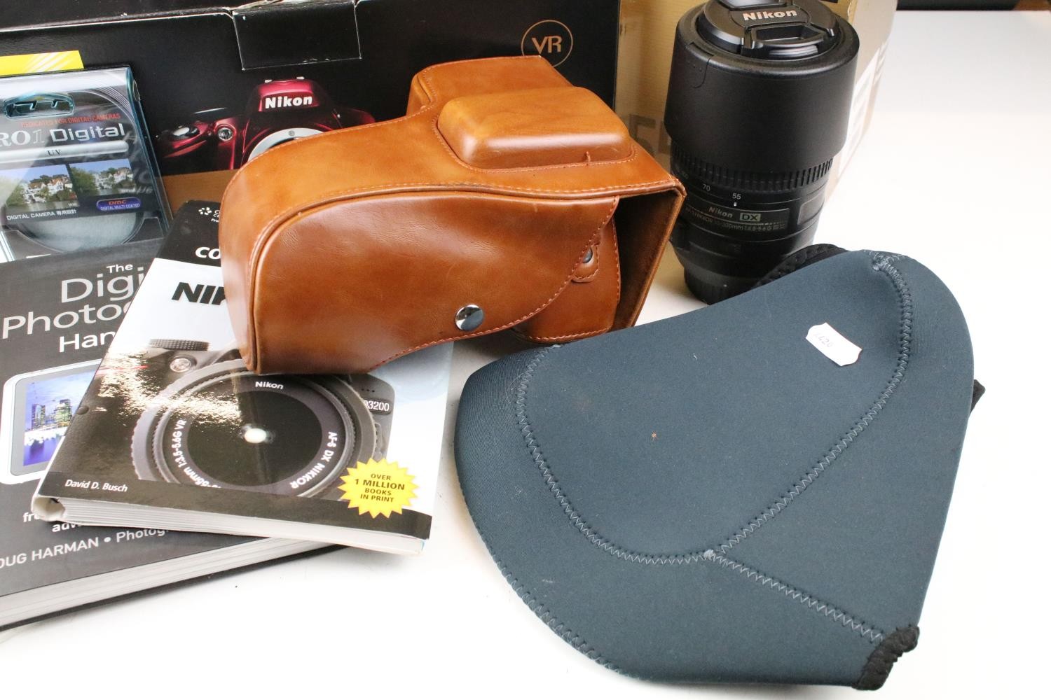 Nikon D3200 camera body together with a Nikon DX AF- S Nikkor 18-105mm lens, and a Nikon DX AF-S Nikkor 55-300mm lens, compelte with carry case, original box and accessories.