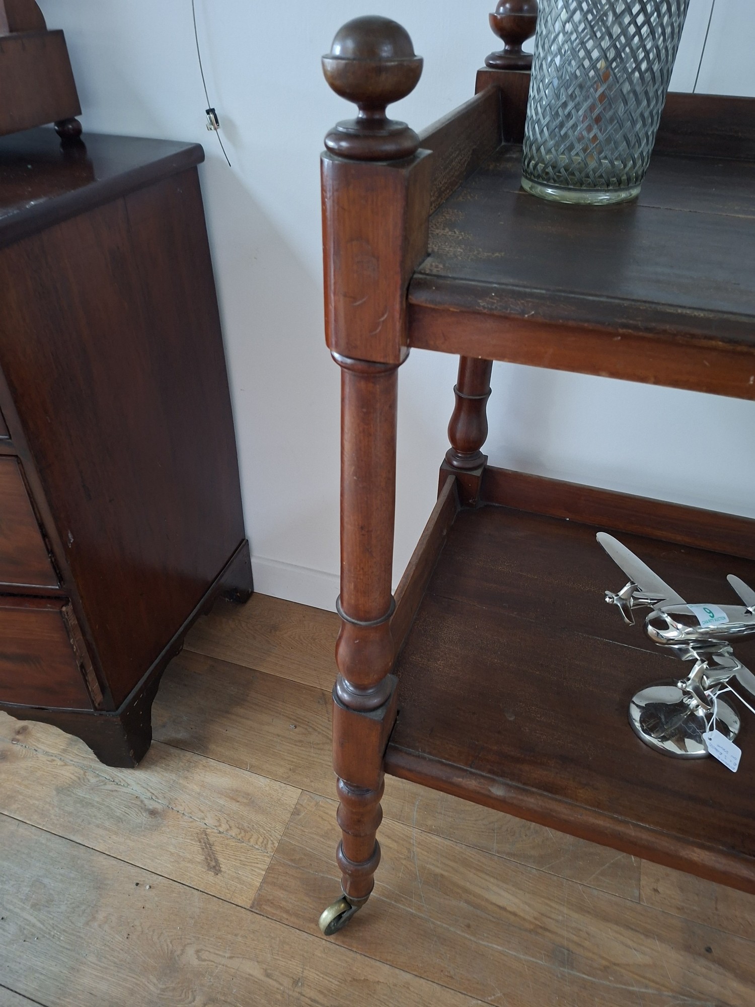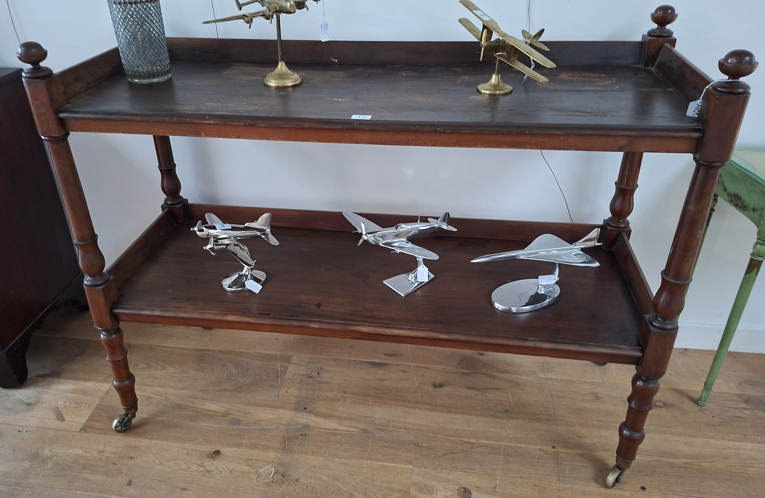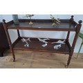 Vintage 2 tier buffet trolley with brass wheels 135cm x 50cm x 105cm approx.