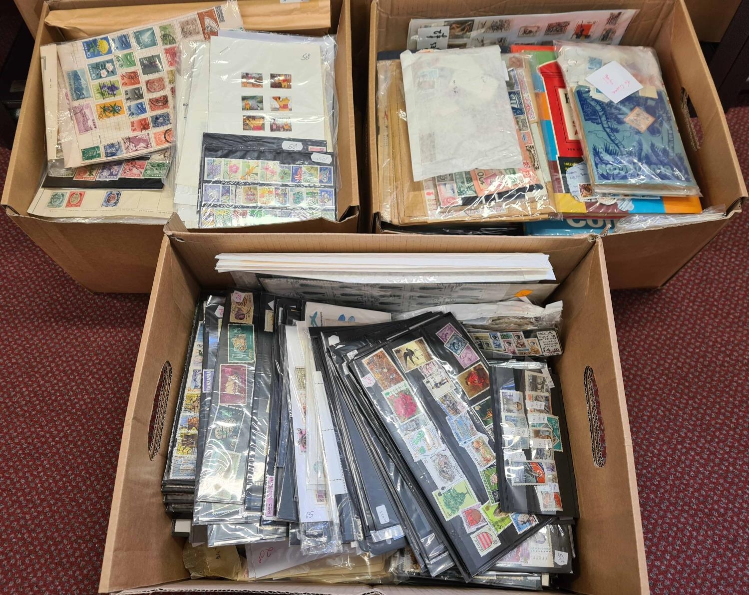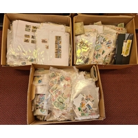 WORLDWIDE ACCUMULATION; Three large archive boxes of ex dealer's stock of stamps in priced packets & stockbooks ready for retail. Mint & used from a range of countries & periods. (Qty)