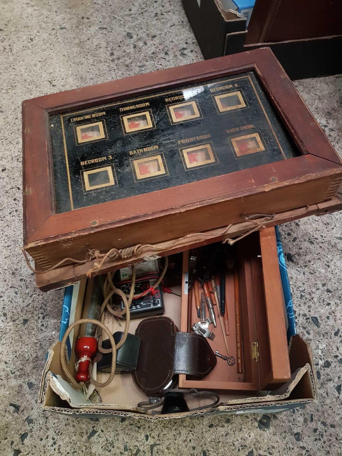 CARTON WITH A VINTAGE BELL BOARD, VOLT METER, MISC BRIC-A-BRAC