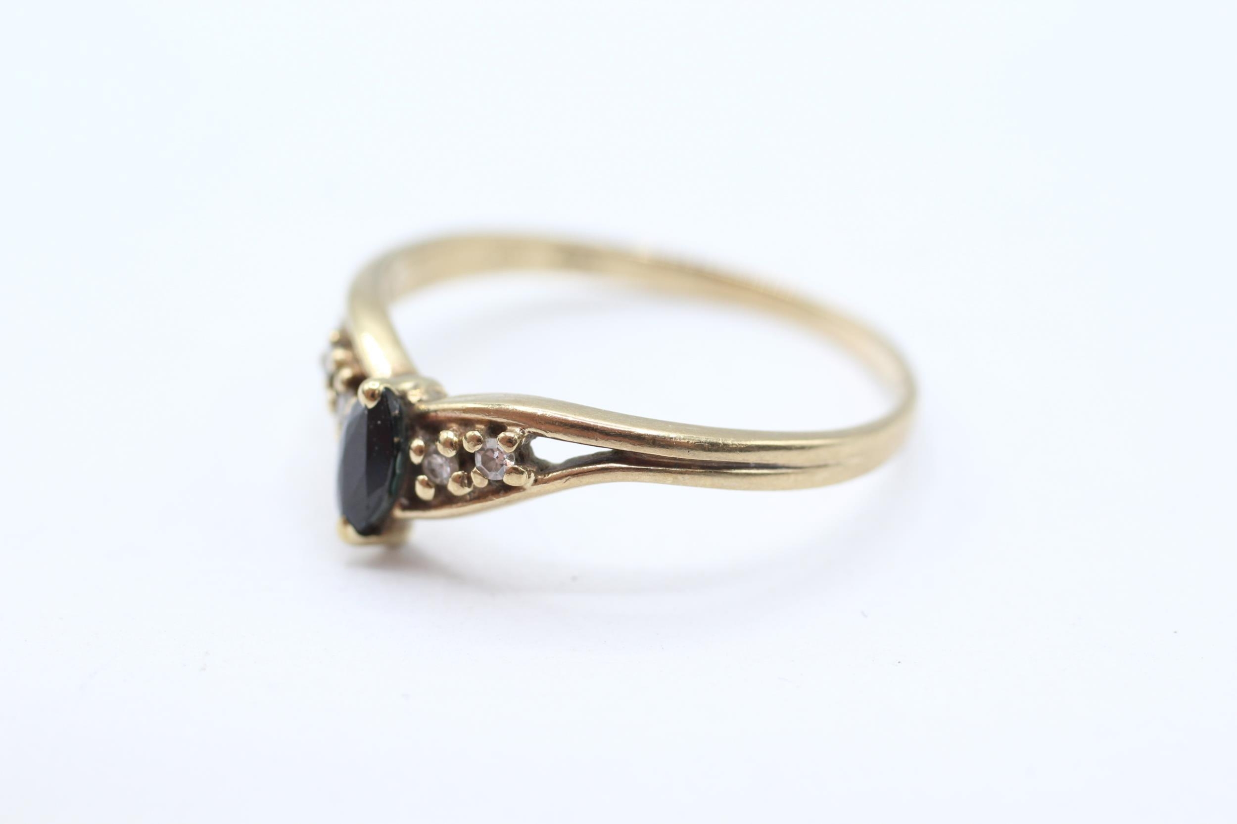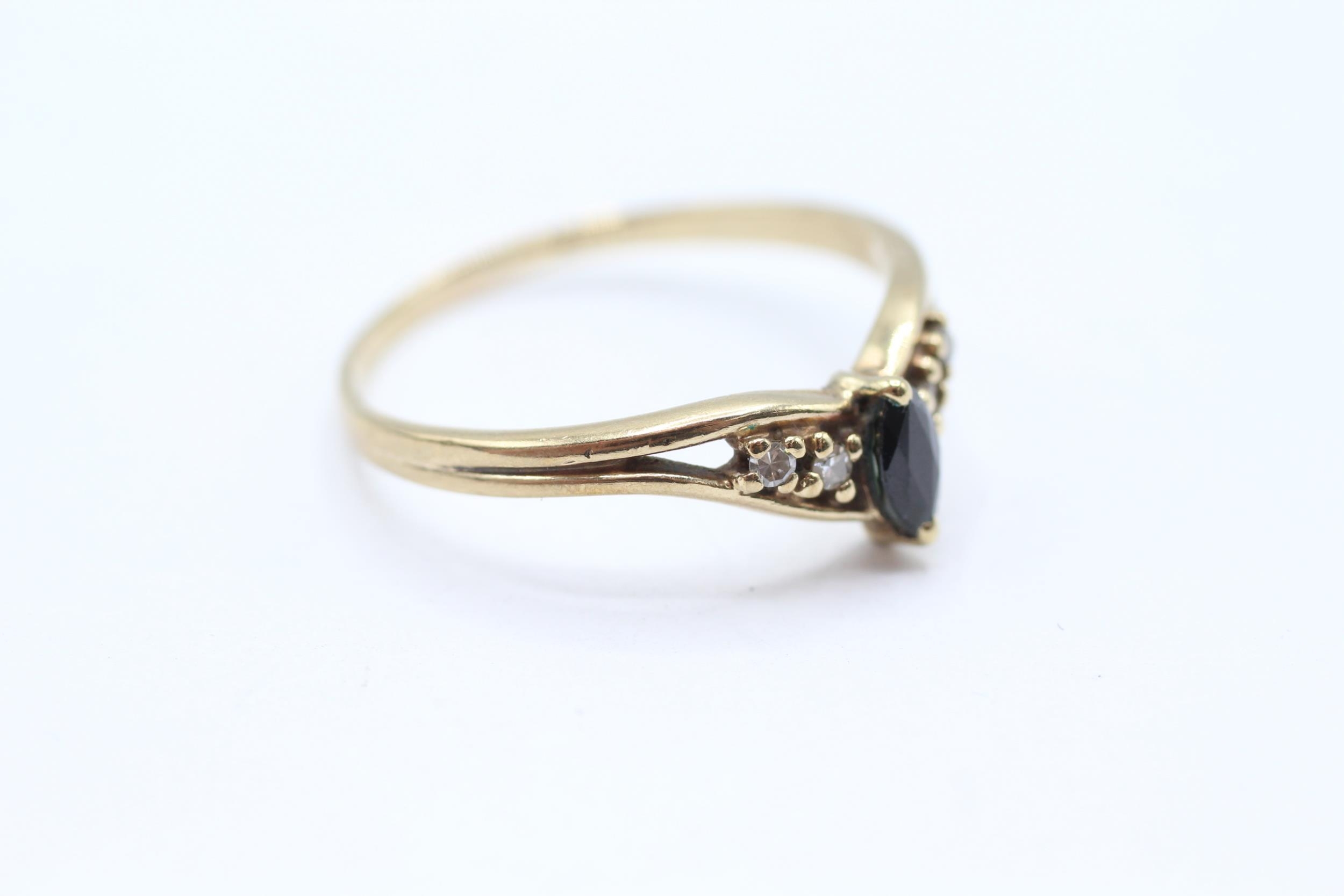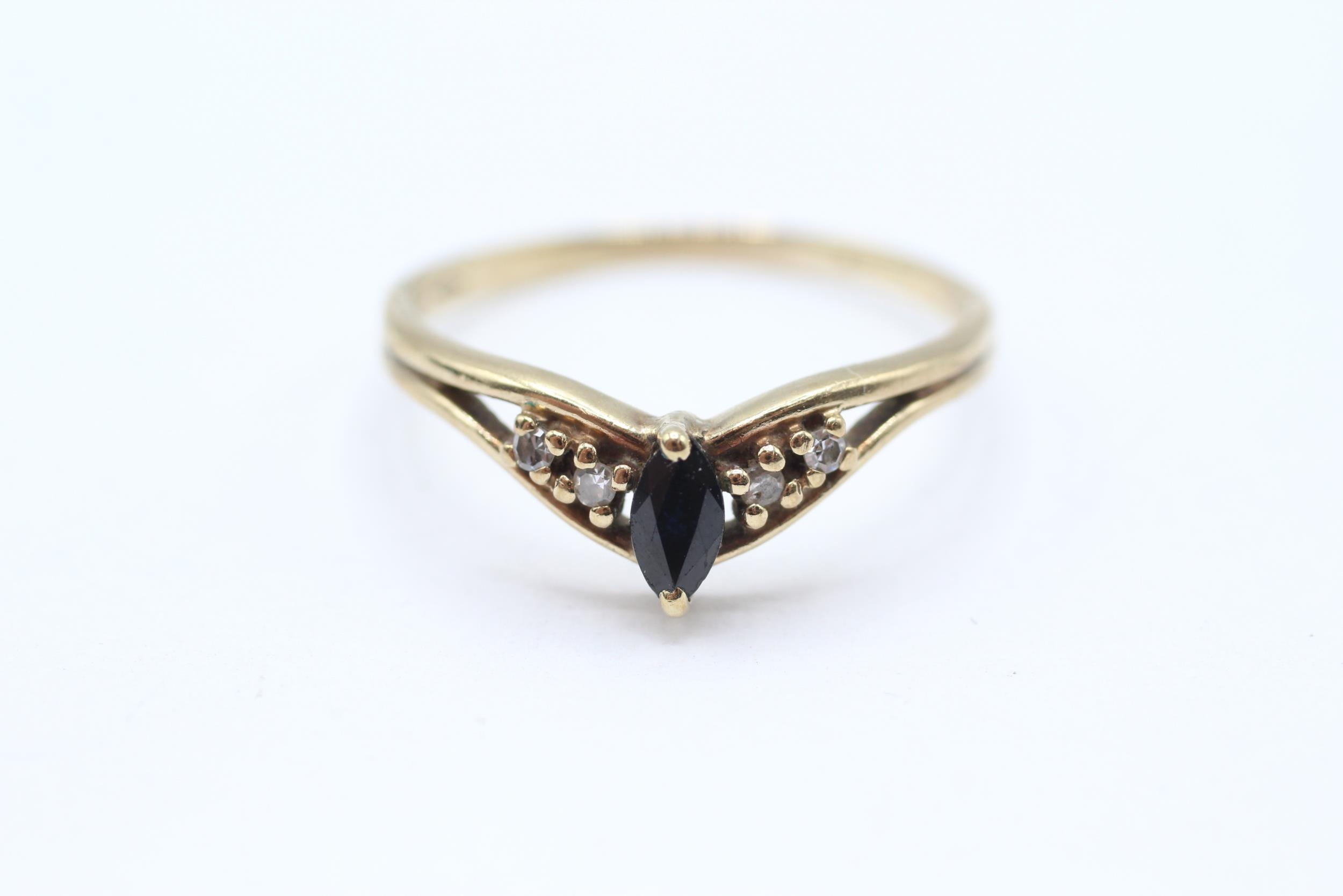 9ct gold diamond & sapphire five stone openwork chevron ring Size T 2.1 g