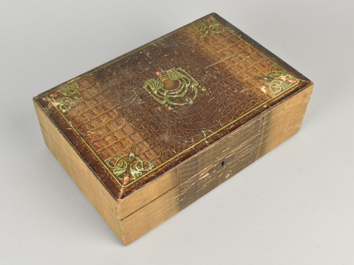 An Edwardian Writing Slope with Printed Paper Faux Crocodile Skin Top, 27.5cms Wide