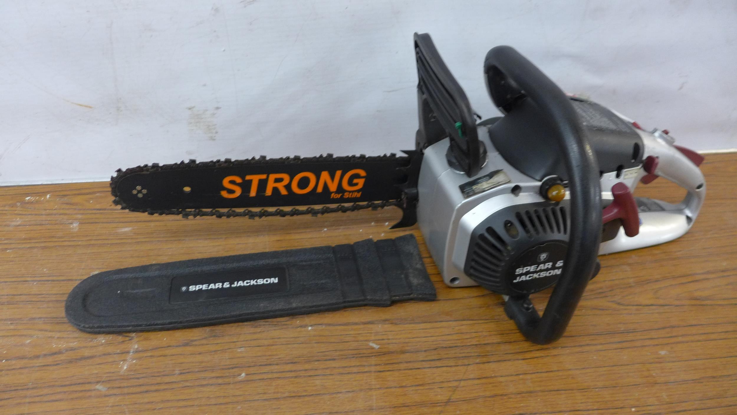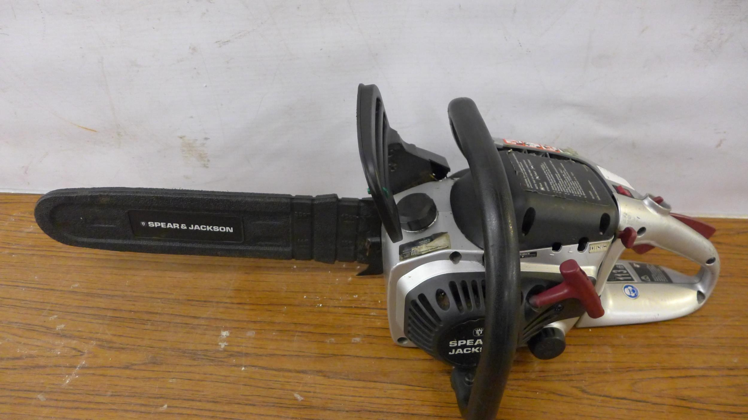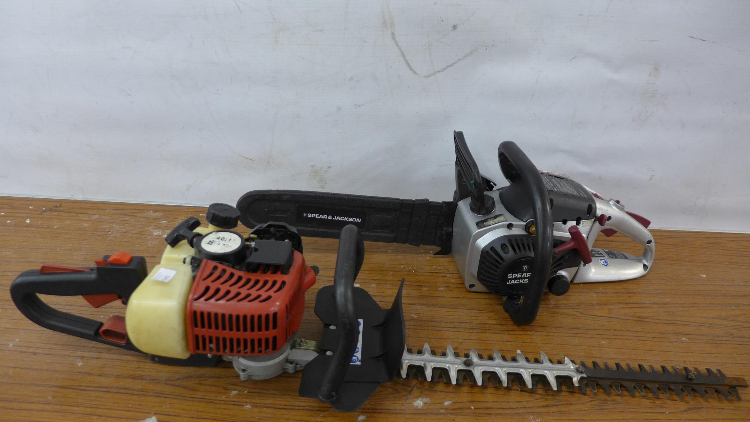 A Spear and Jackson SPJCS-38 petrol driven chainsaw and a petrol driven hedge cutter *Police repossession