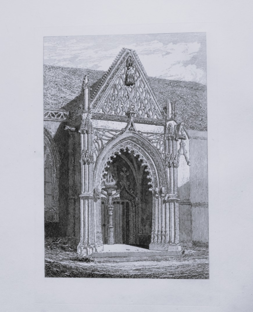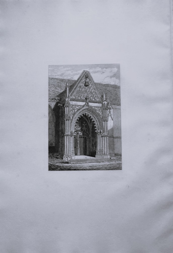 John Sell Cotman - Folio engraving of Church of St. Michel de Vaucelles,Normandy 1822. This original 200-year-old etching of the North Porch of the church of St. Michel de Vaucelles, Caen is from Architectural Antiquities of Normandy by John Sell Cotman. Published in London by J. & A. Arch in 1822.