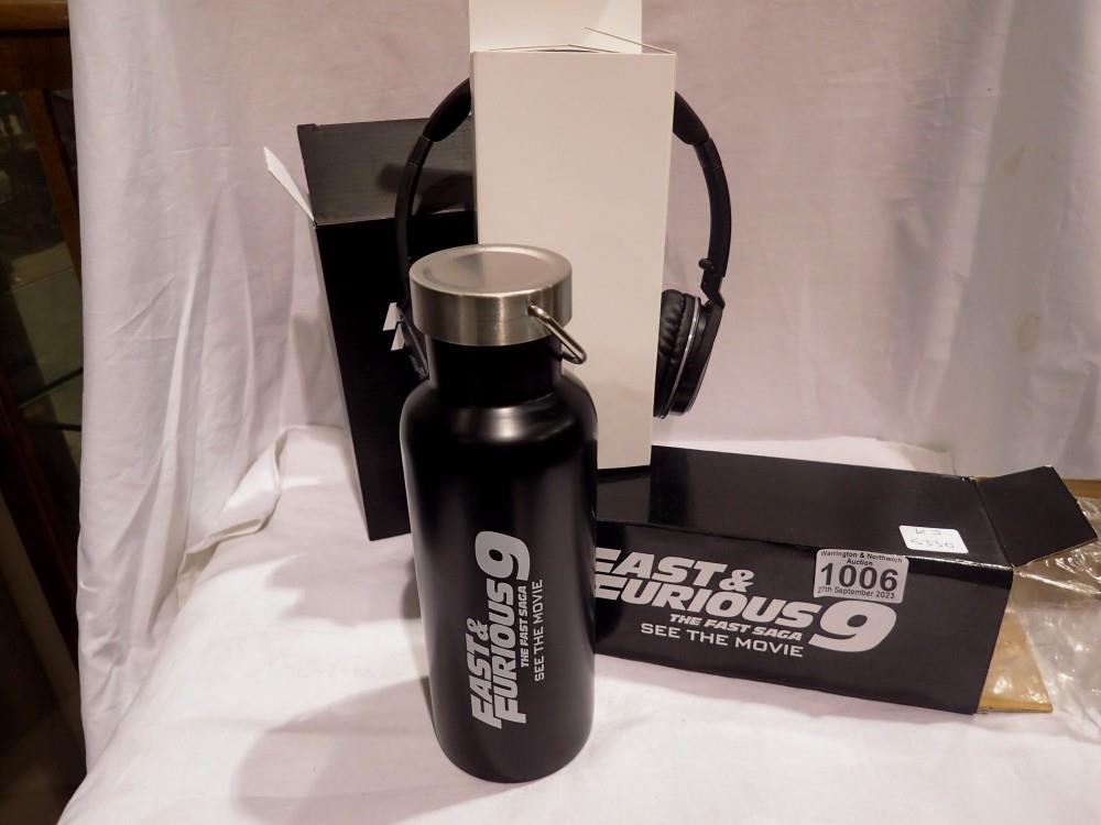 Fast & Furious 9 insulated drinking bottle and headphones. UK P&P Group 1 (£16+VAT for the first lot and £2+VAT for subsequent lots)