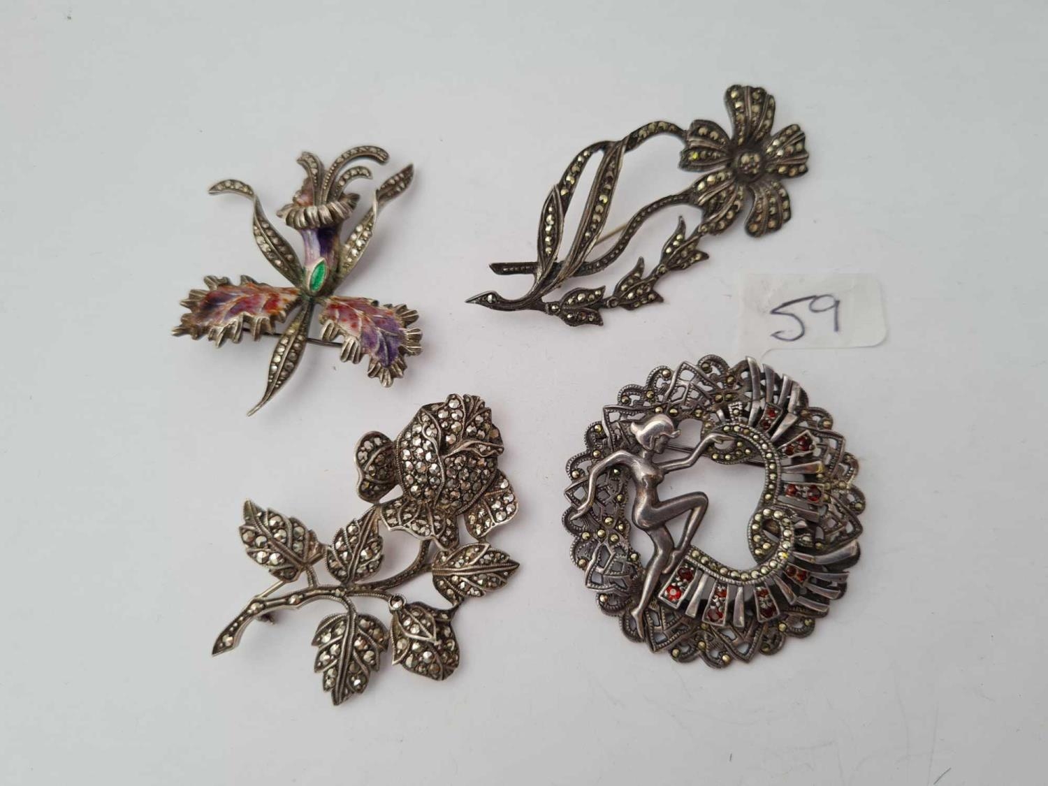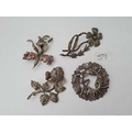 Four marcasite brooches
